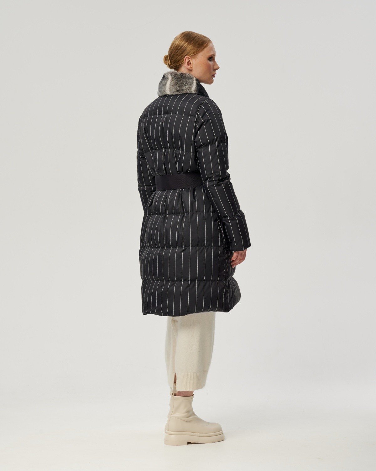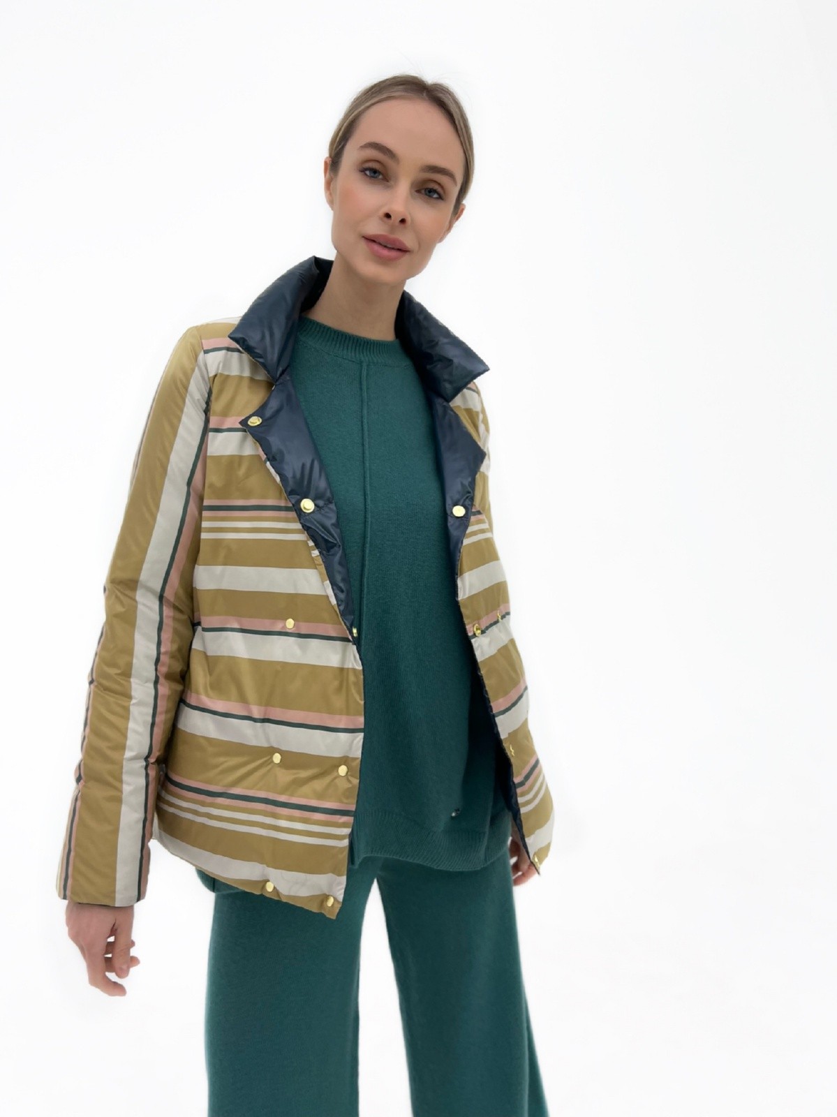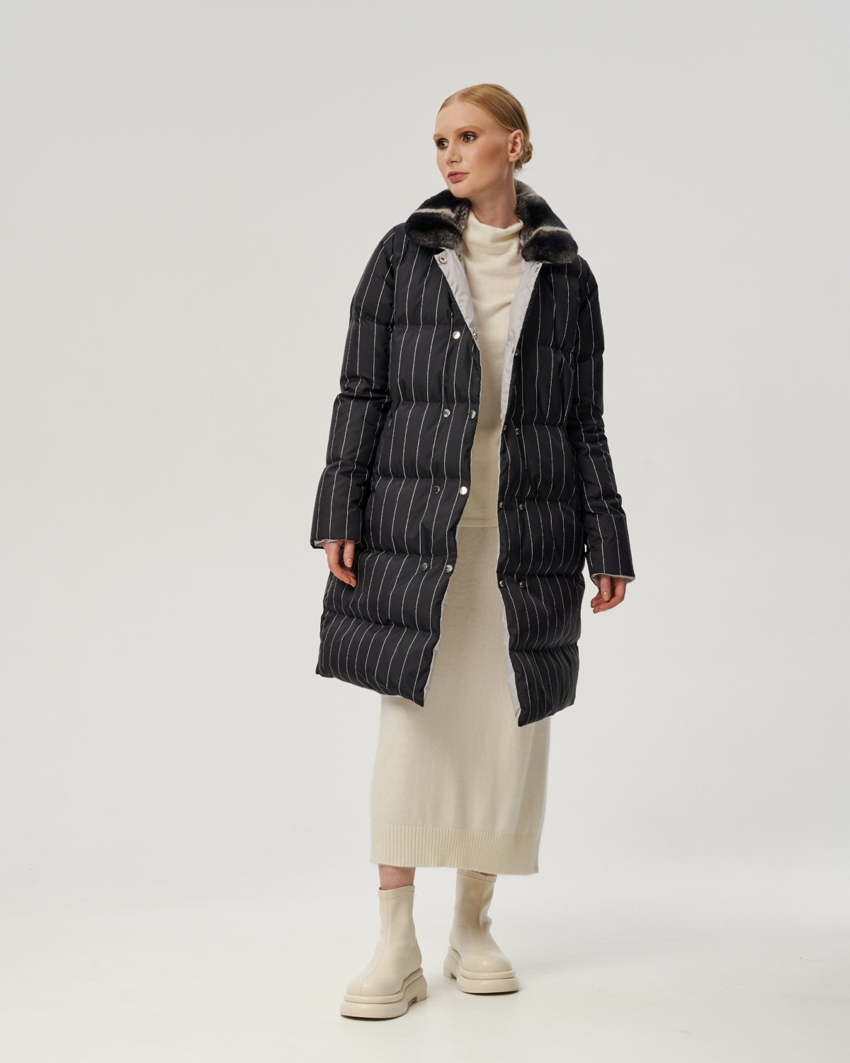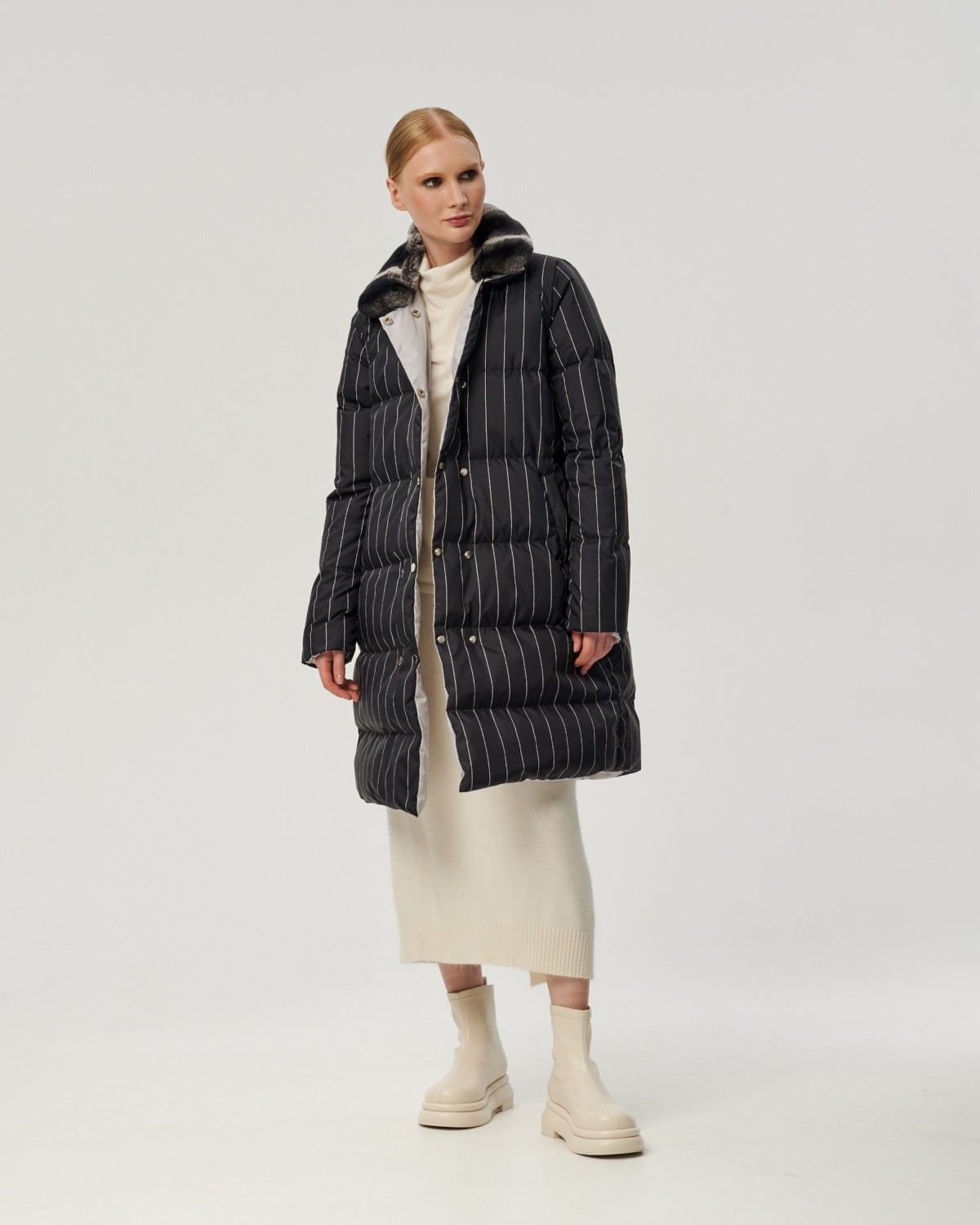 пуховое пальто в полоску