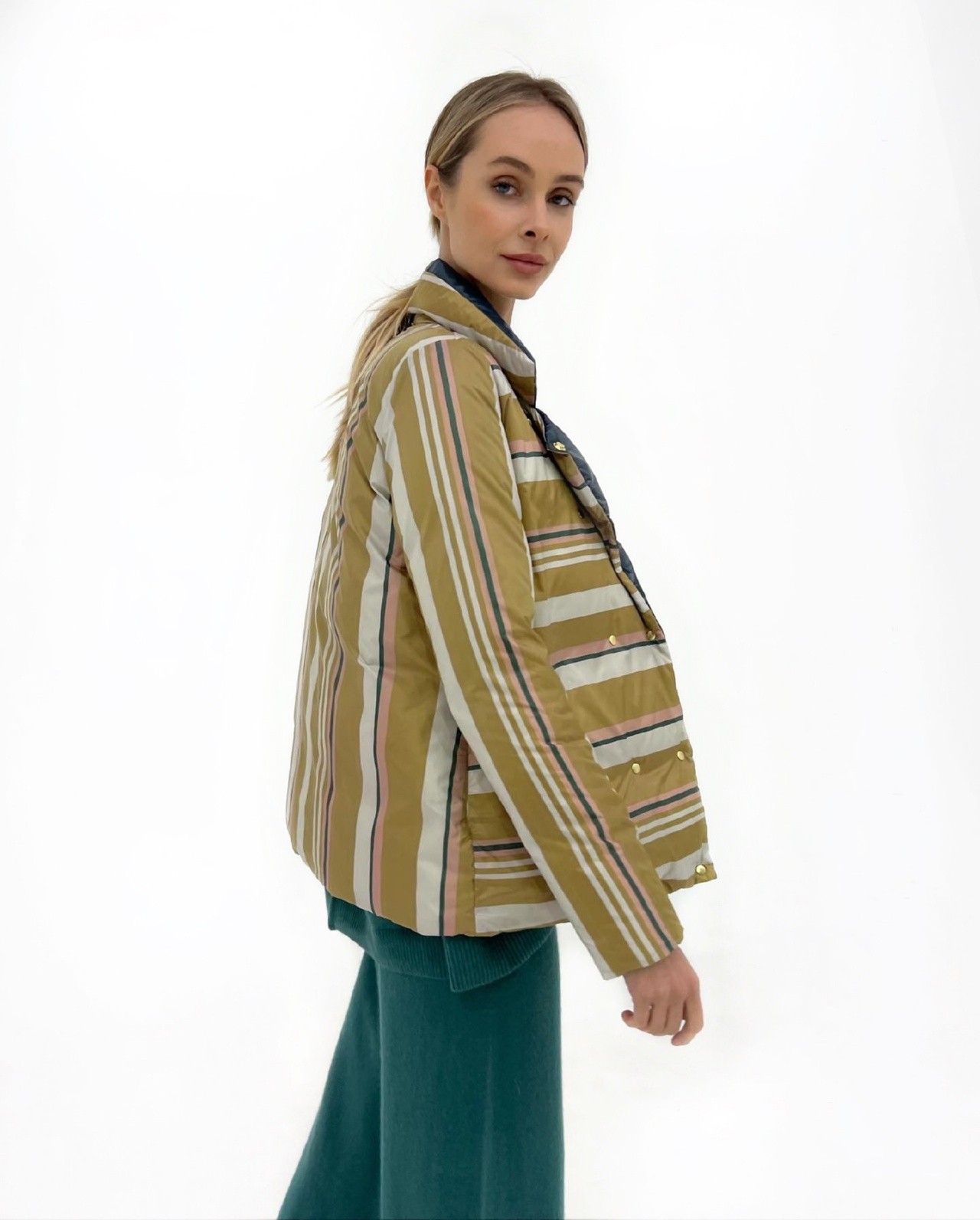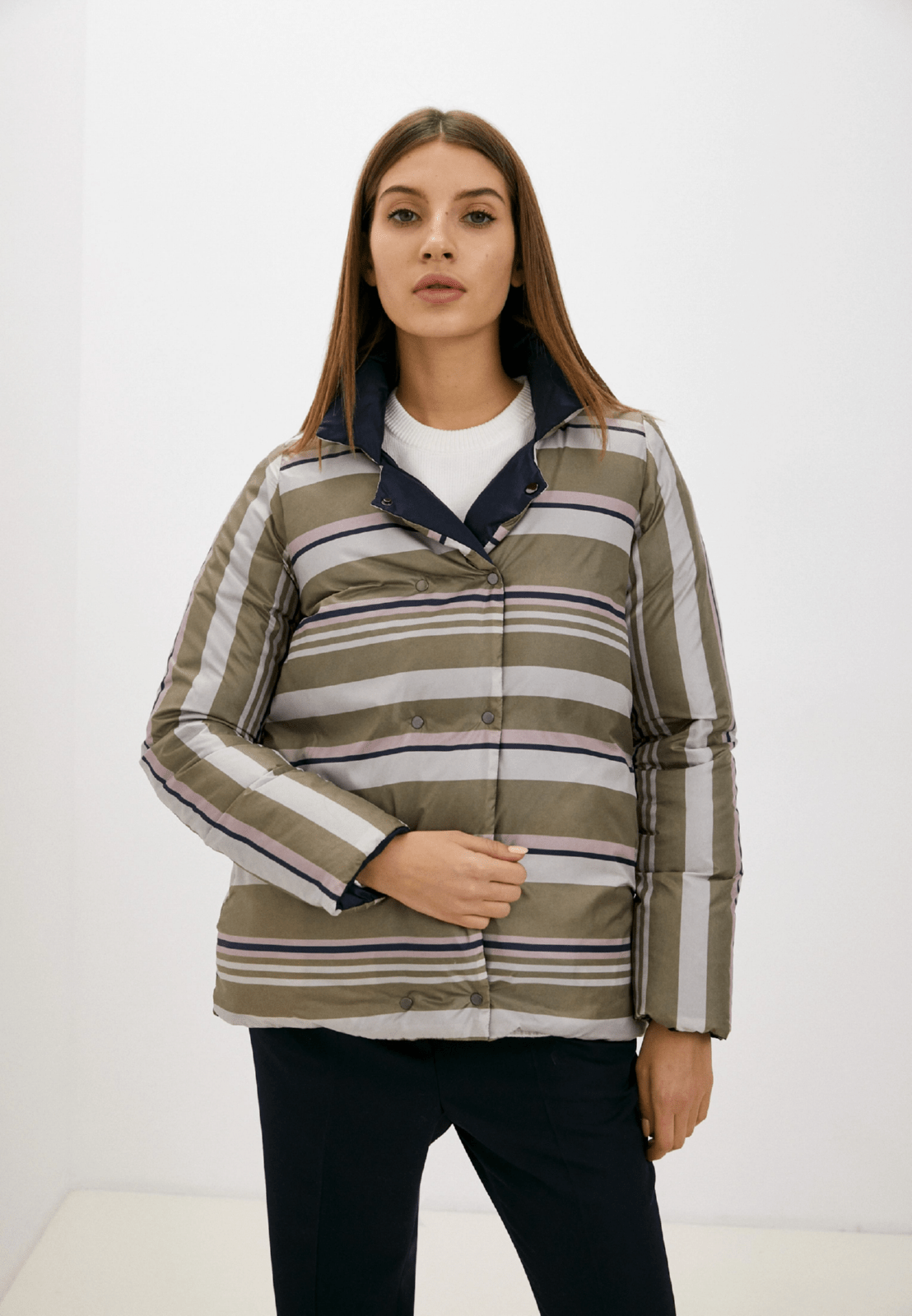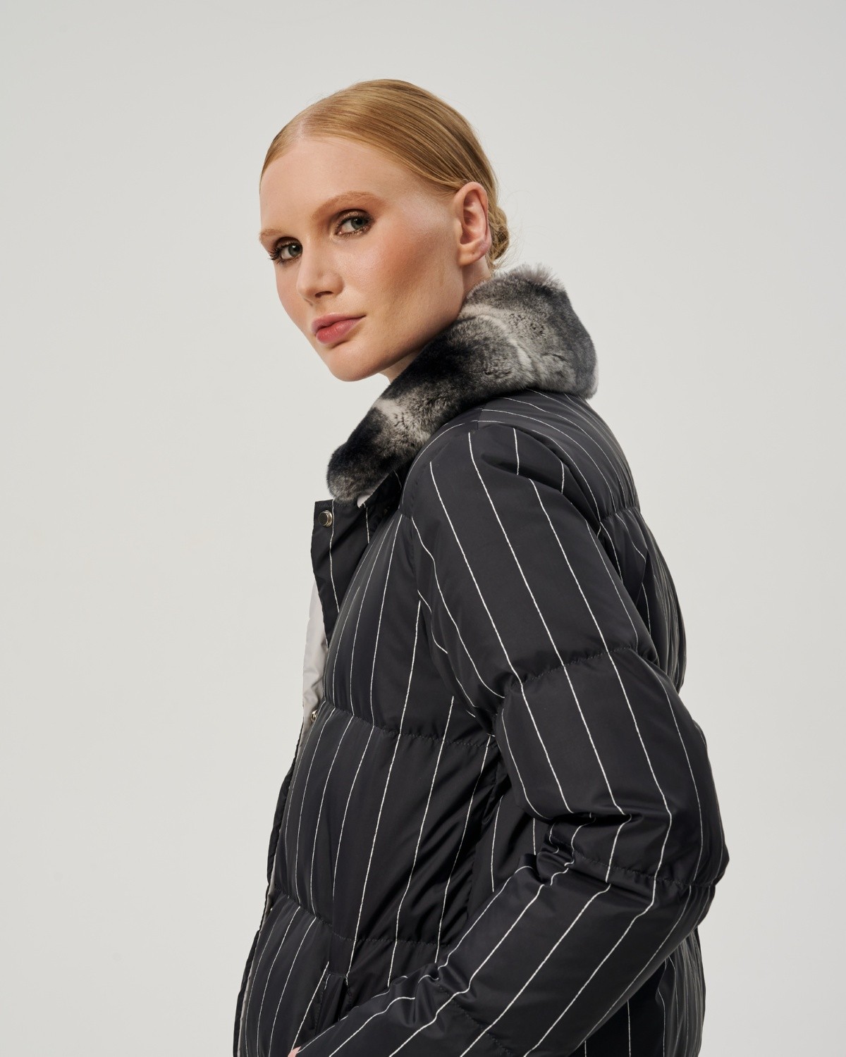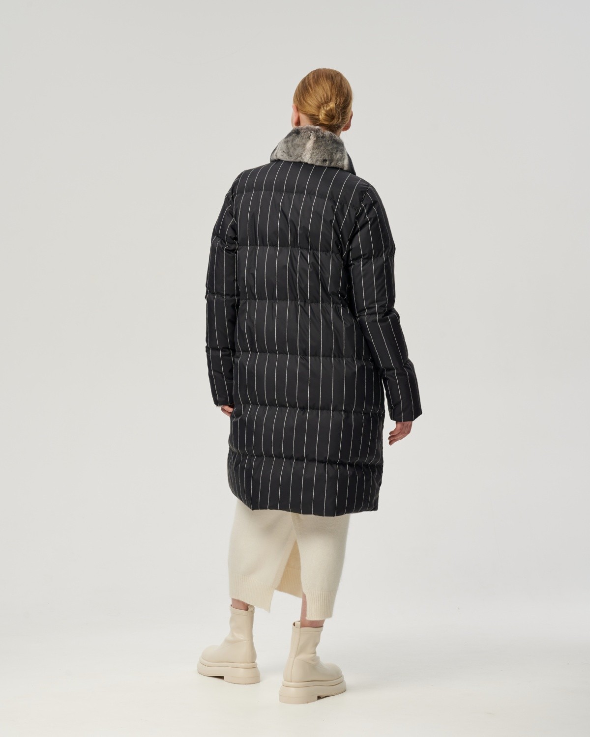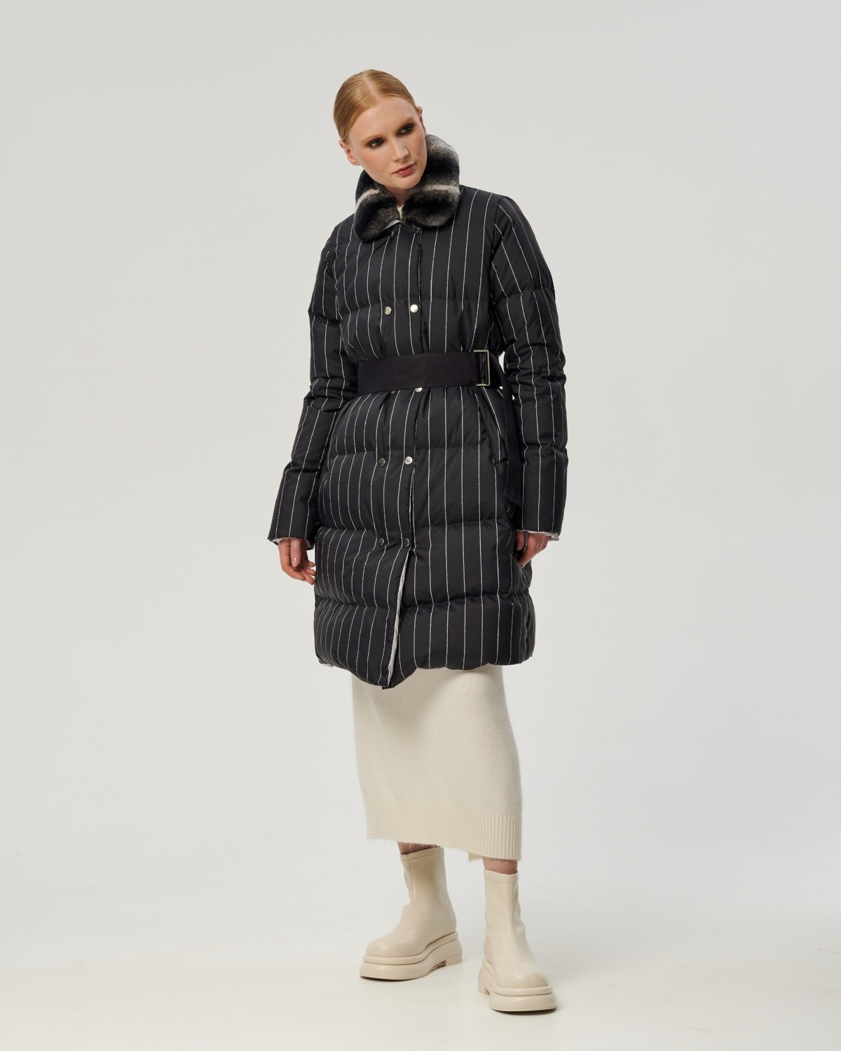 пуховое пальто в полоску