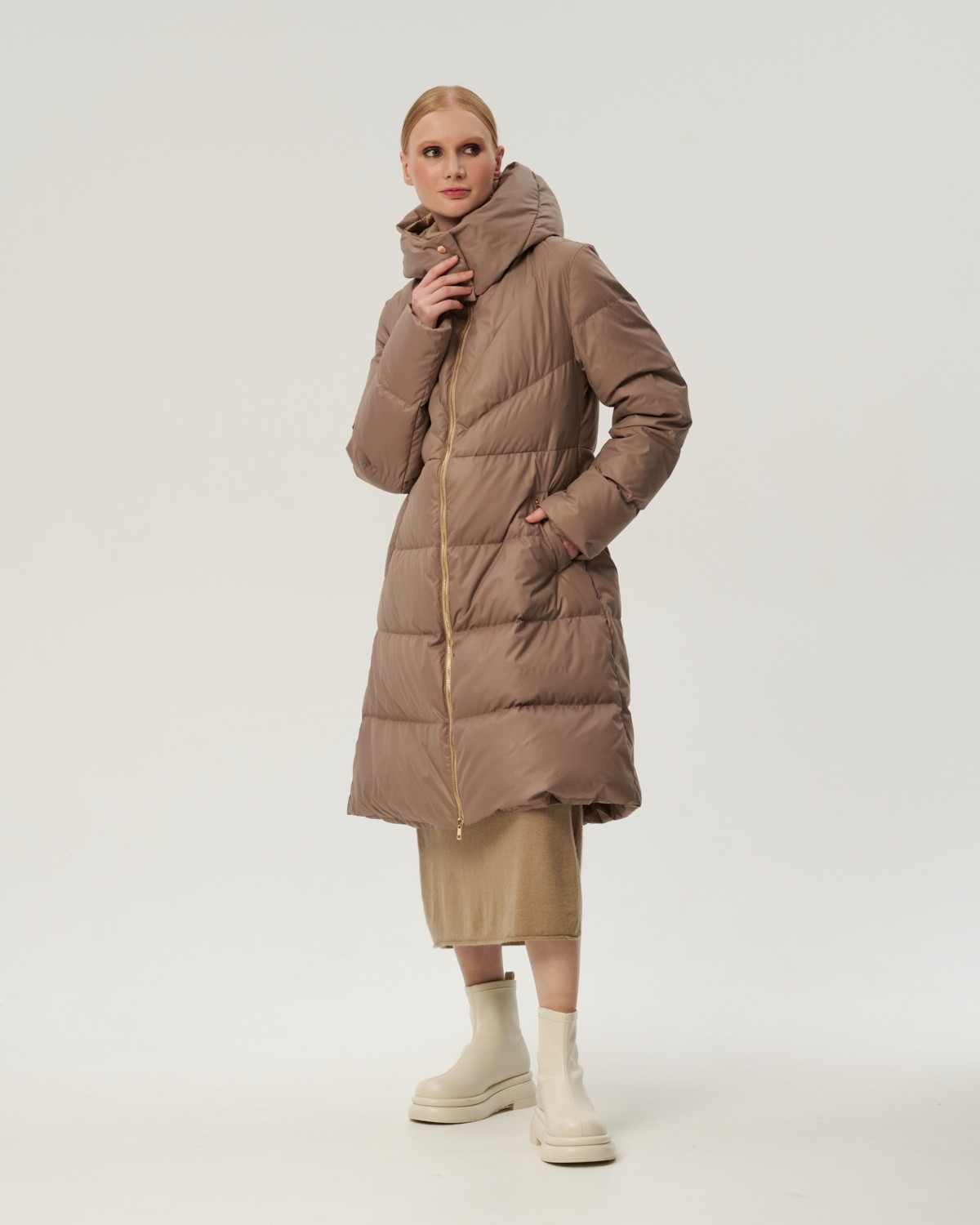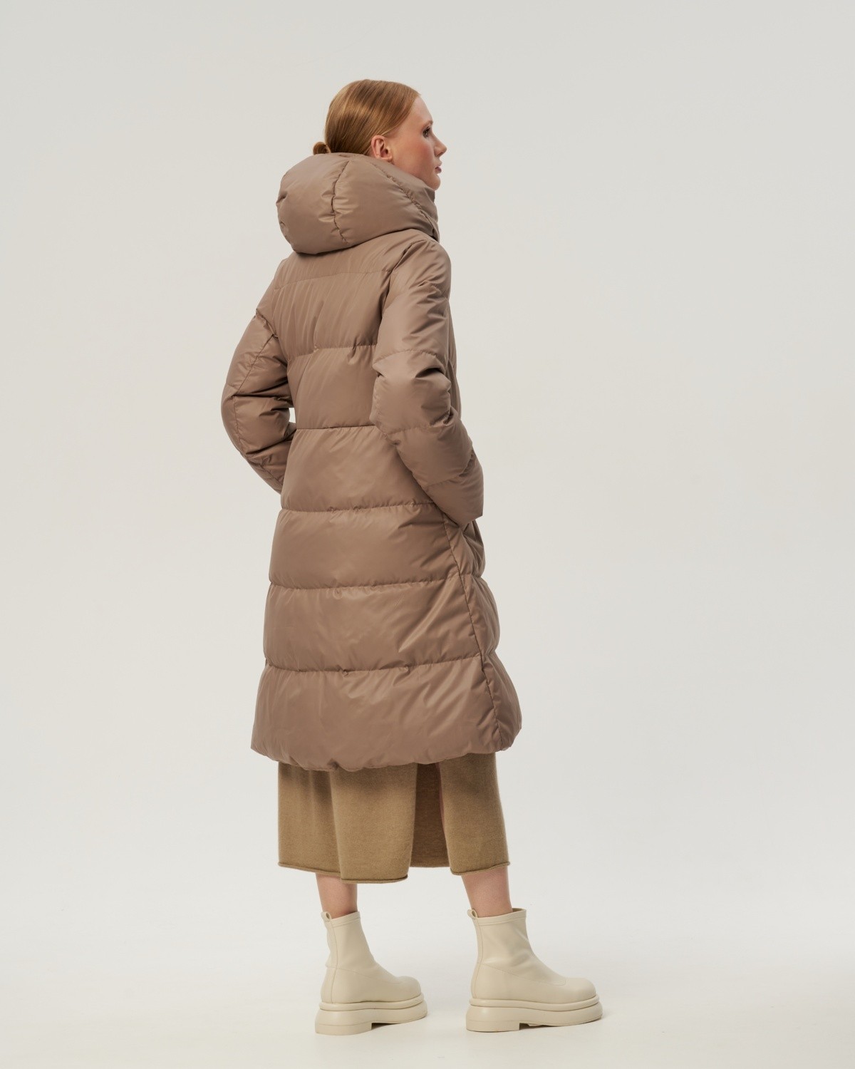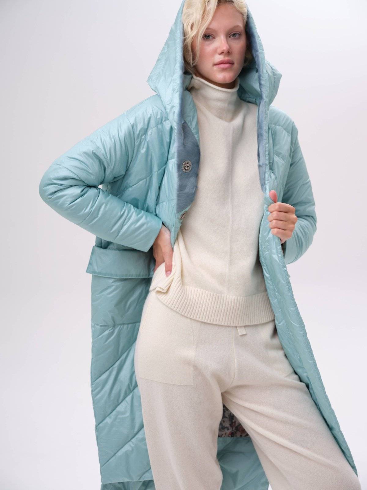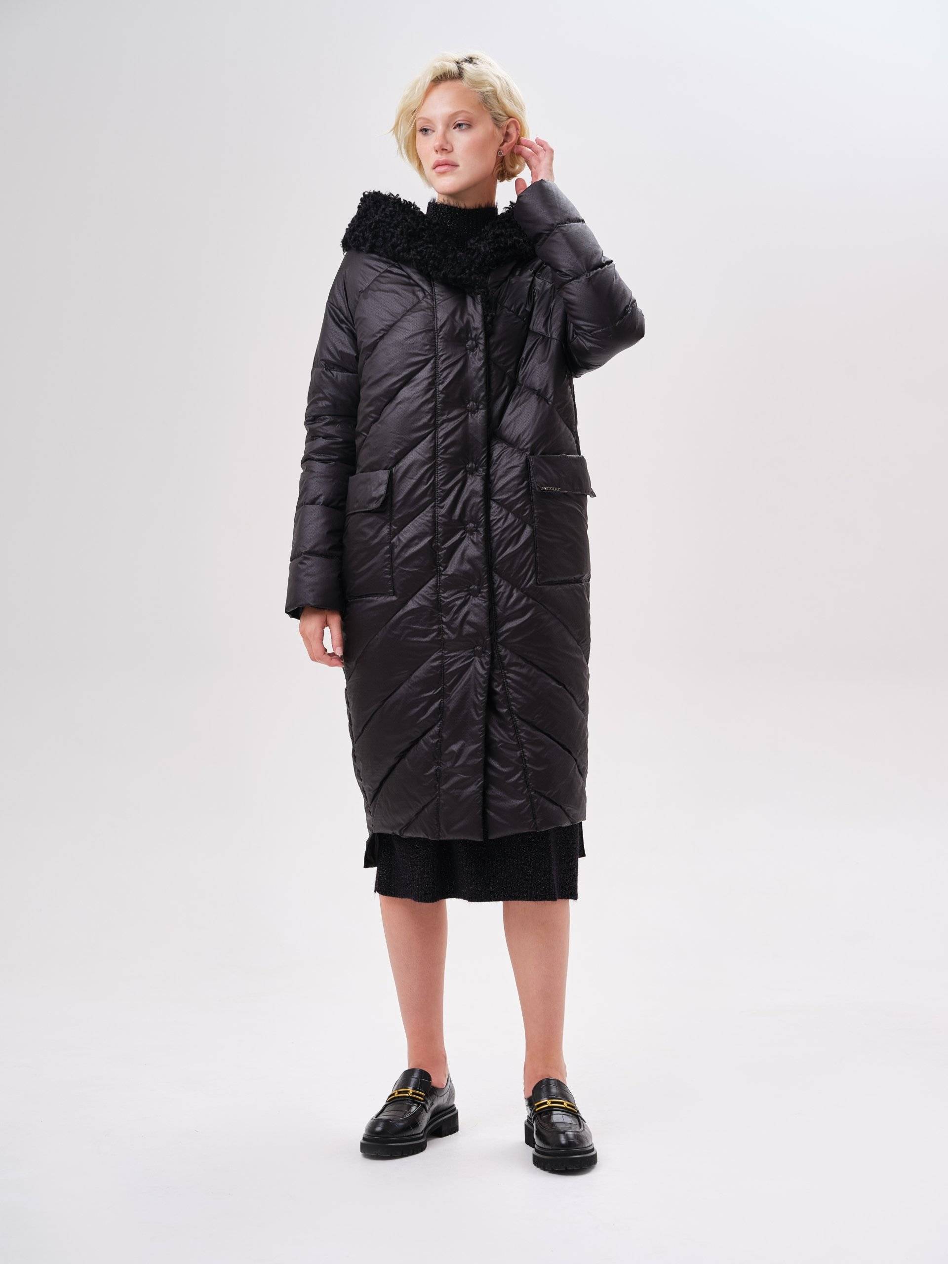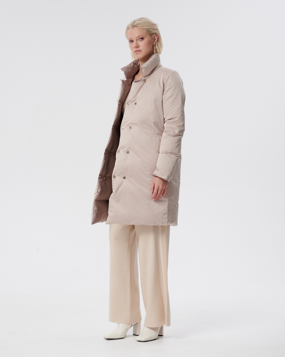 приталенное пуховое пальто