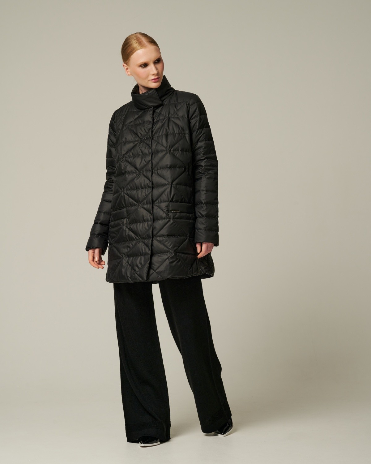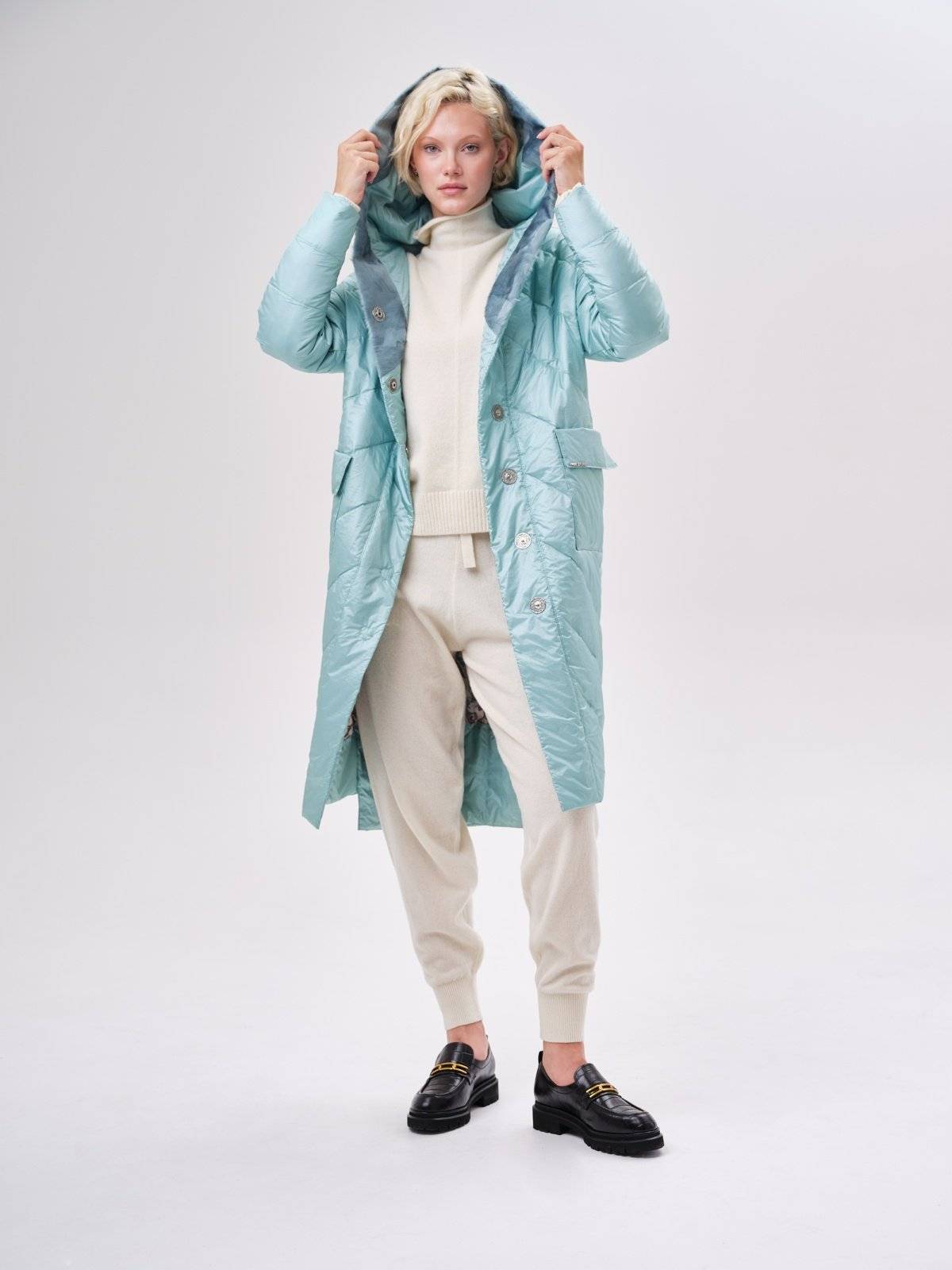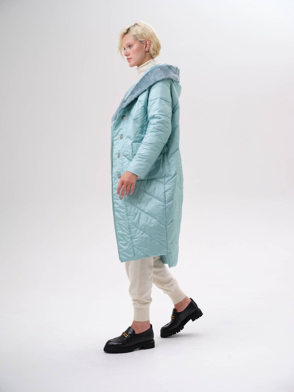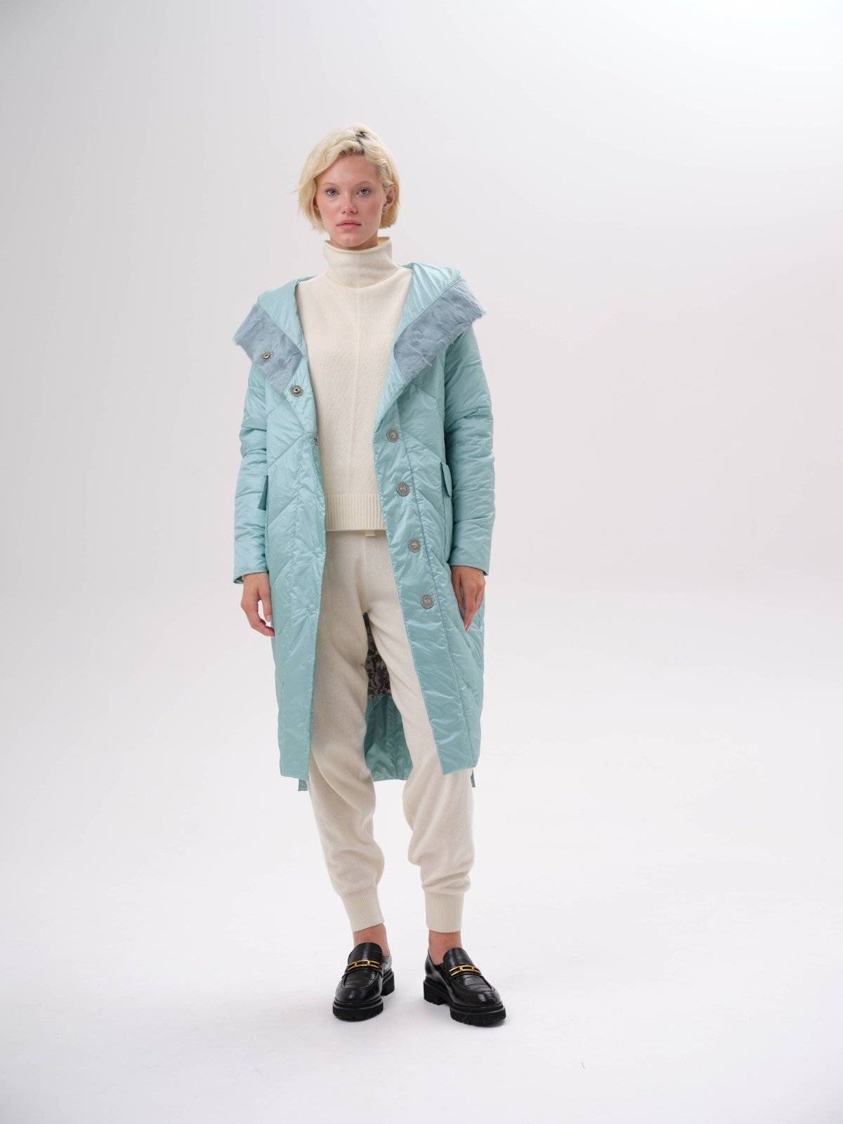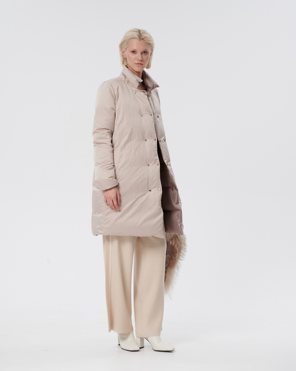 приталенное пуховое пальто