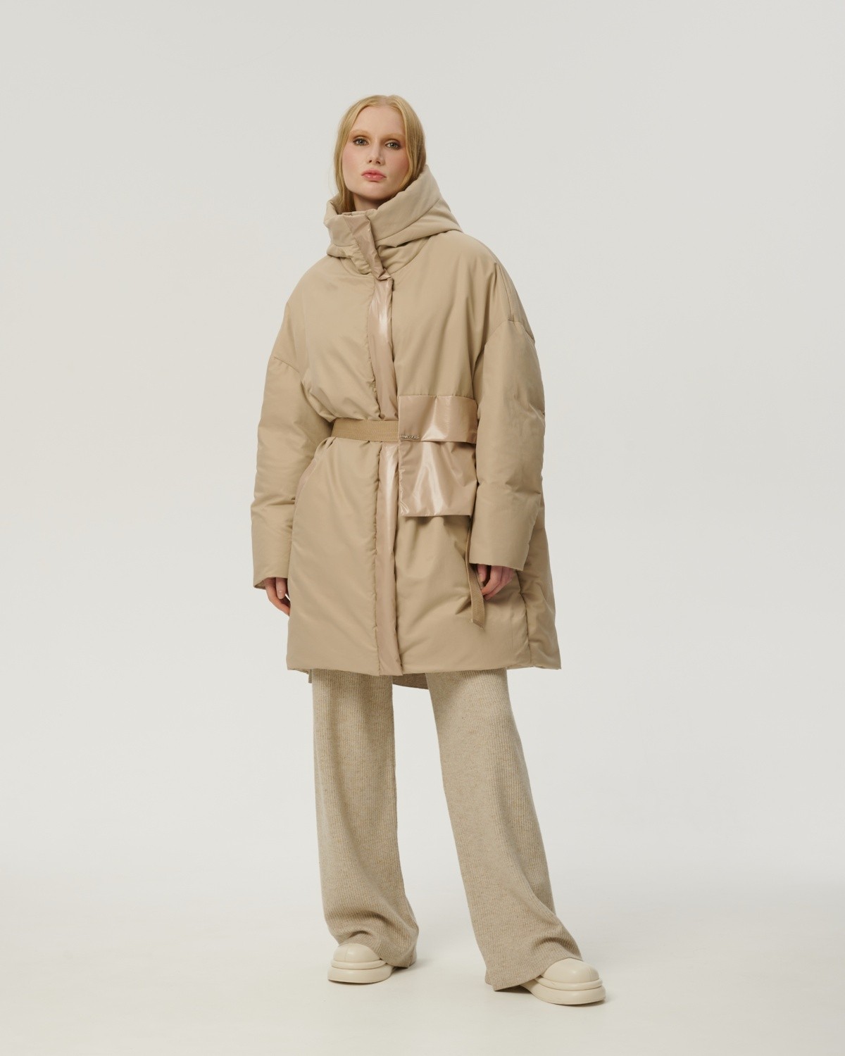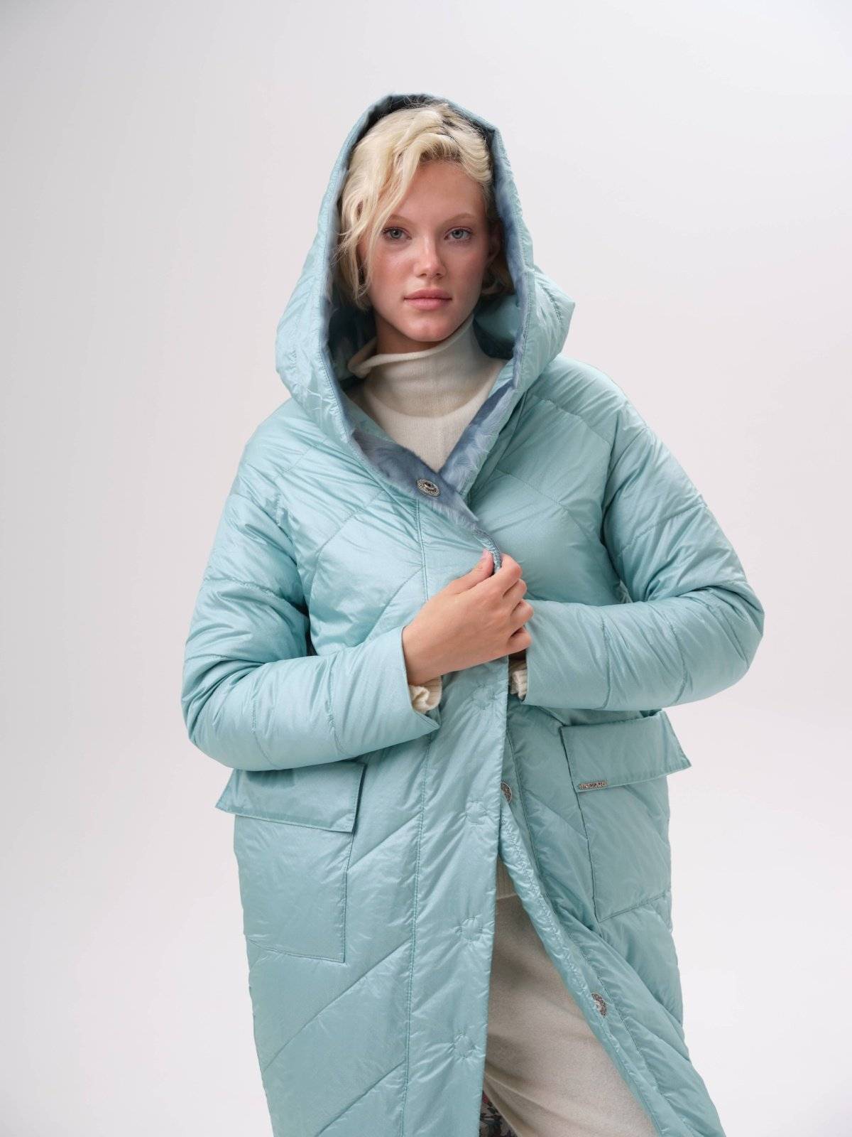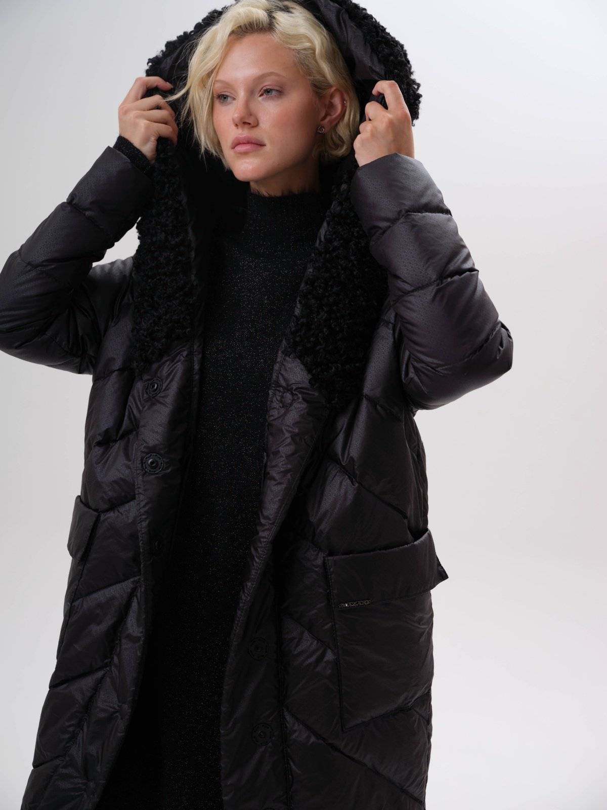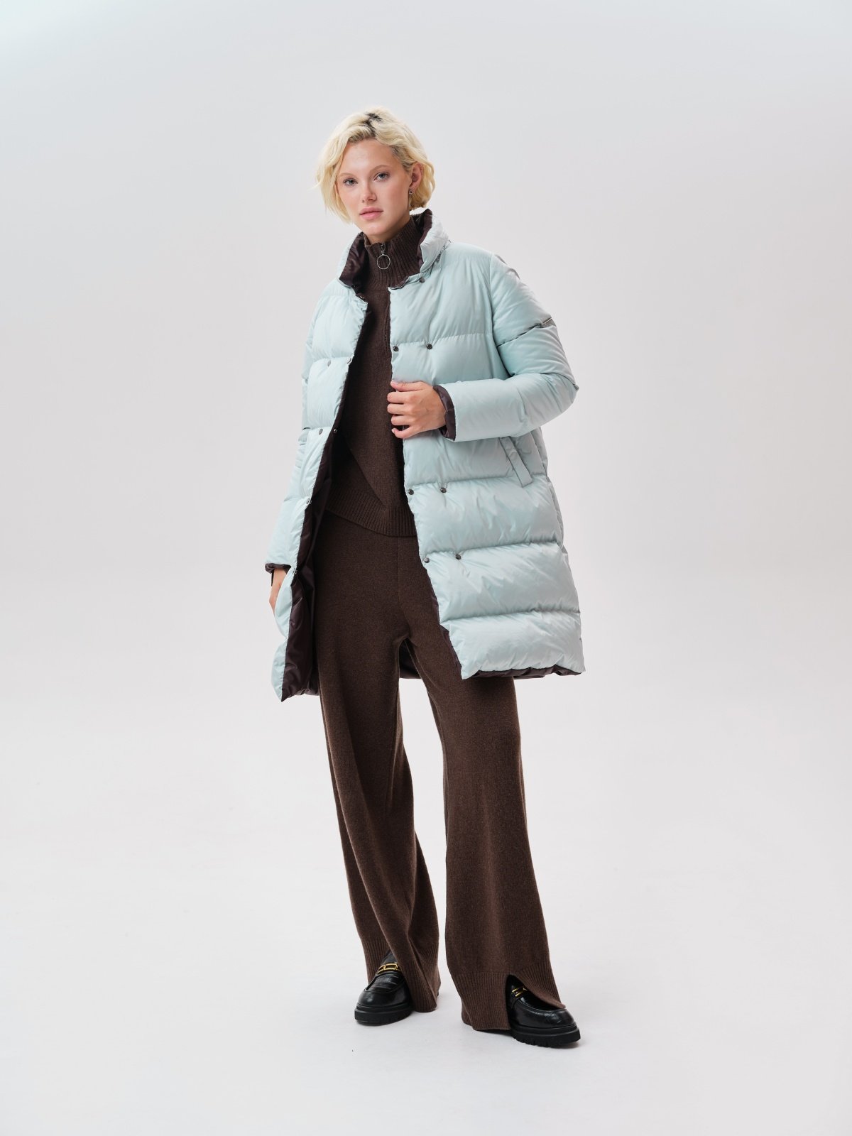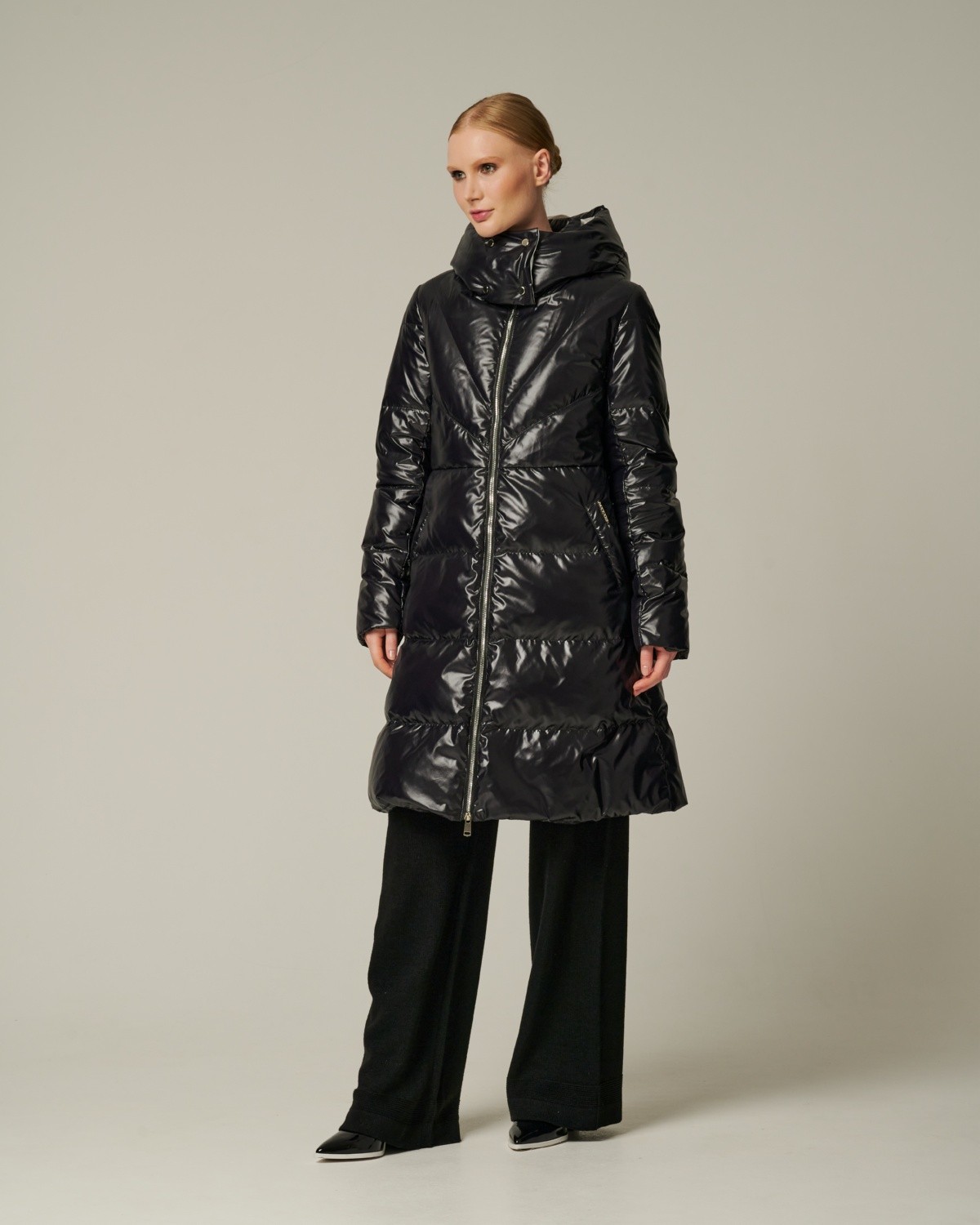 приталенное пуховое пальто