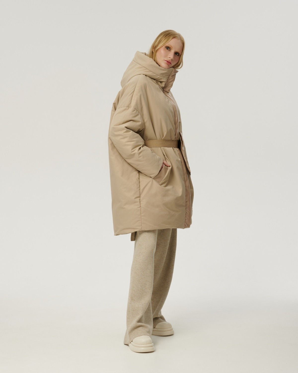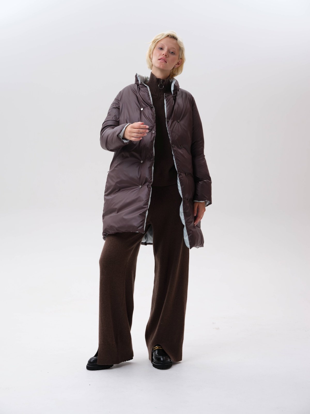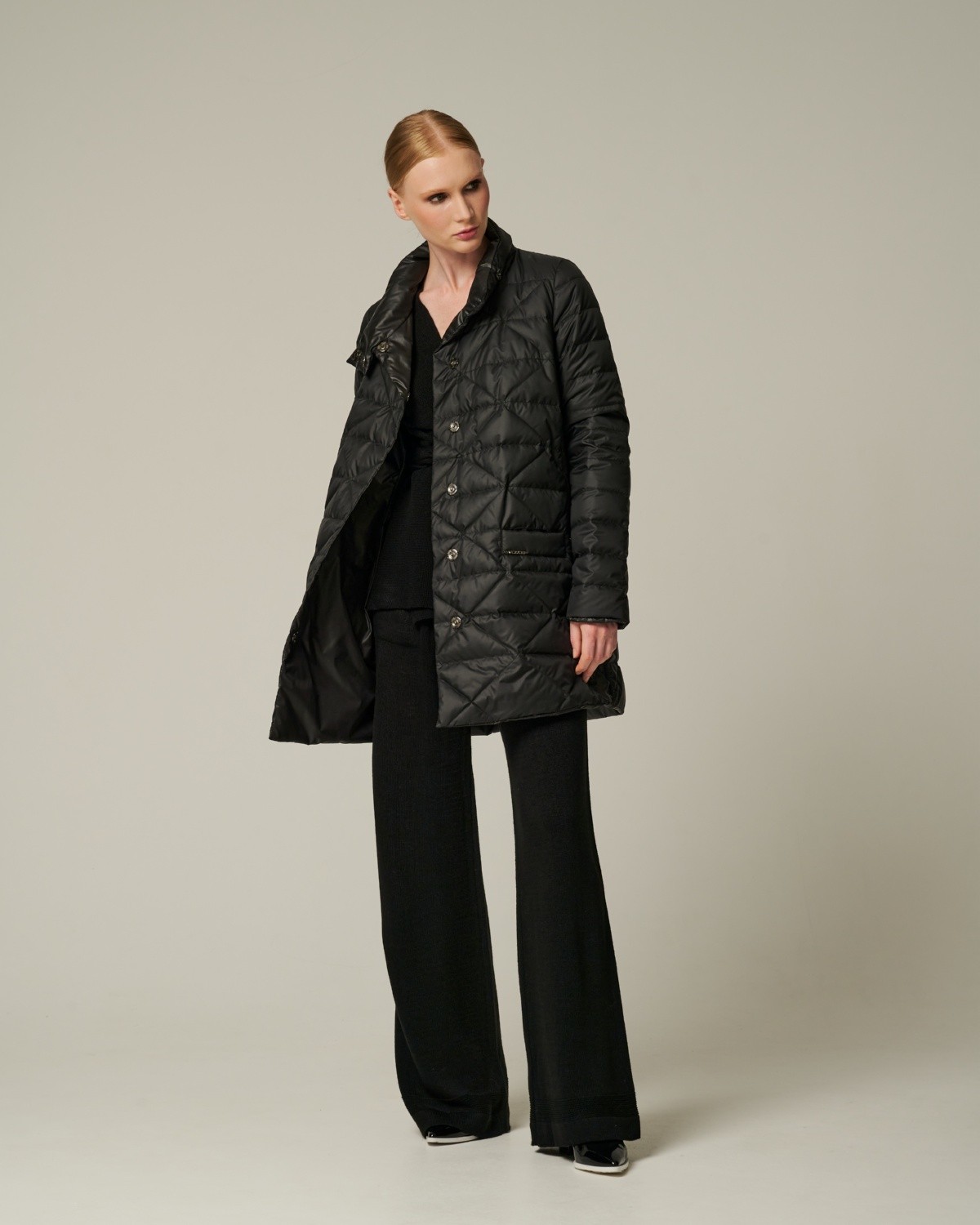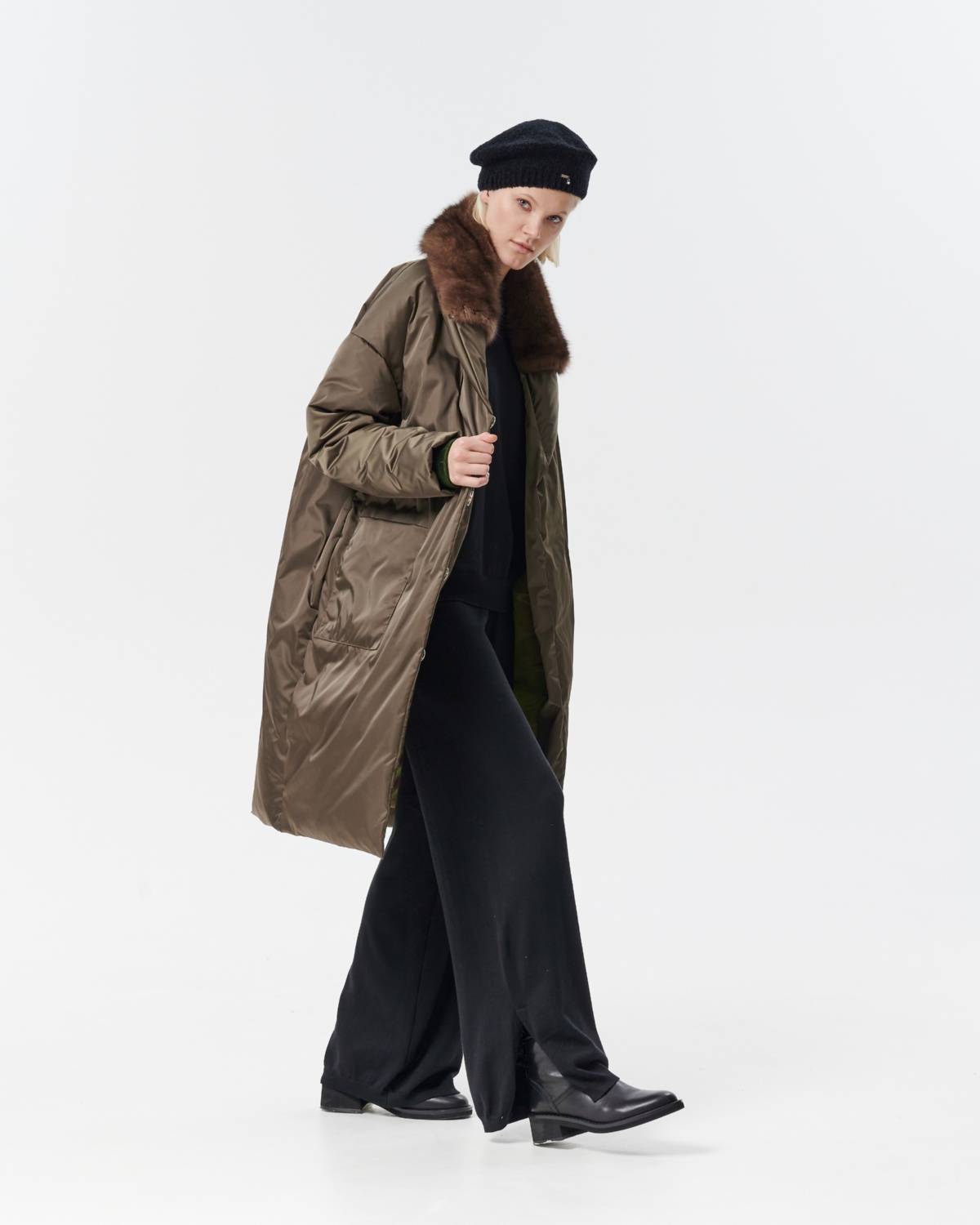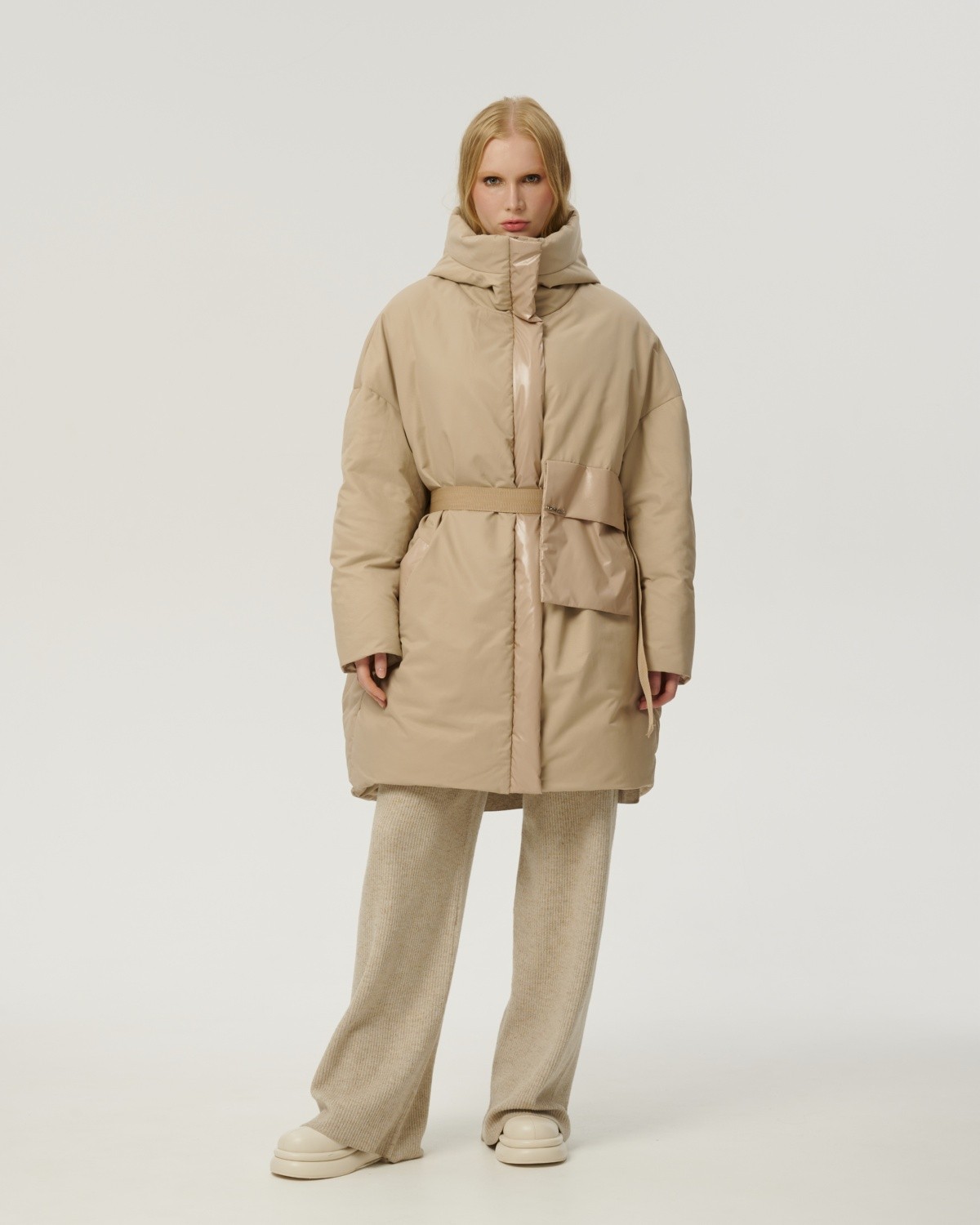 приталенное пуховое пальто