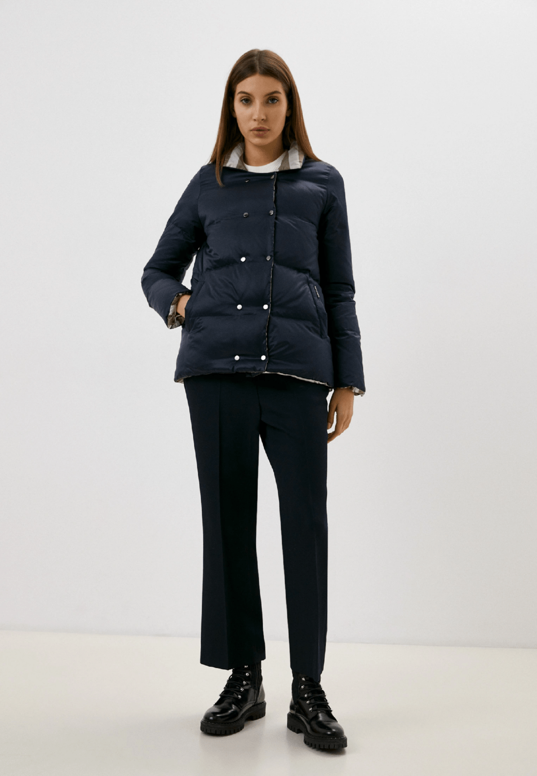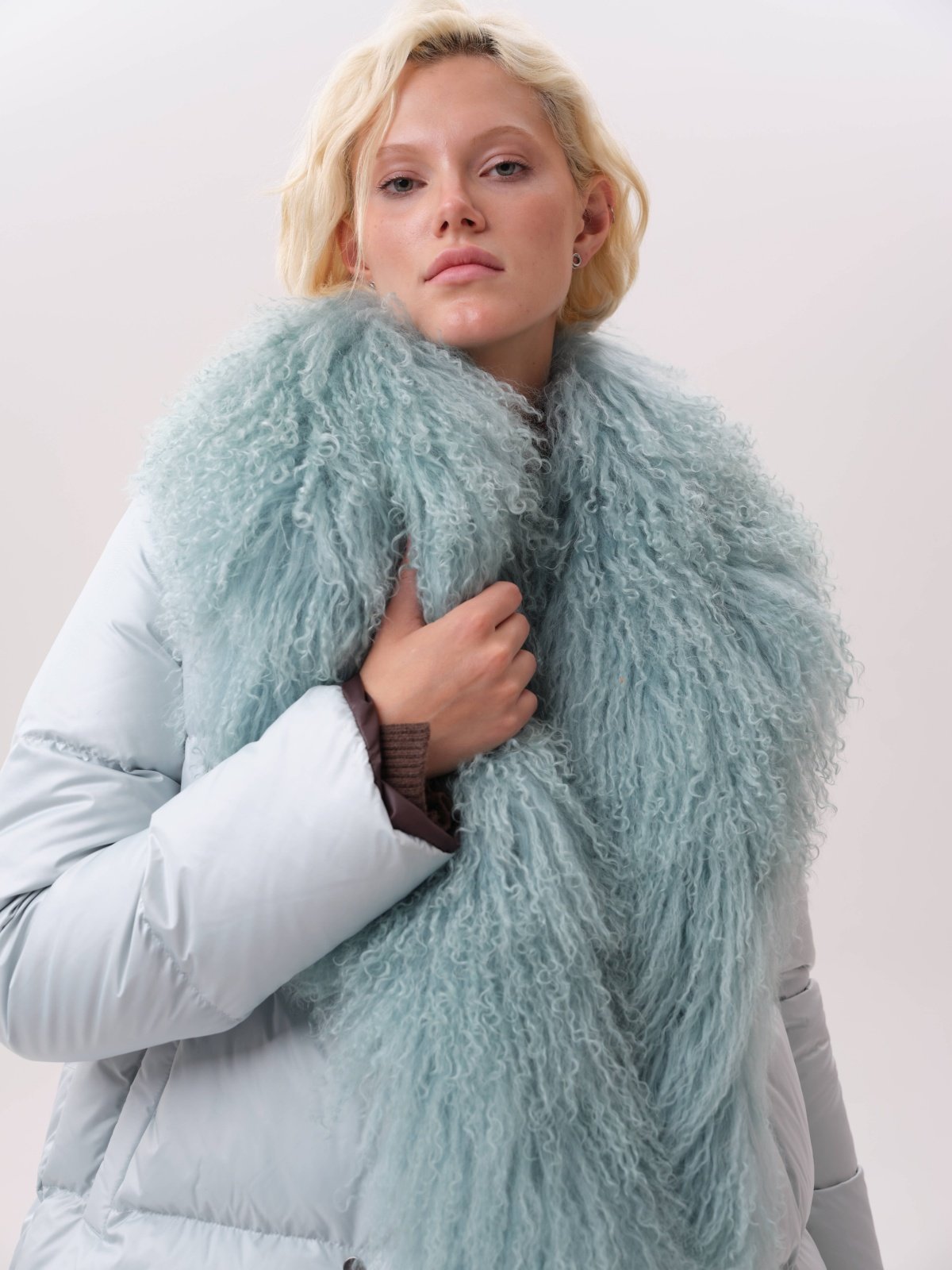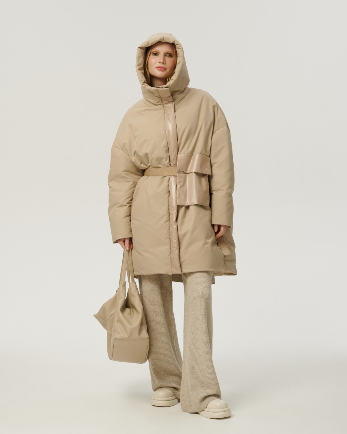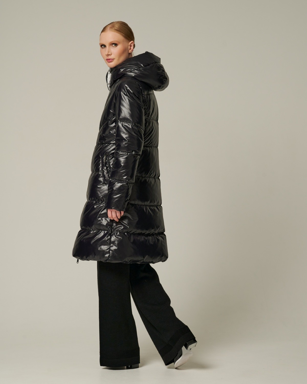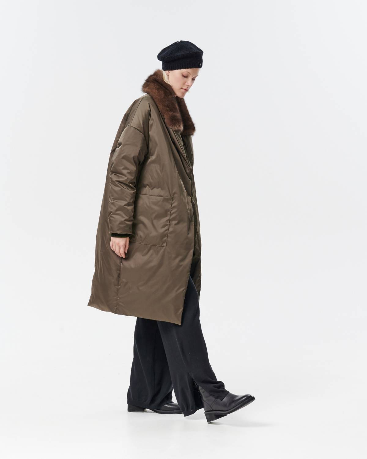 приталенное пуховое пальто