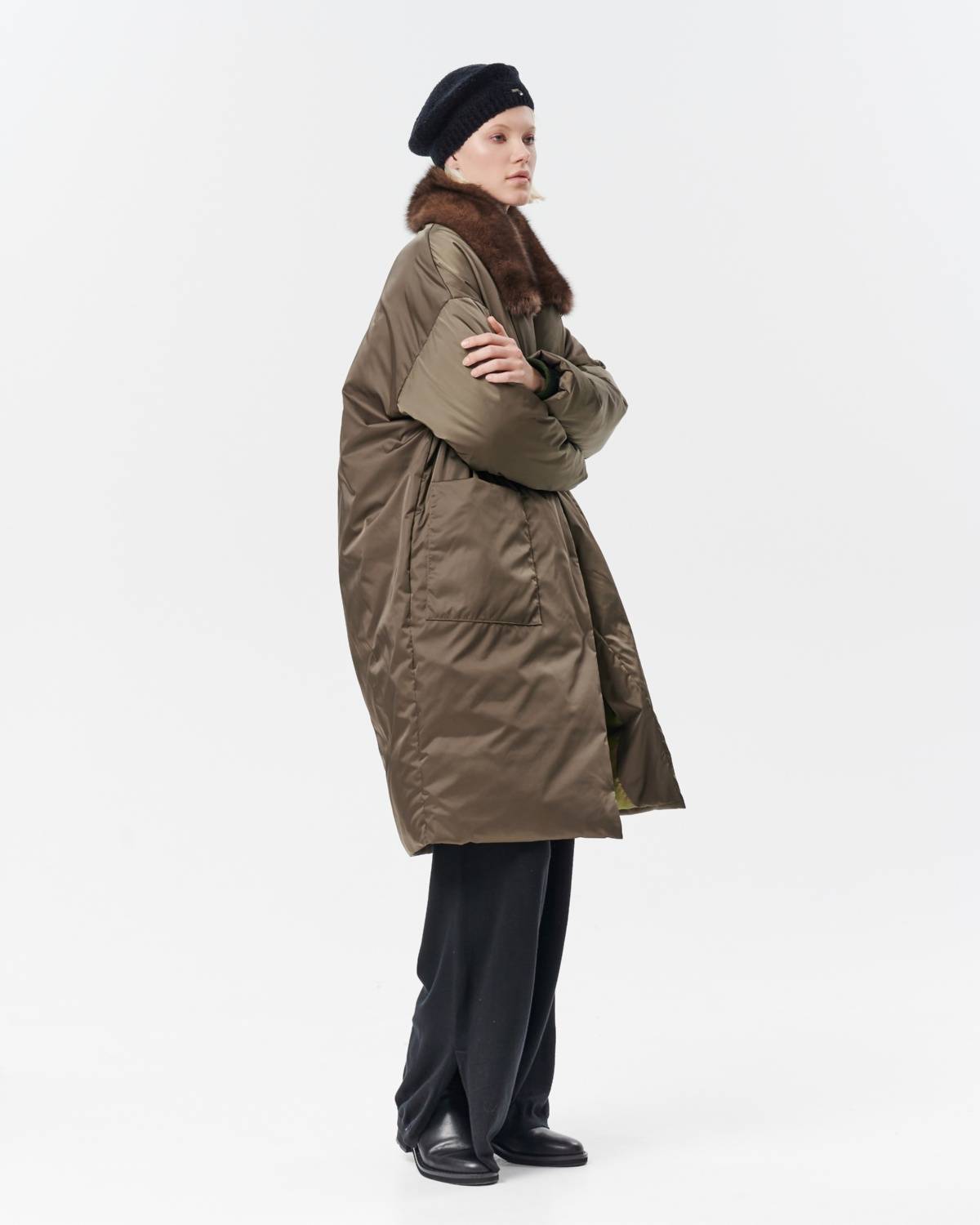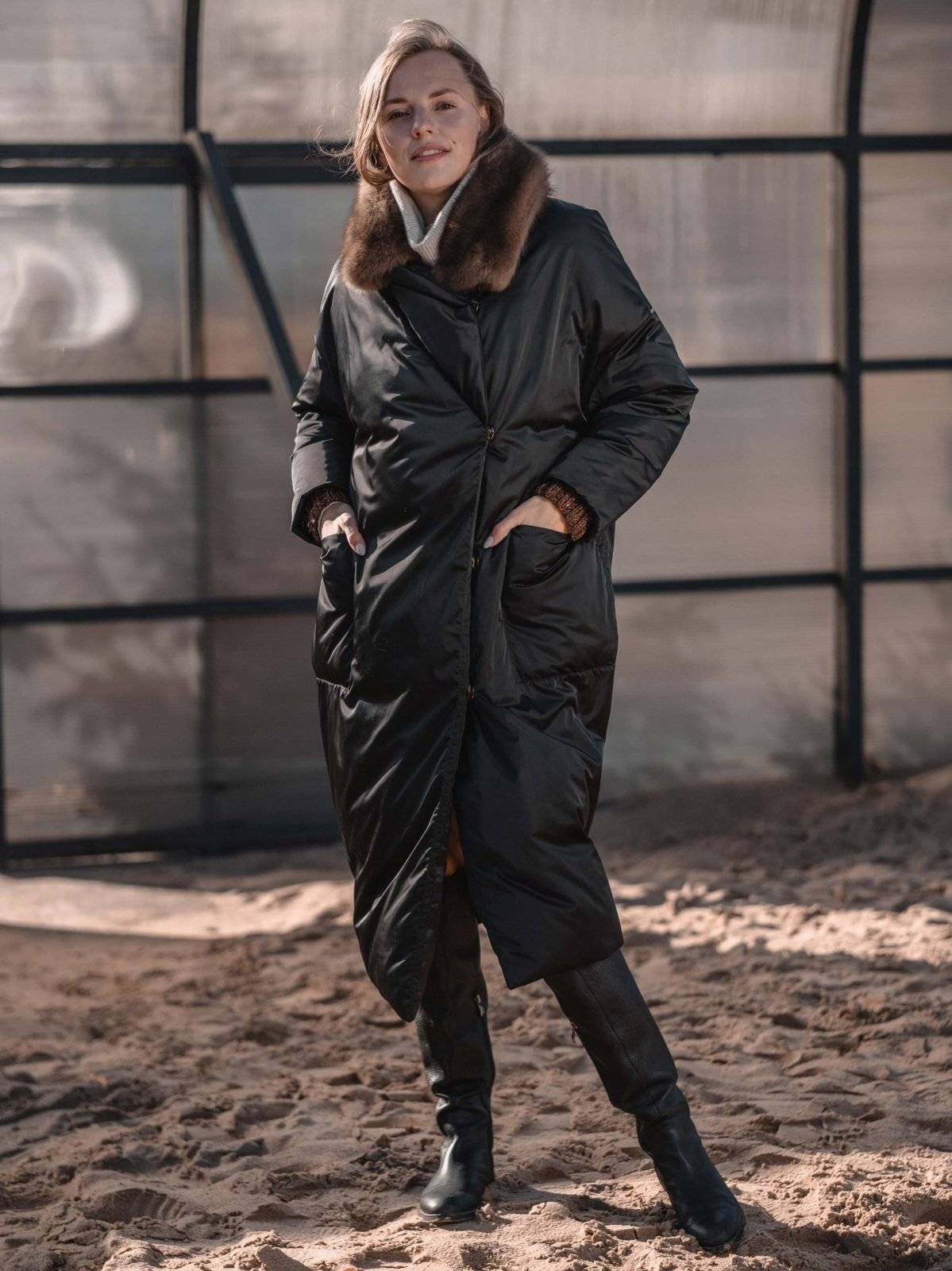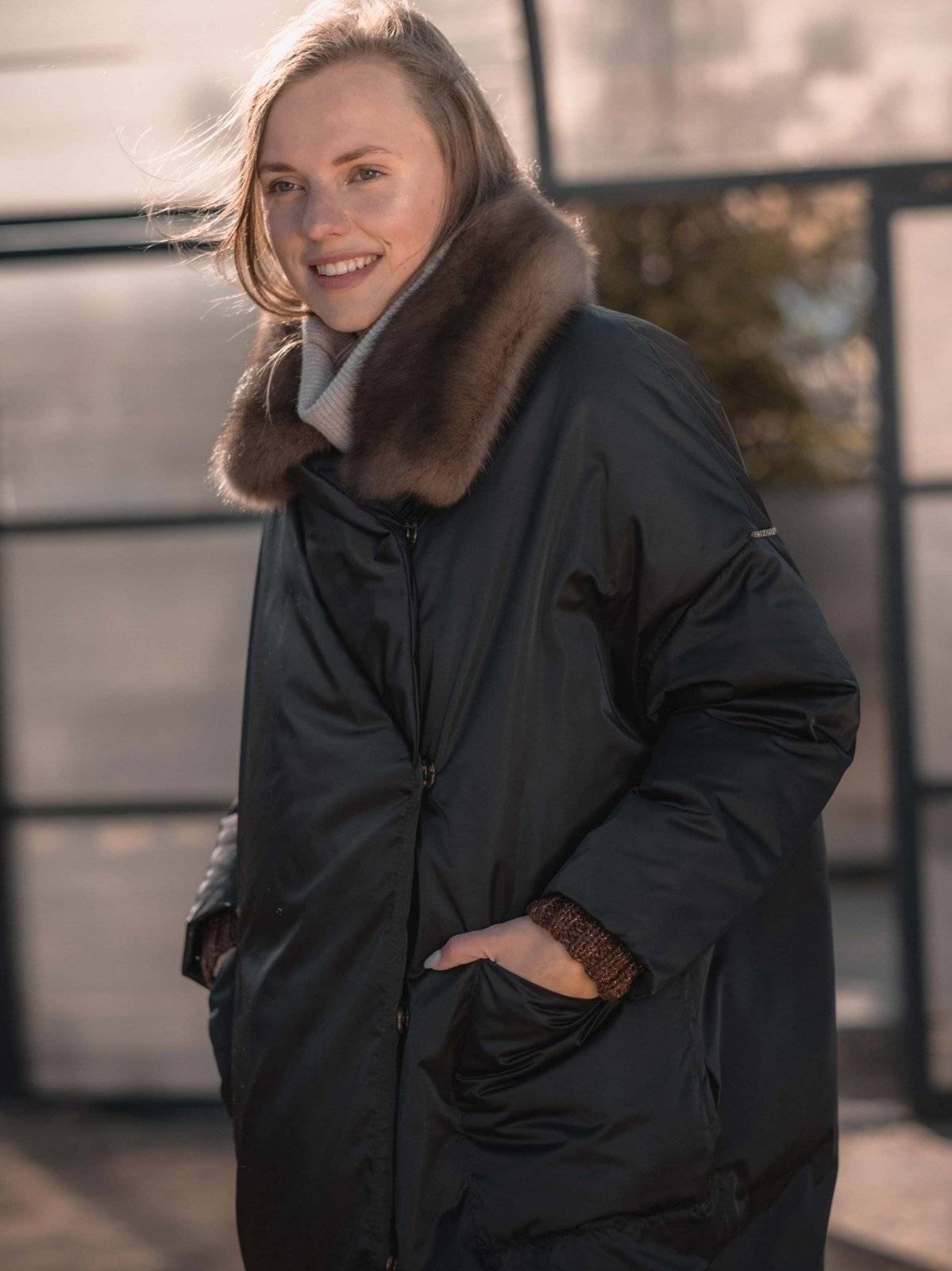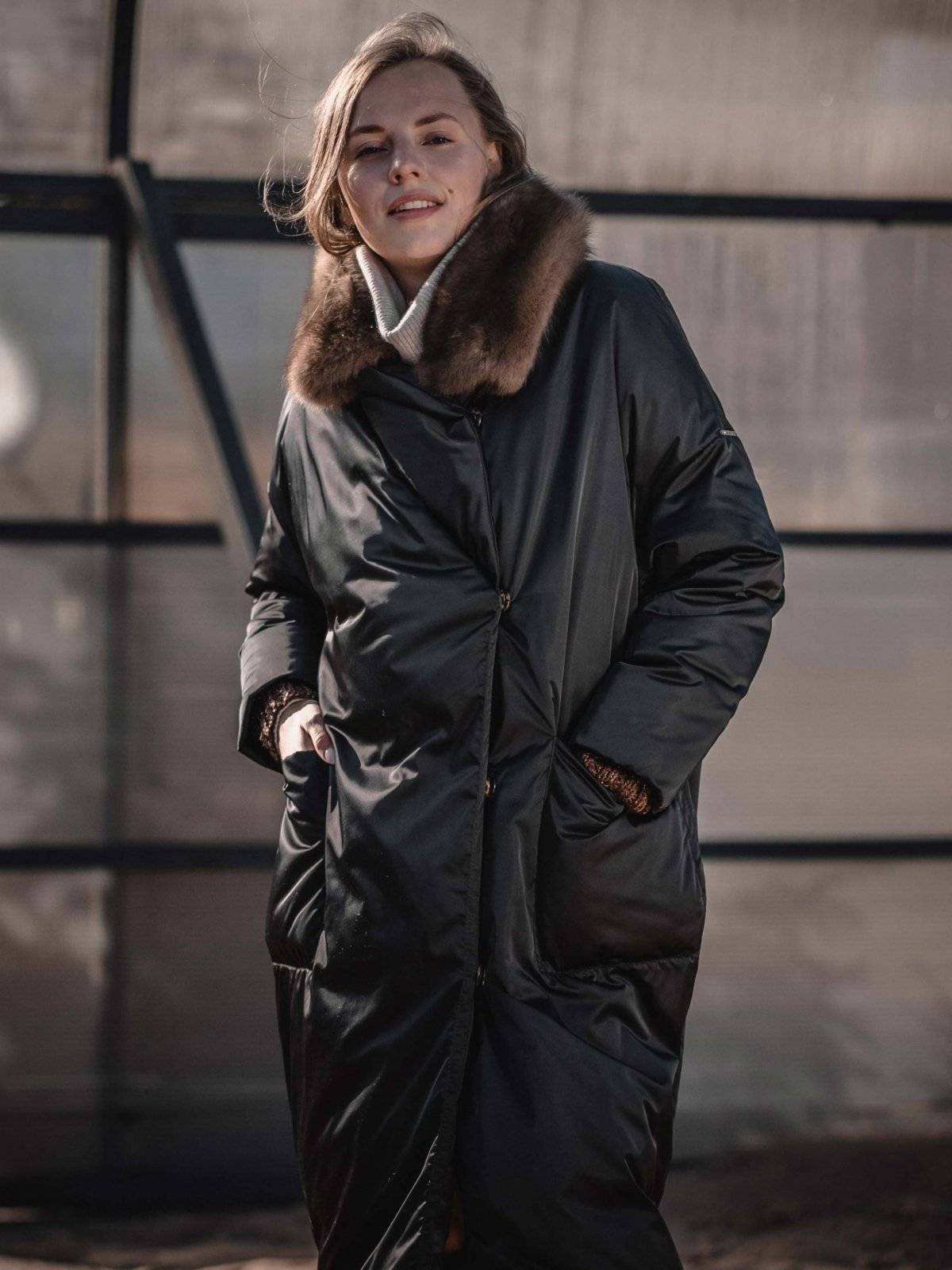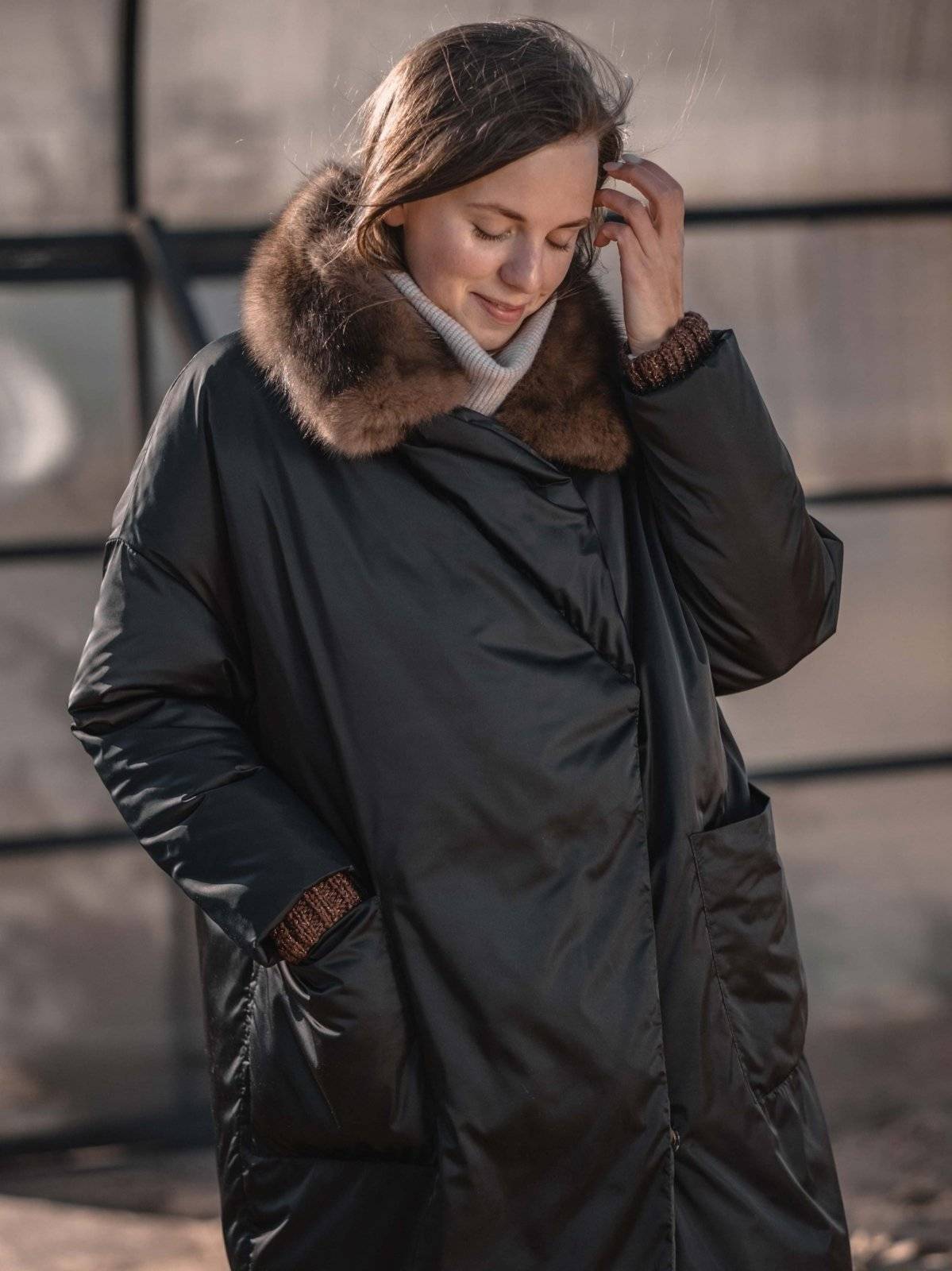 пуховое пальто оверсайз с соболем