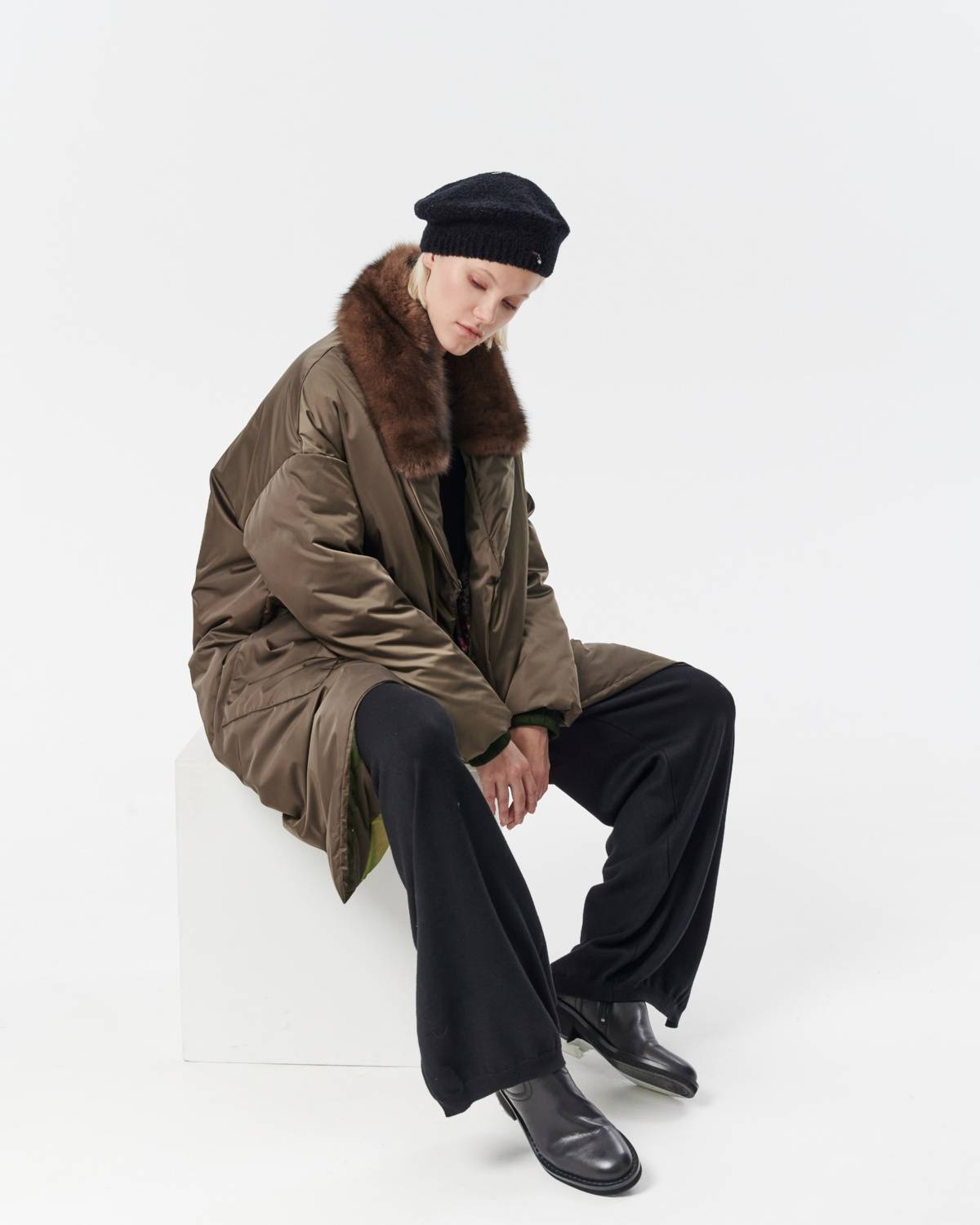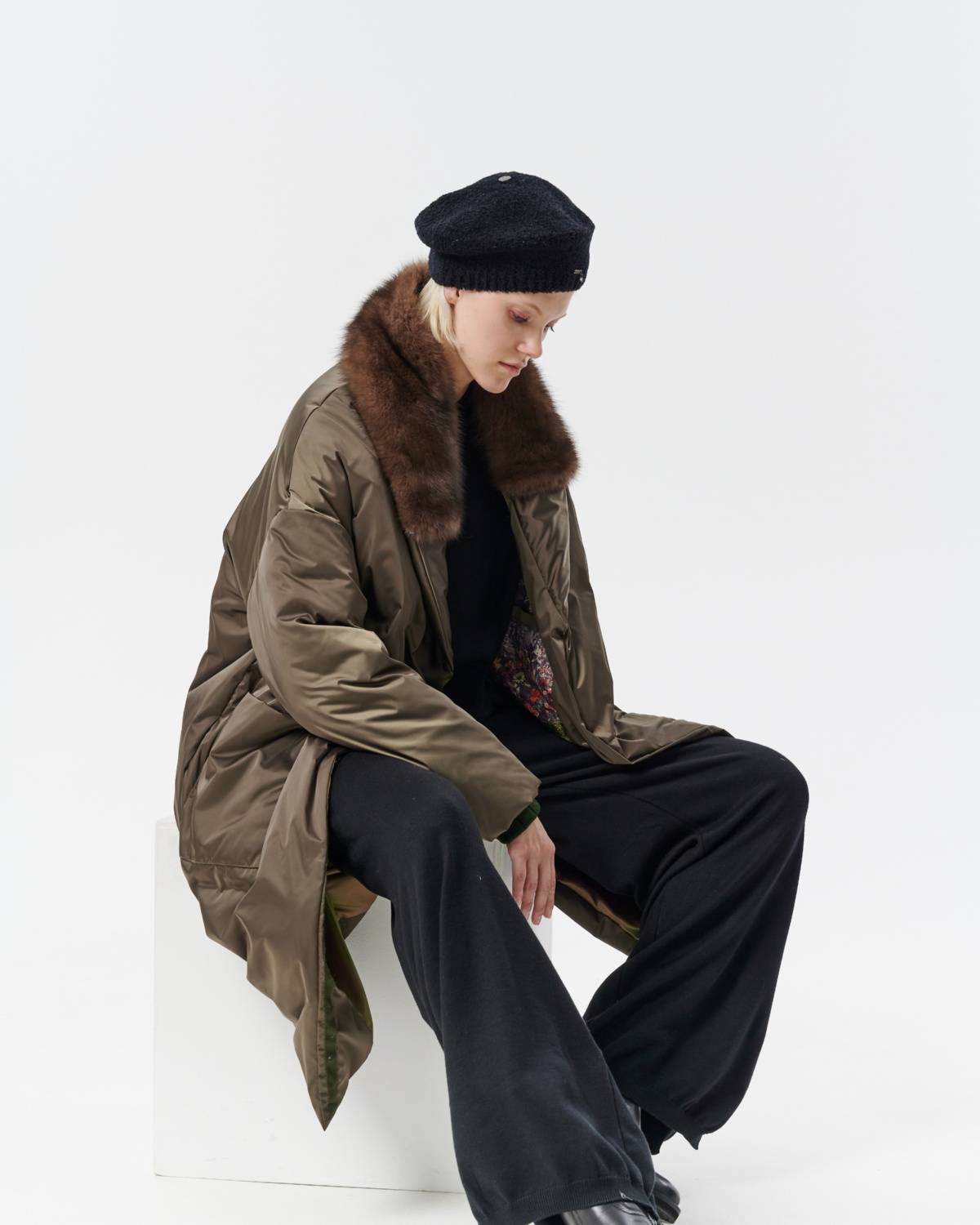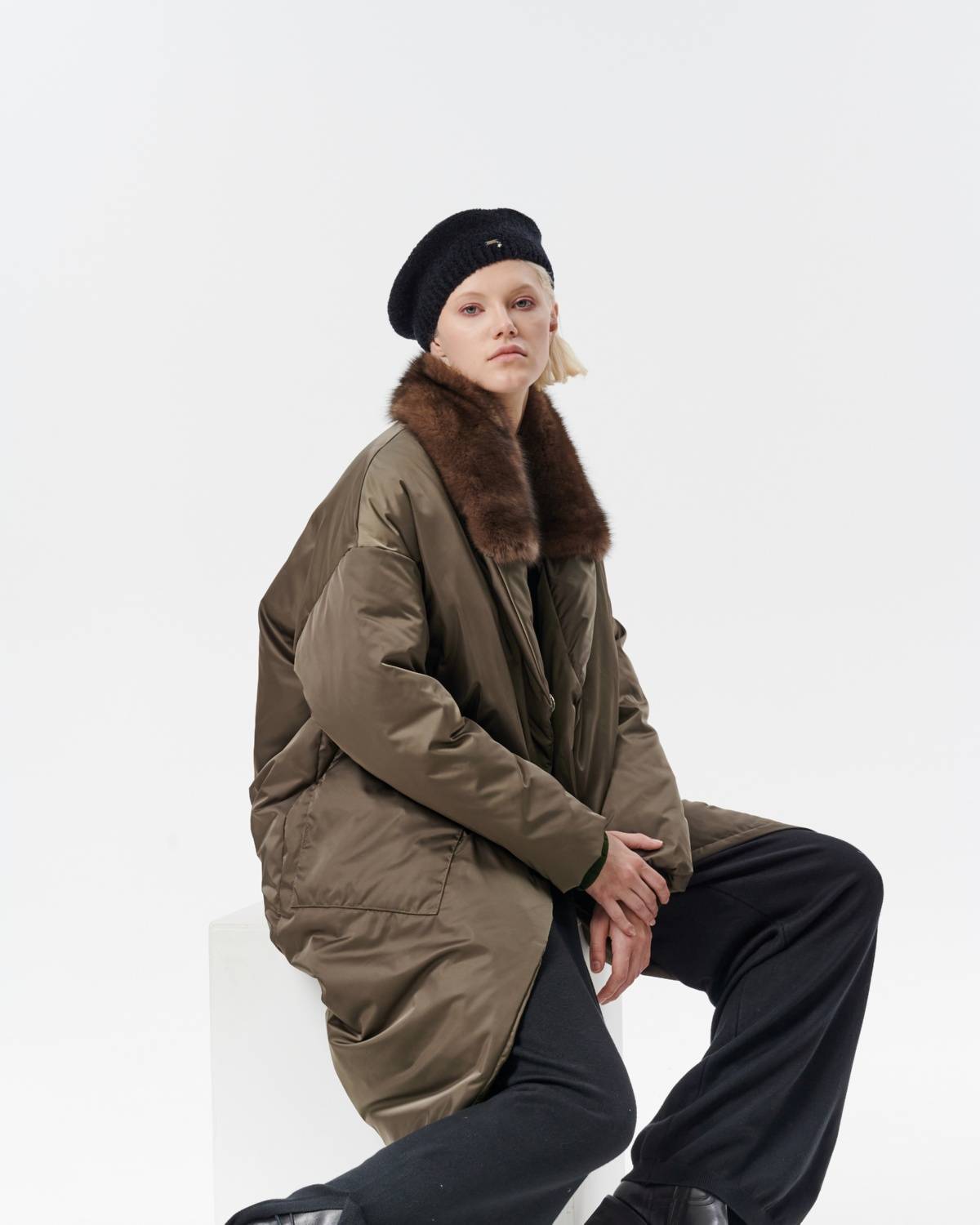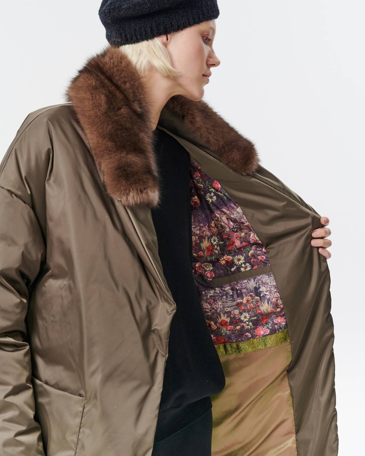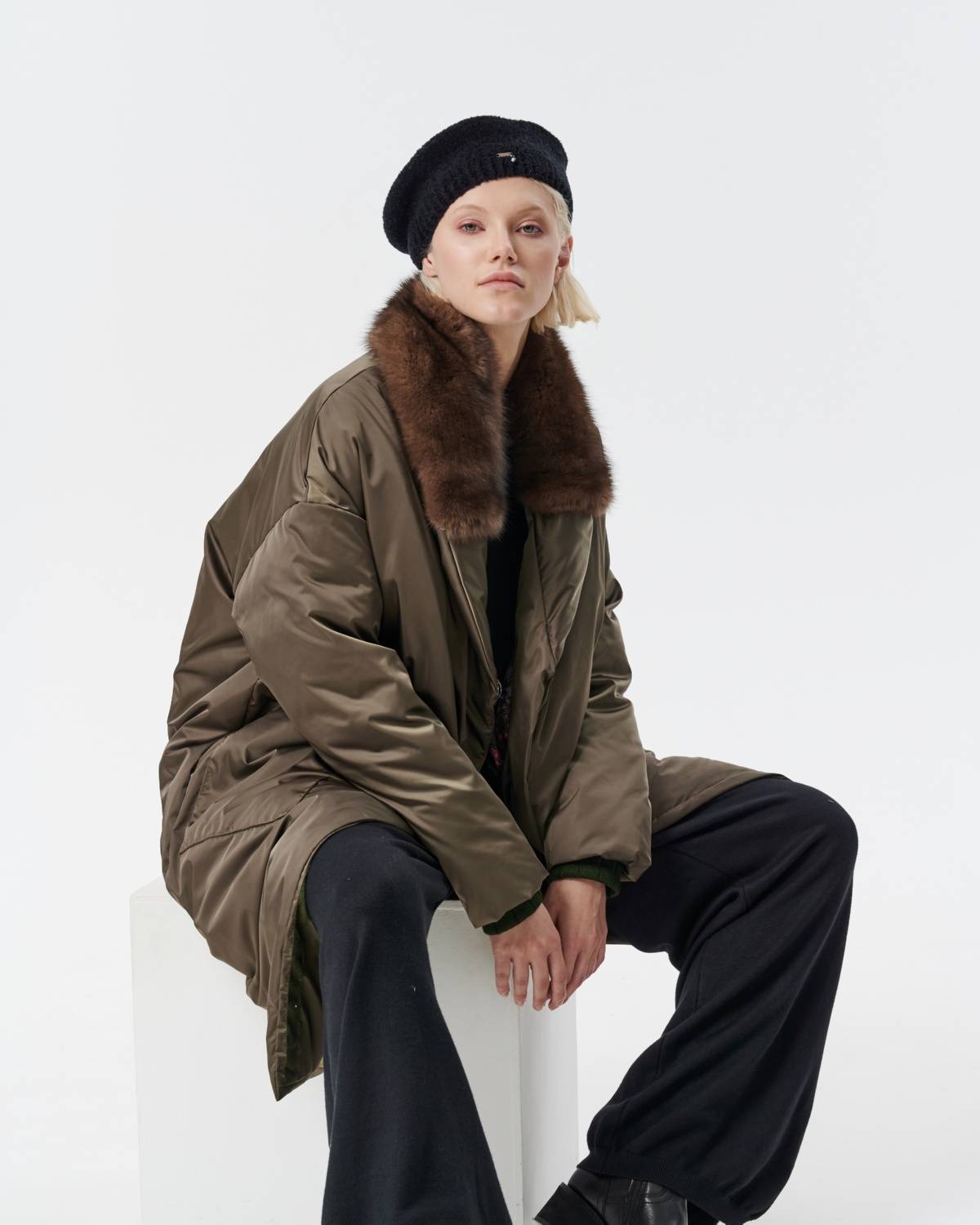 пуховое пальто оверсайз с соболем