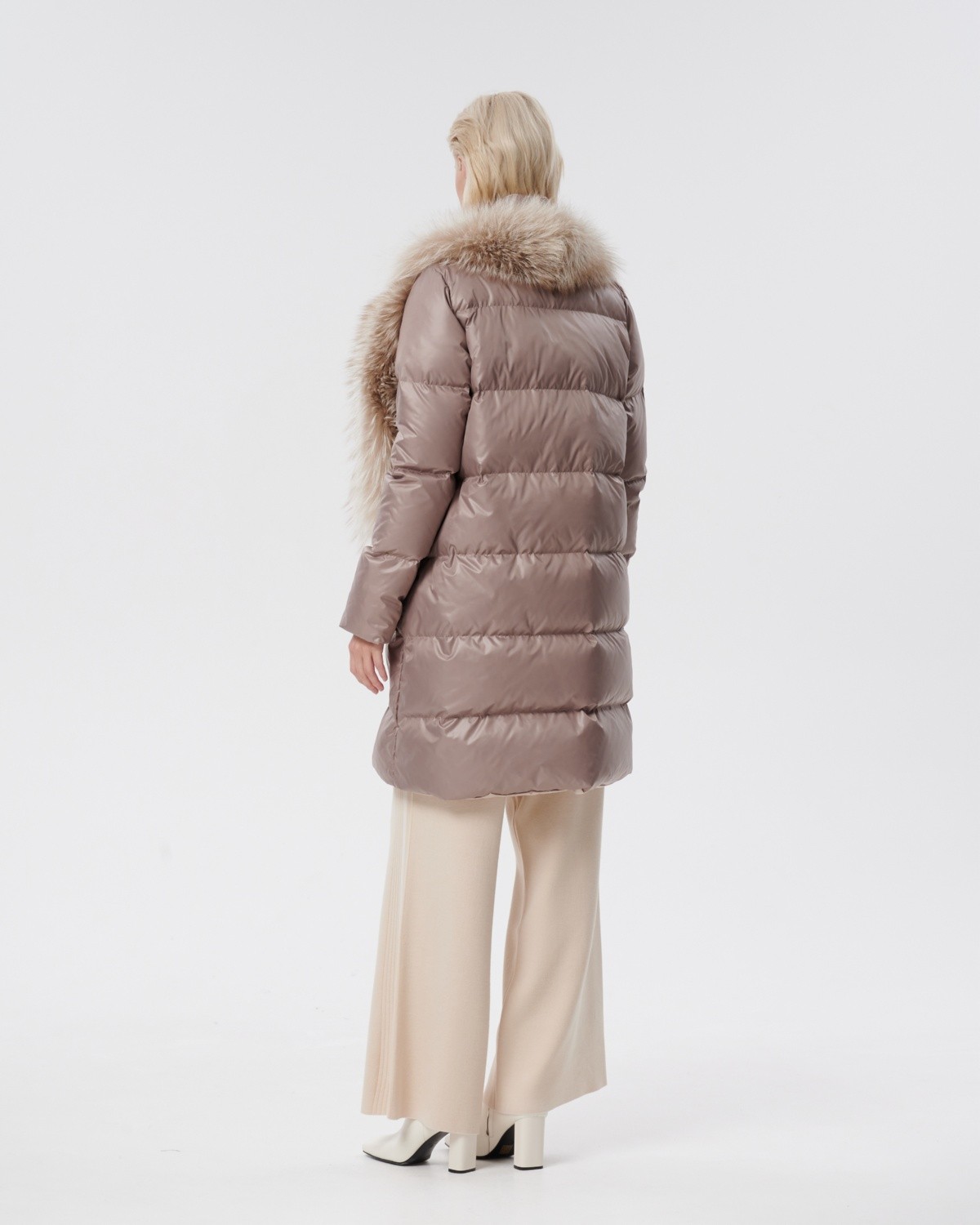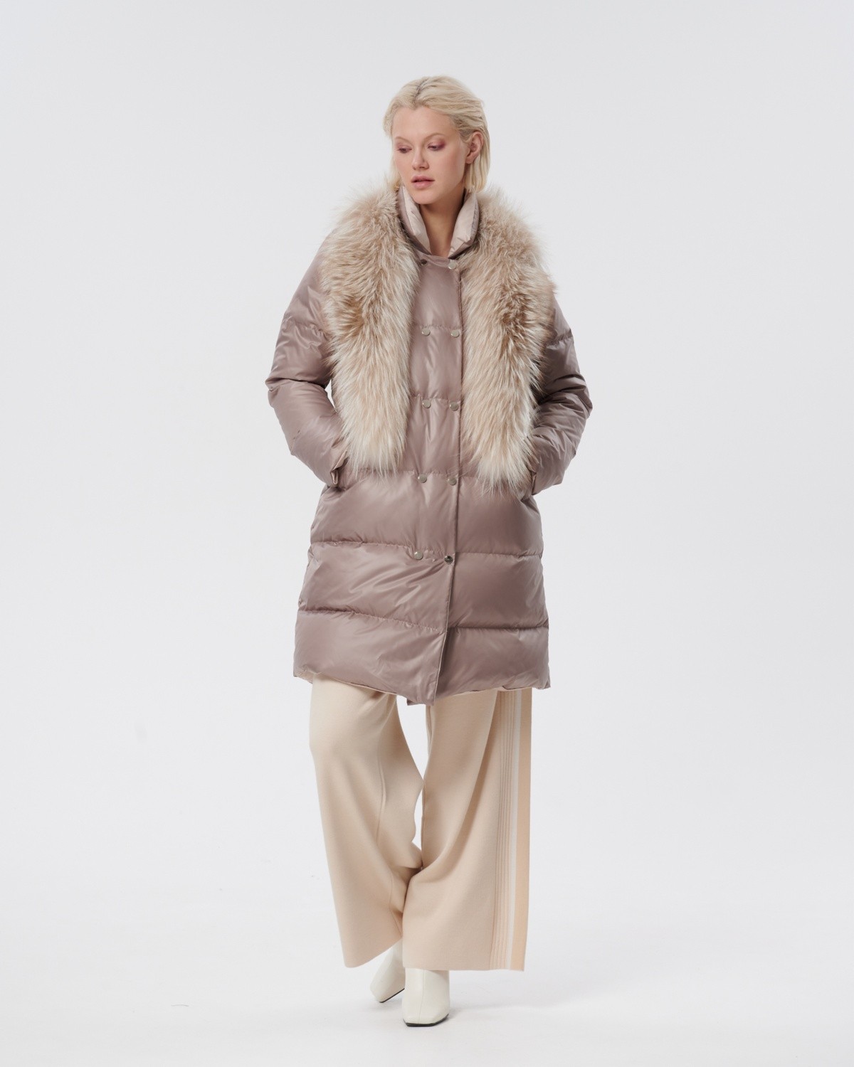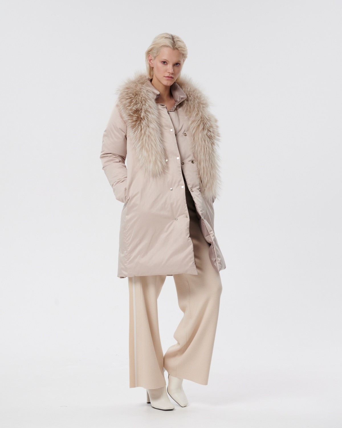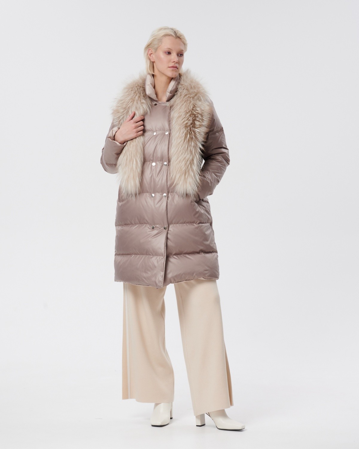 двустороннее пуховое пальто с меховым воротником