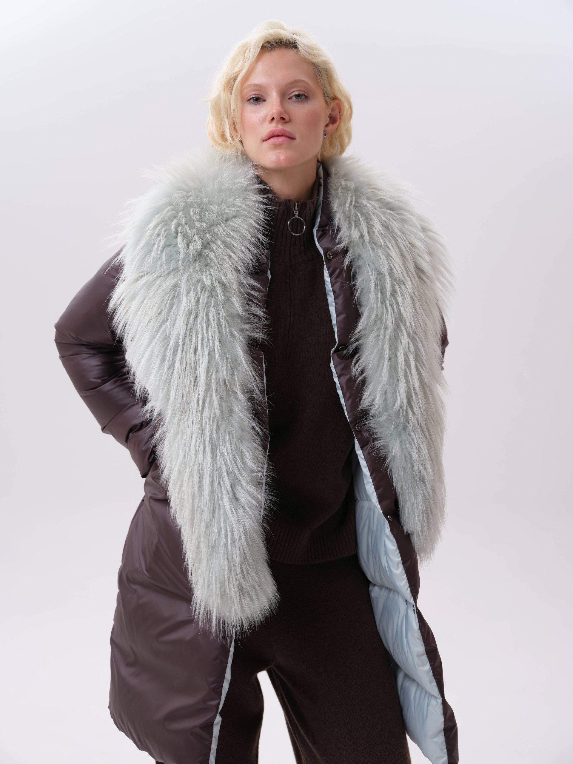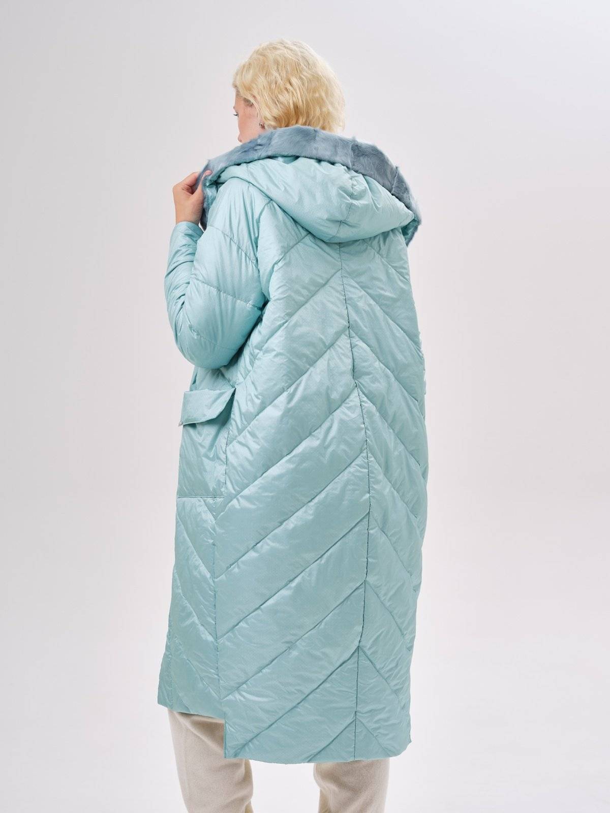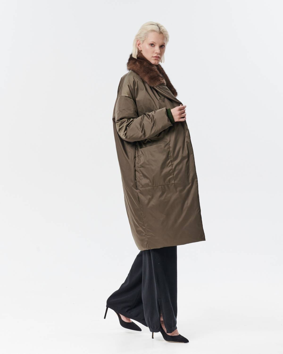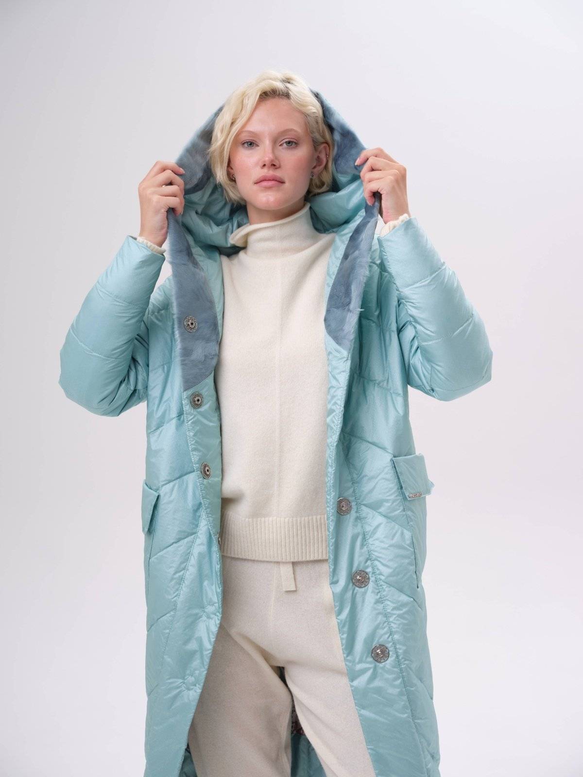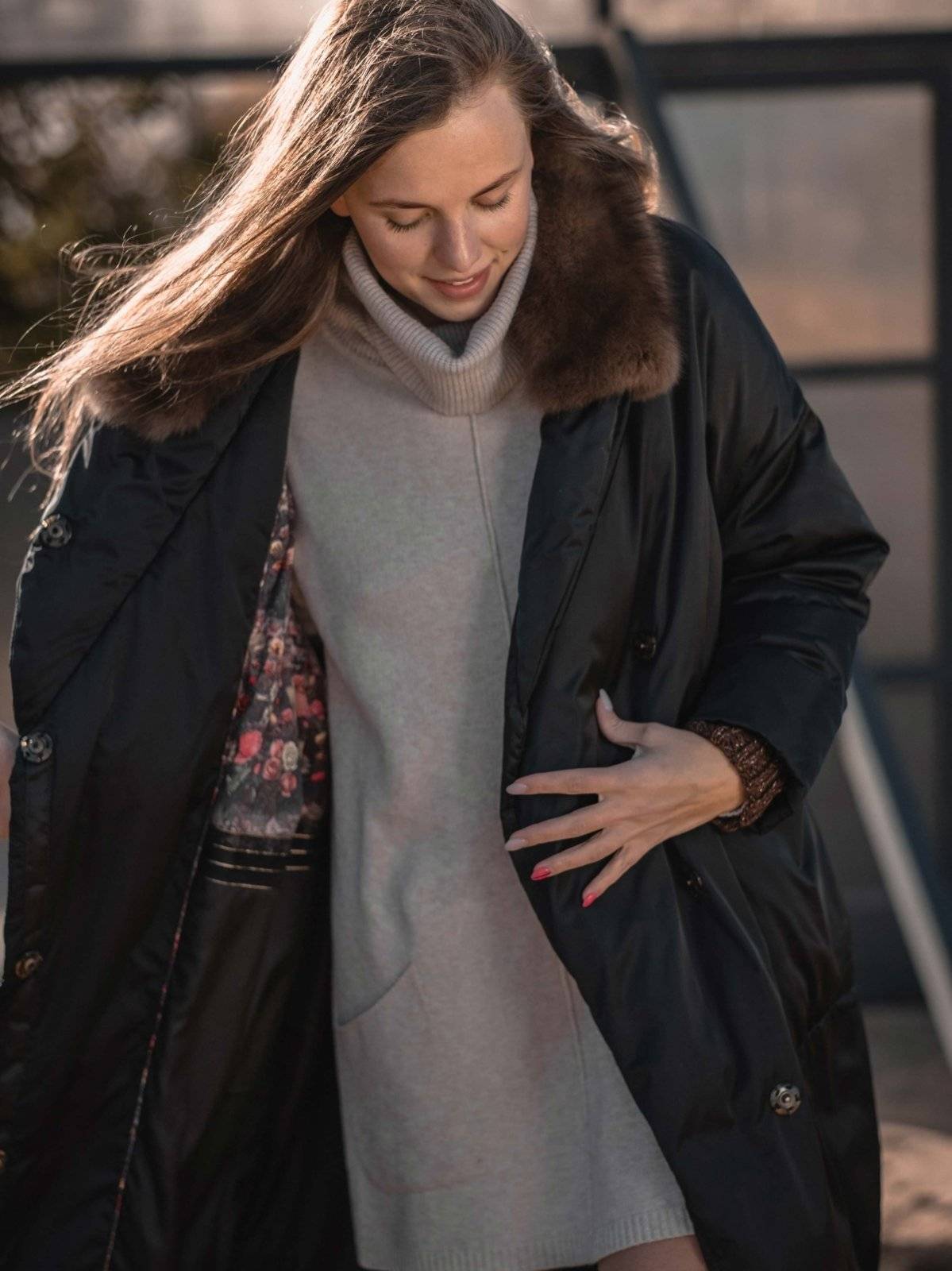 двустороннее пуховое пальто с меховым воротником