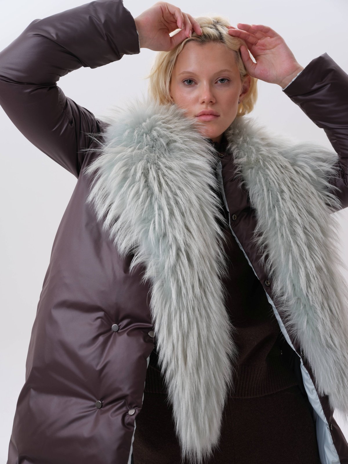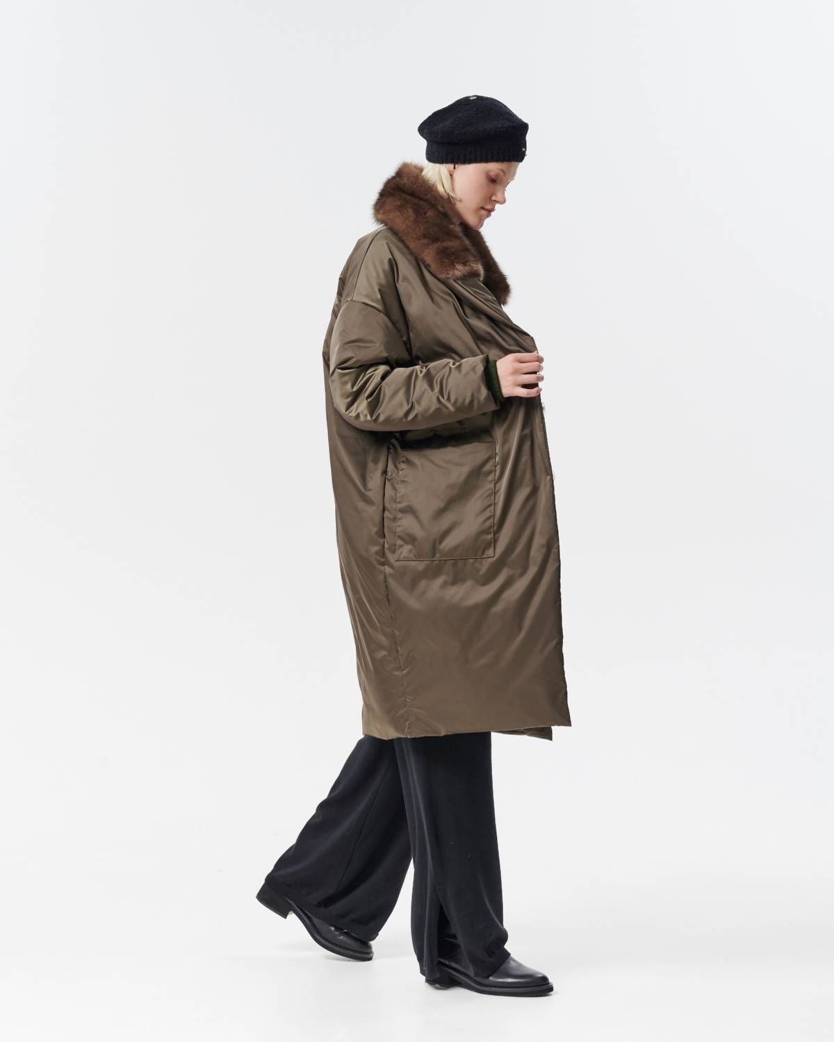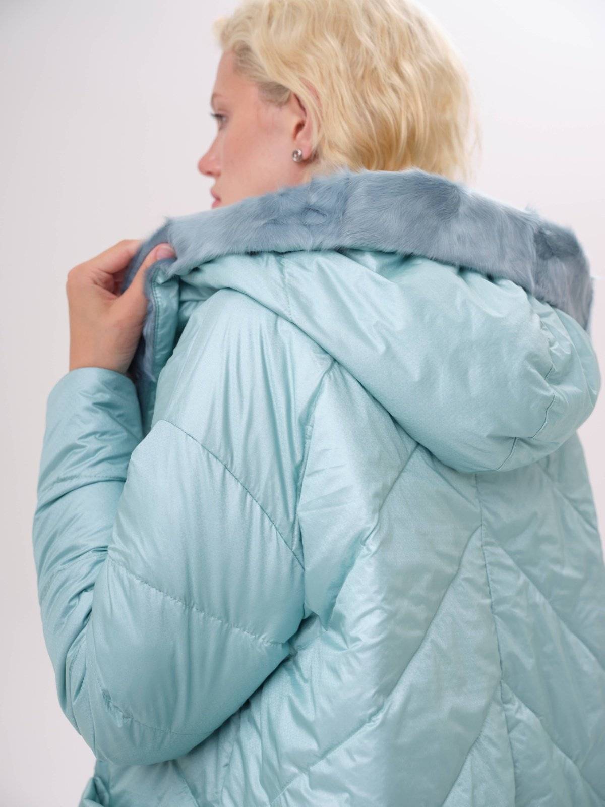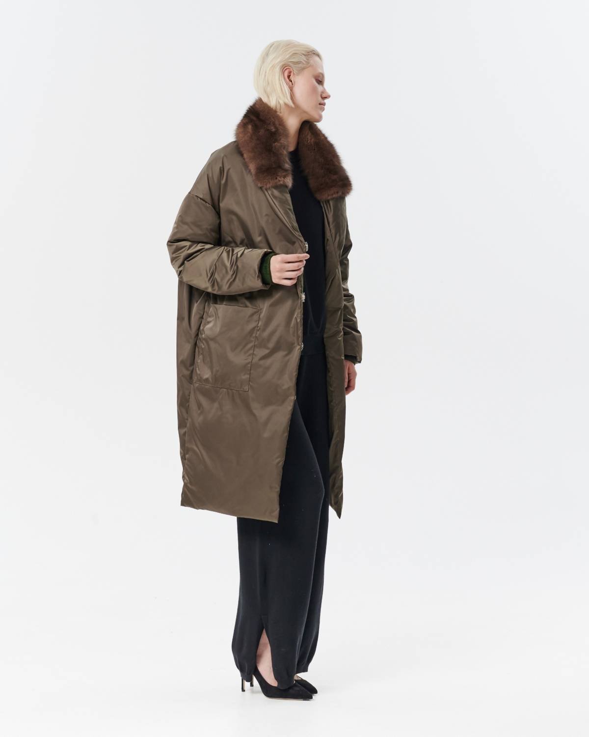 двустороннее пуховое пальто с меховым воротником