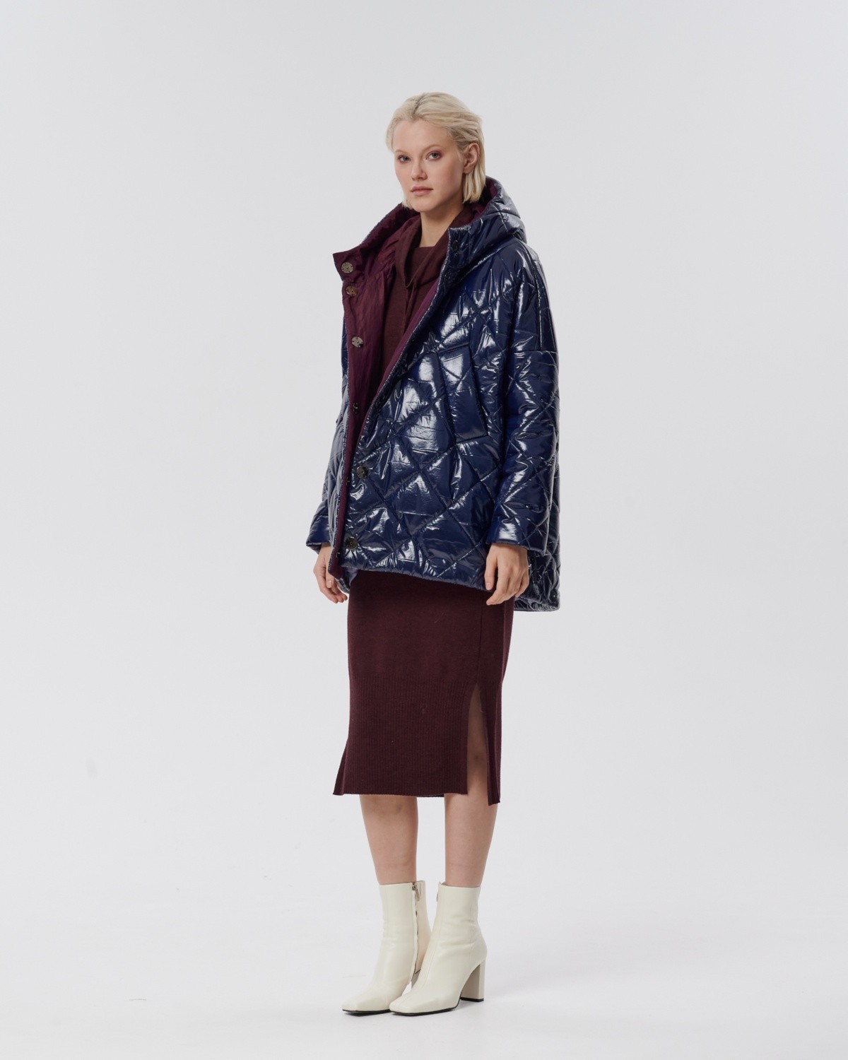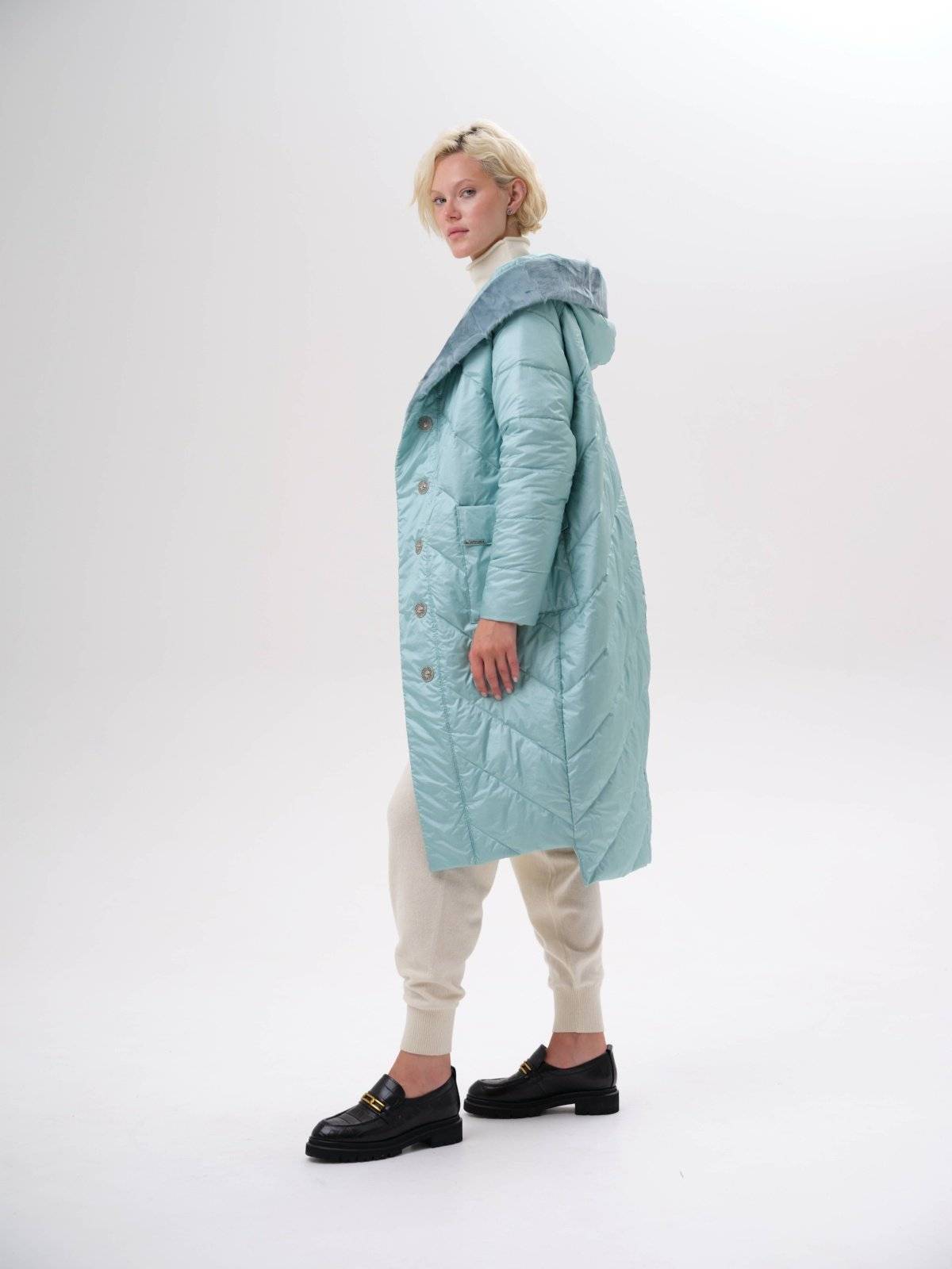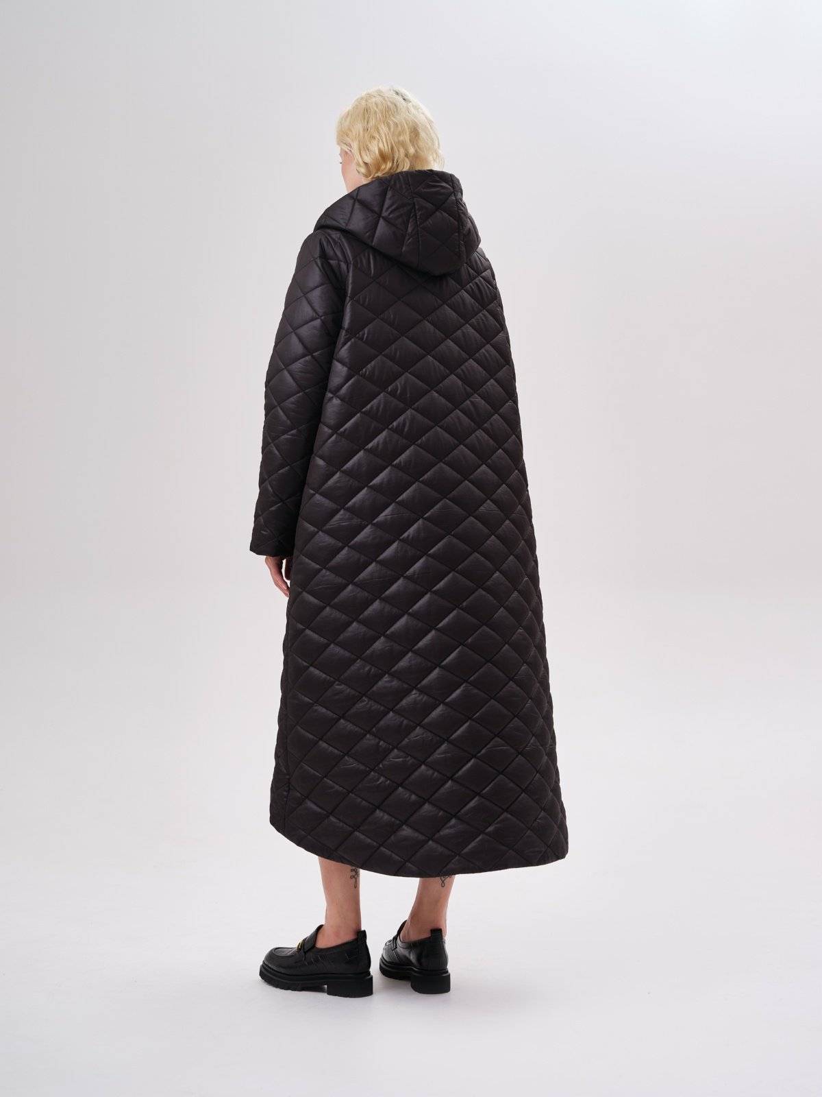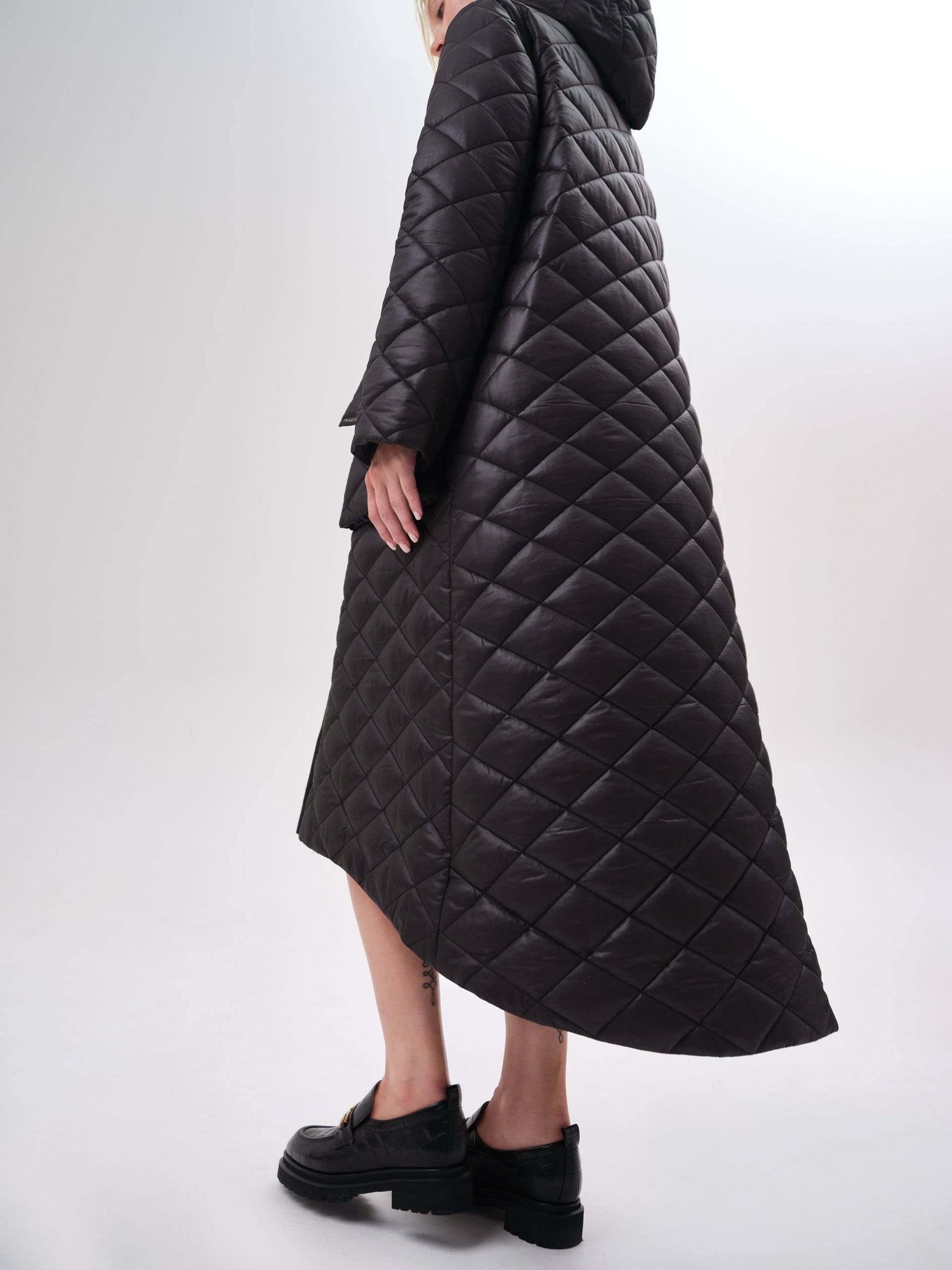 стеганое пальто с ассиметричным низом