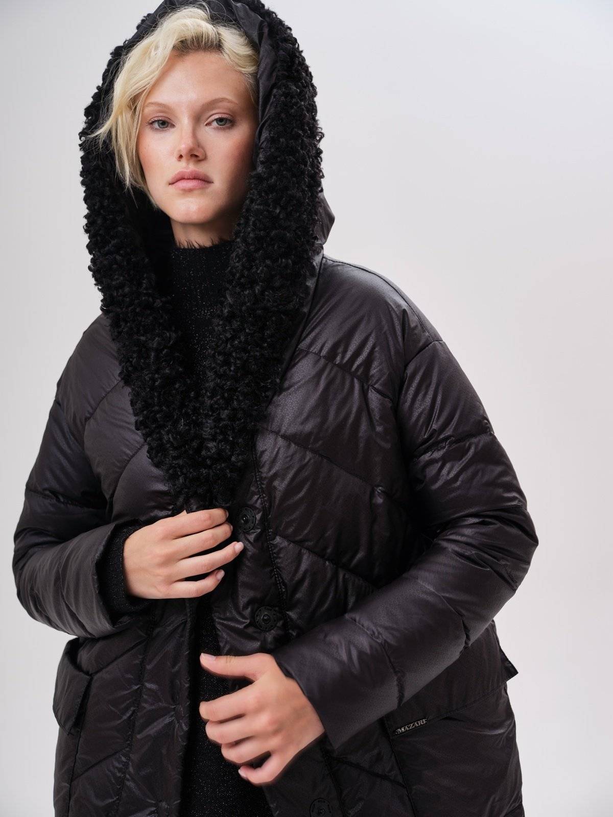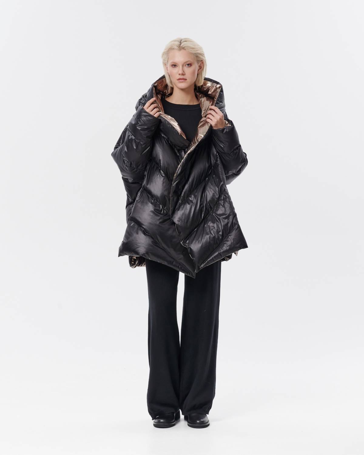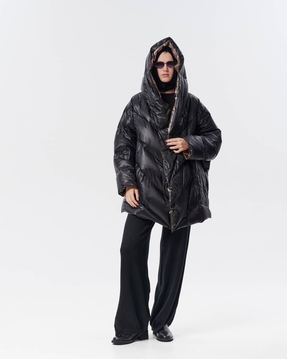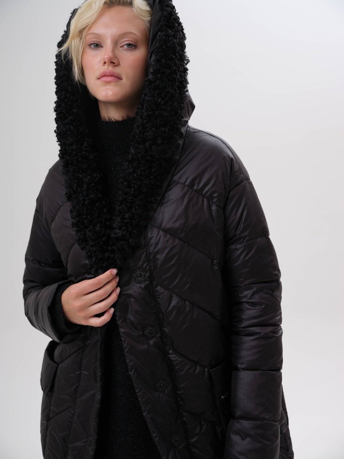 пуховик оверсайз на молнии с капюшоном