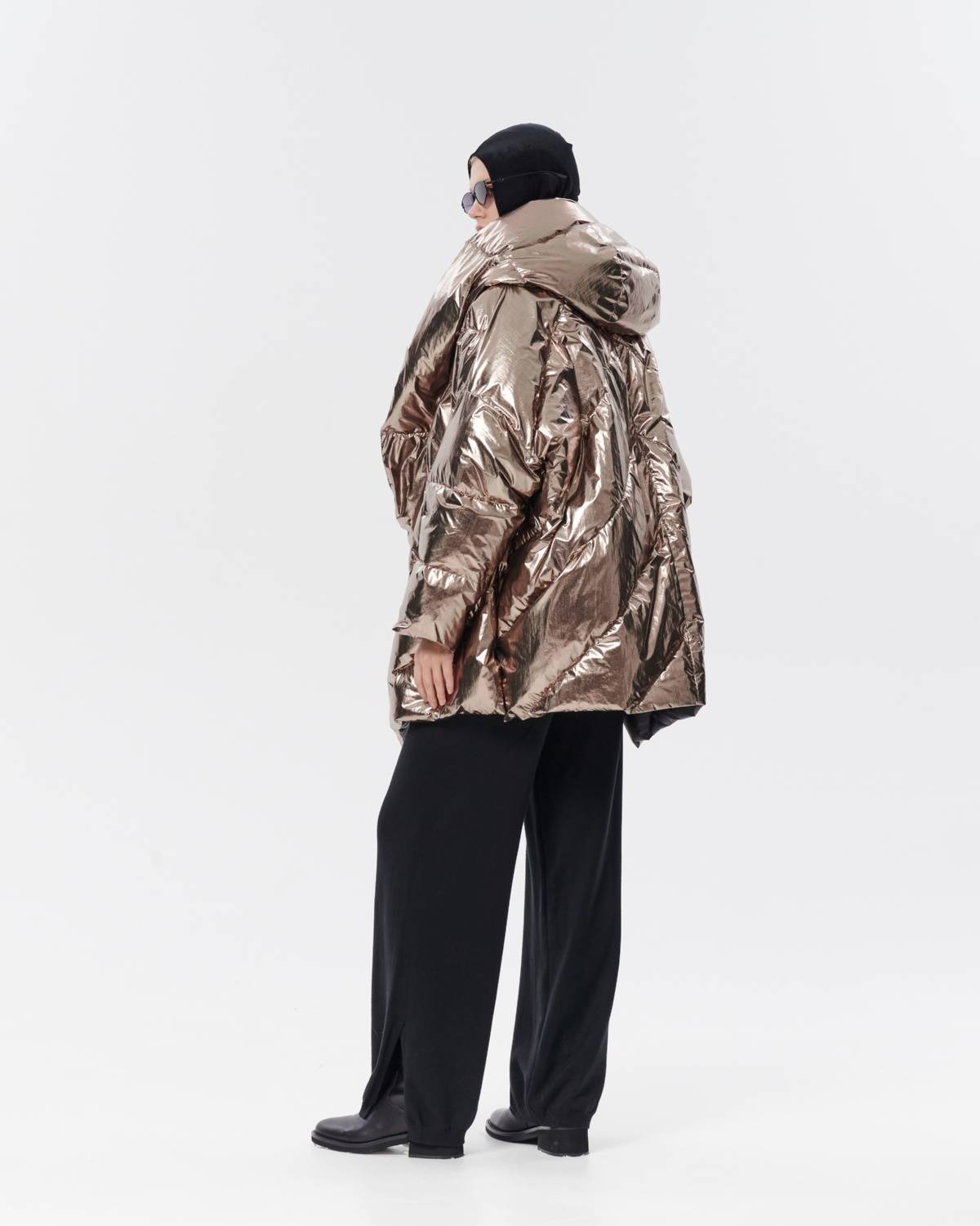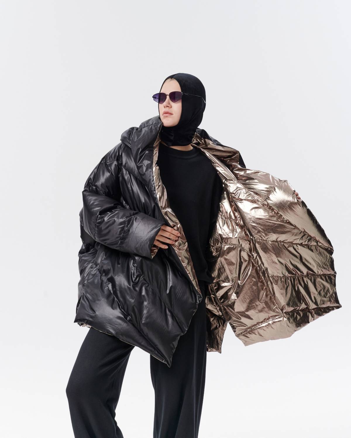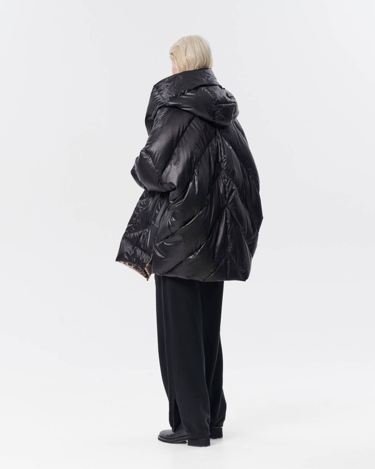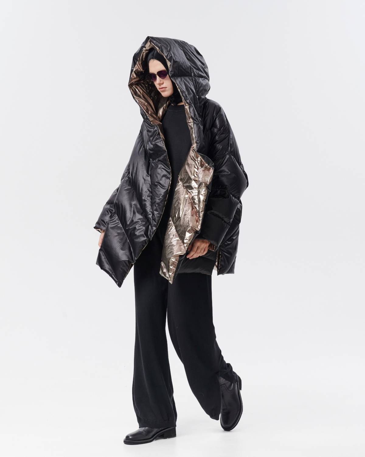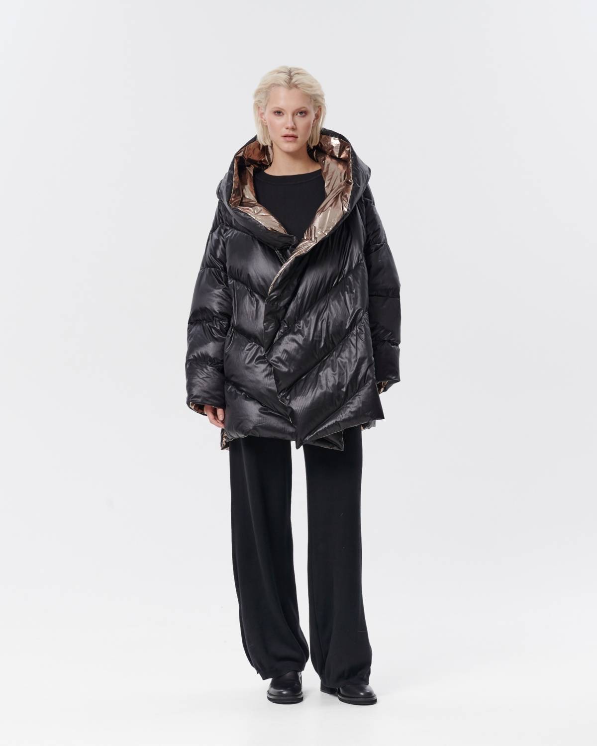 пуховик оверсайз на молнии с капюшоном
