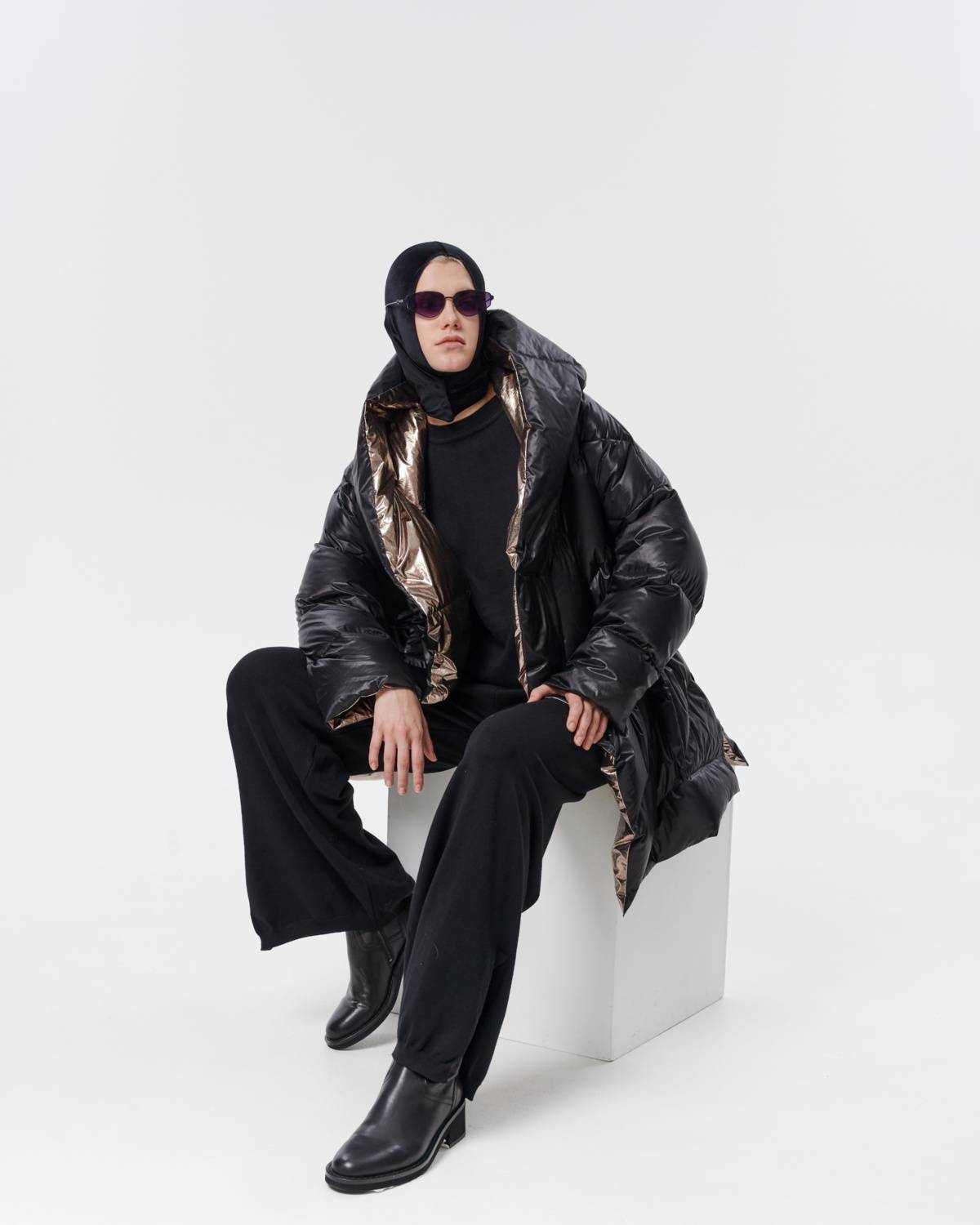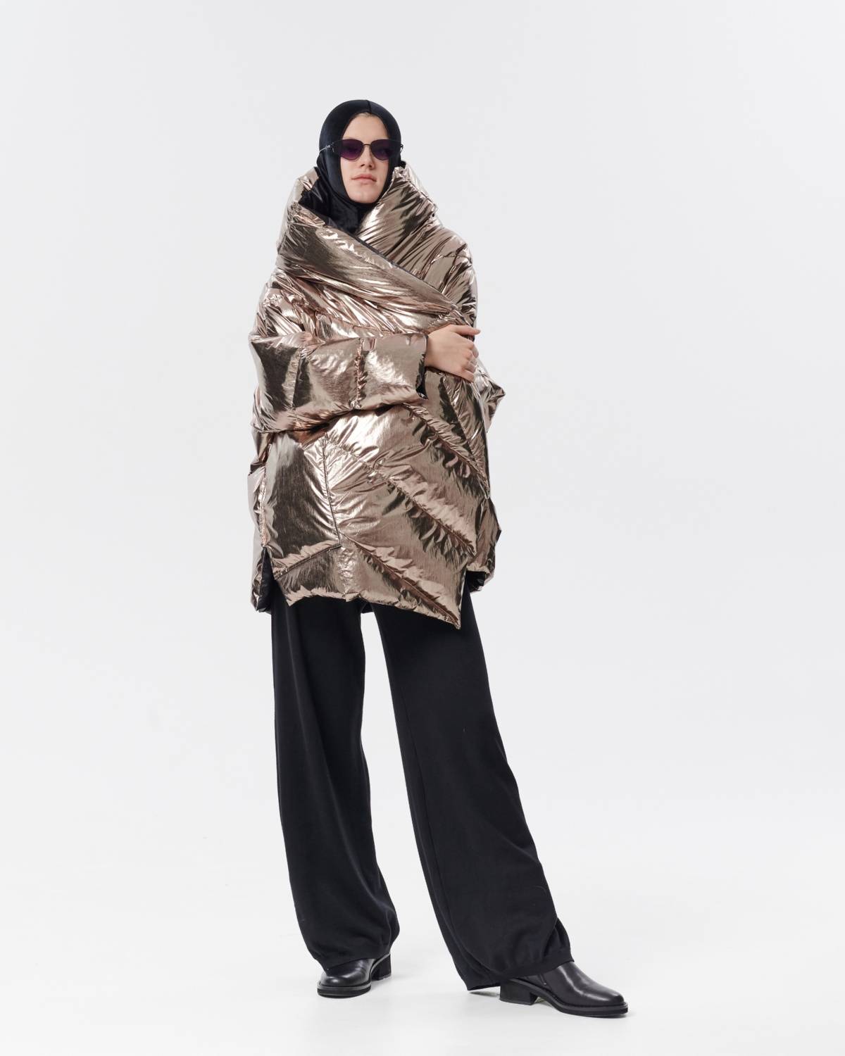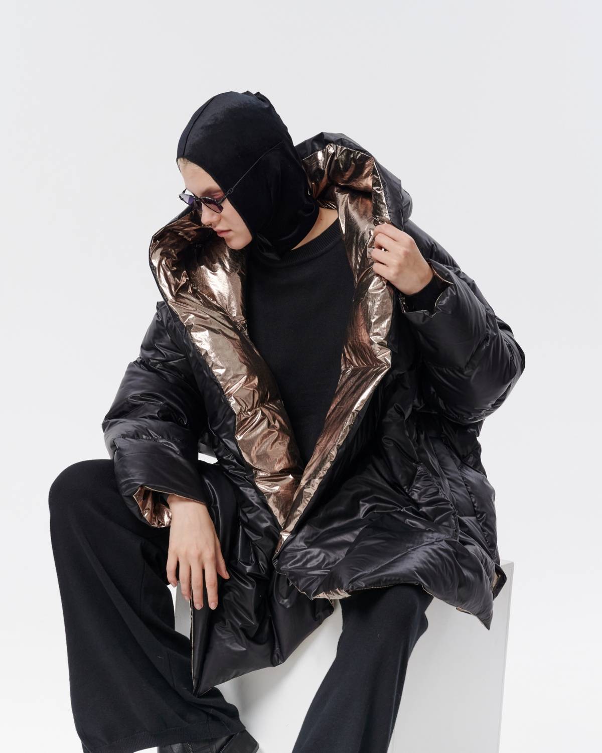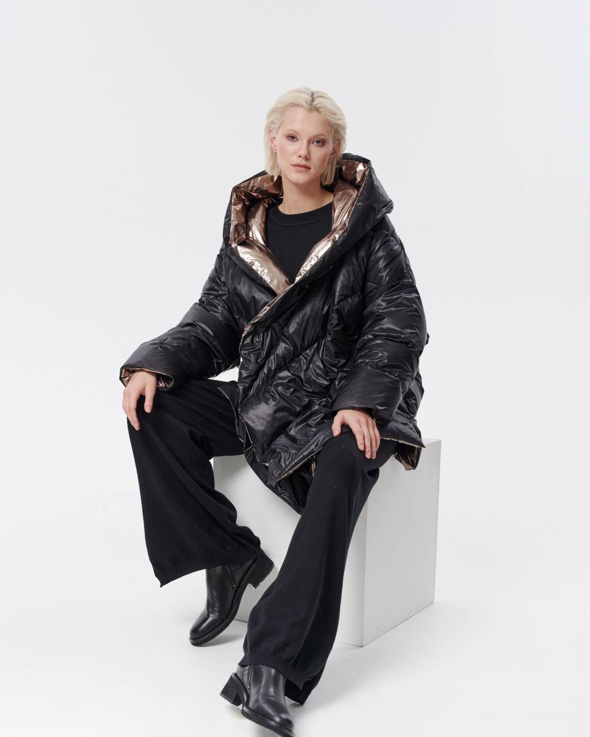 пуховик оверсайз на молнии с капюшоном