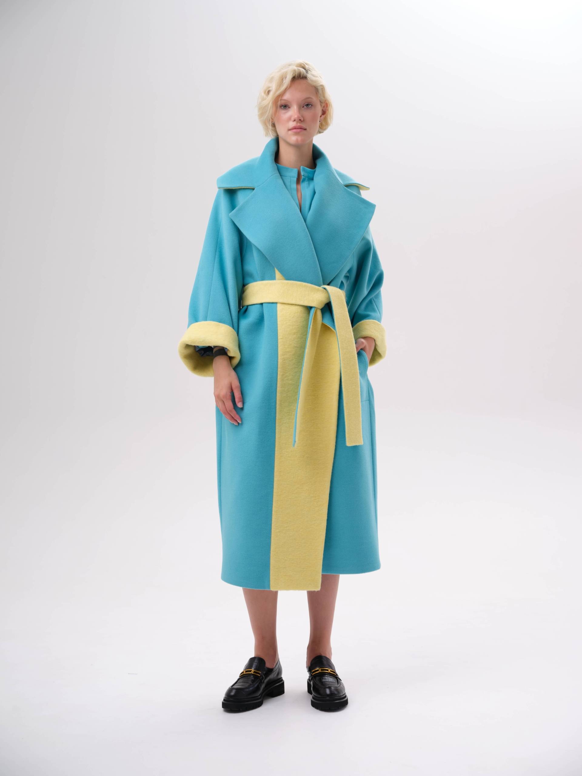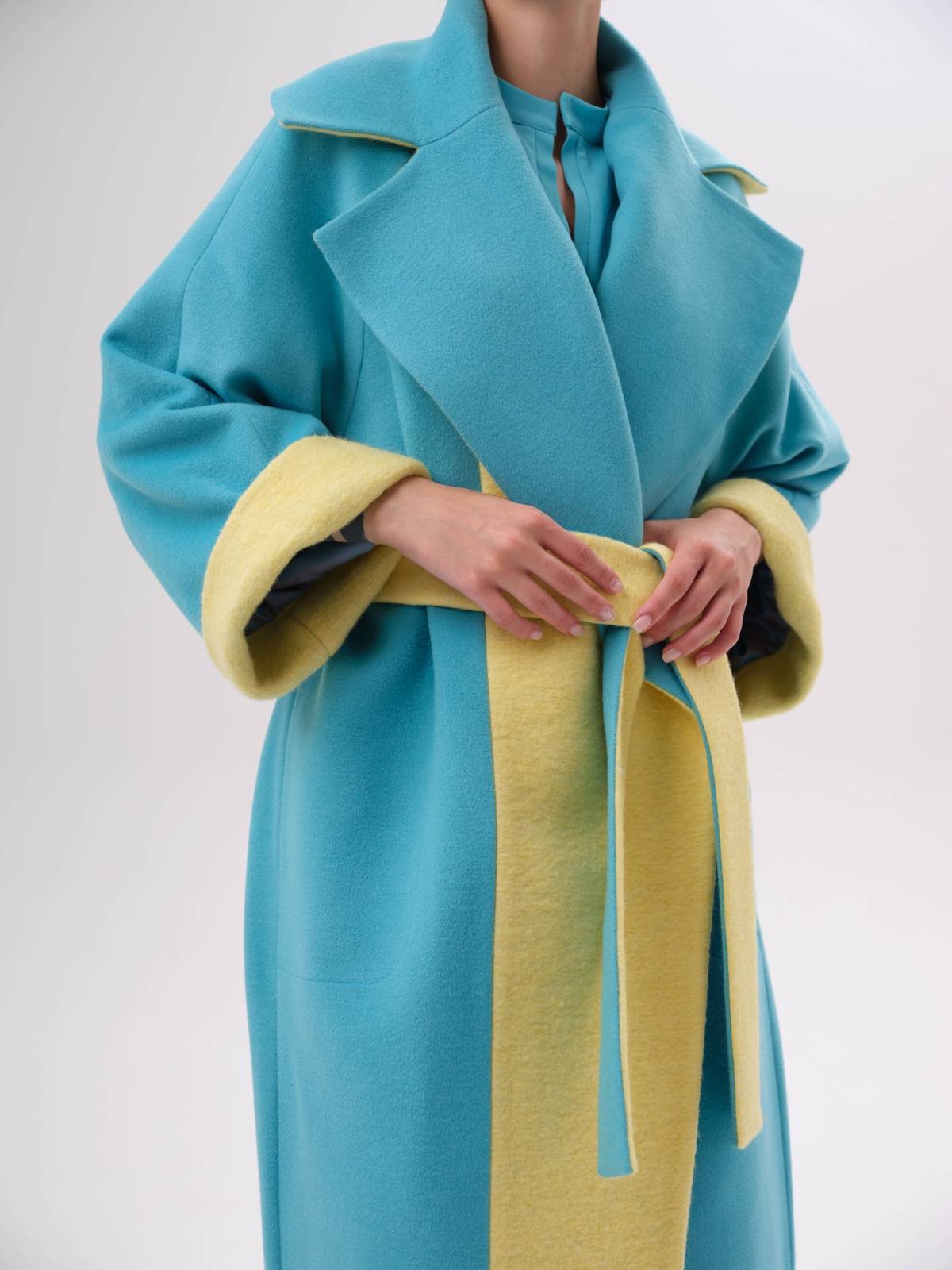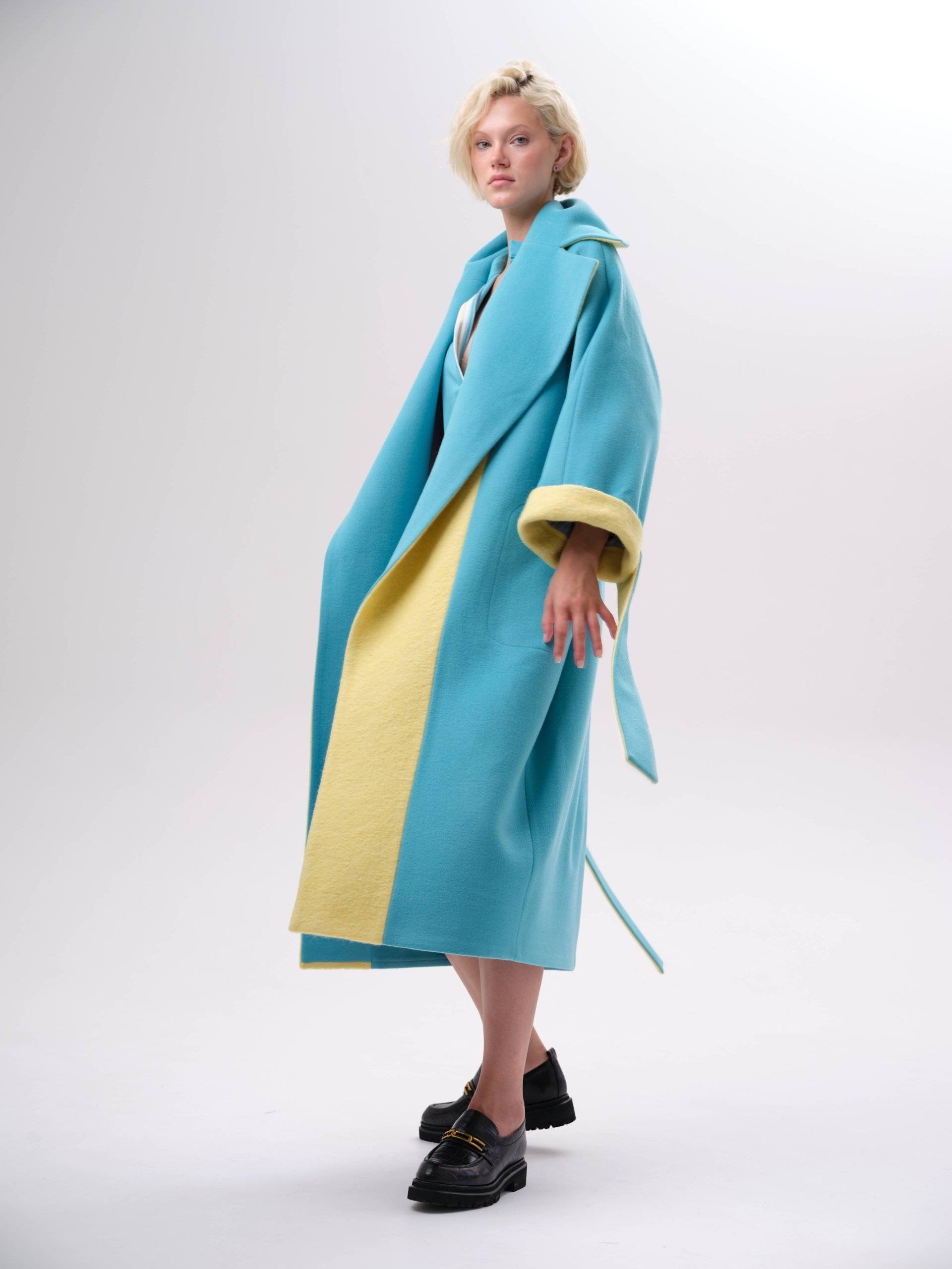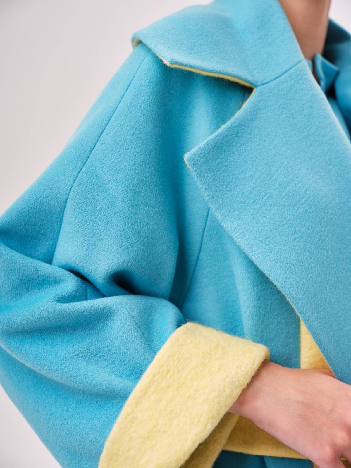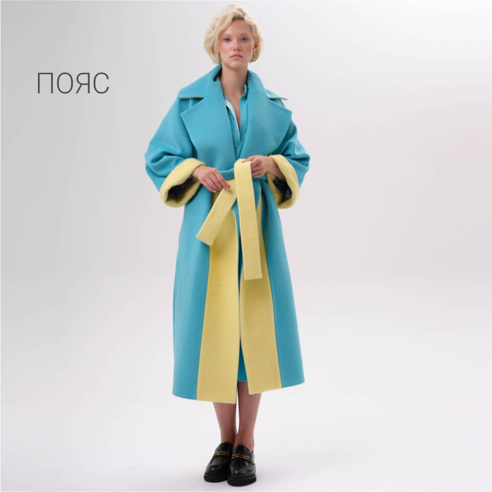 яркое пальто оверсайз со вставками