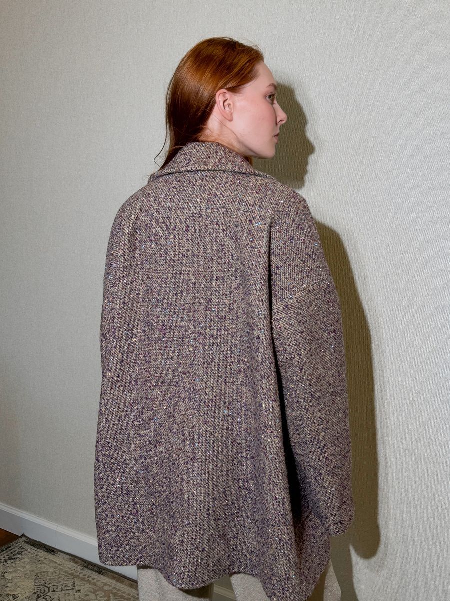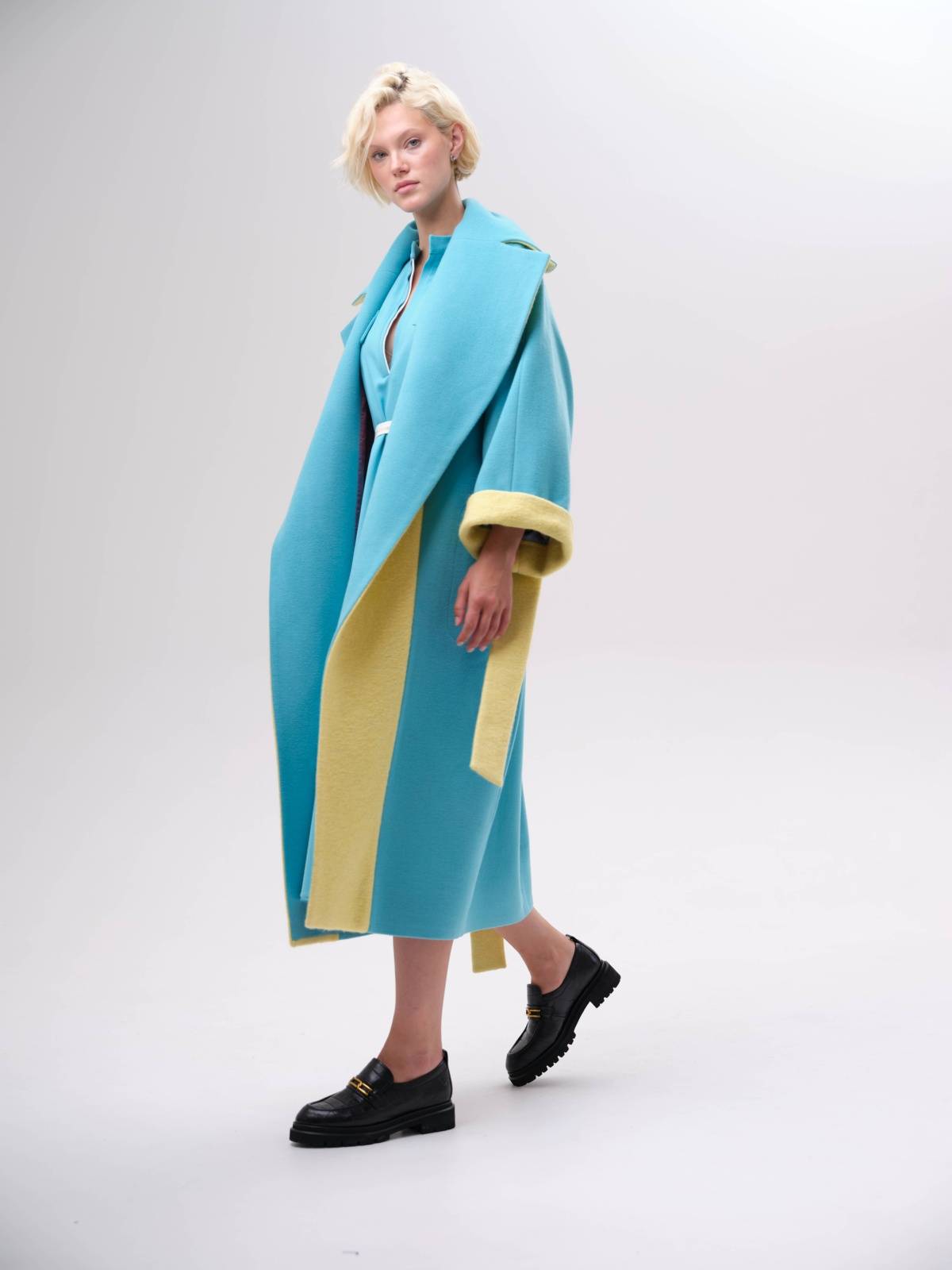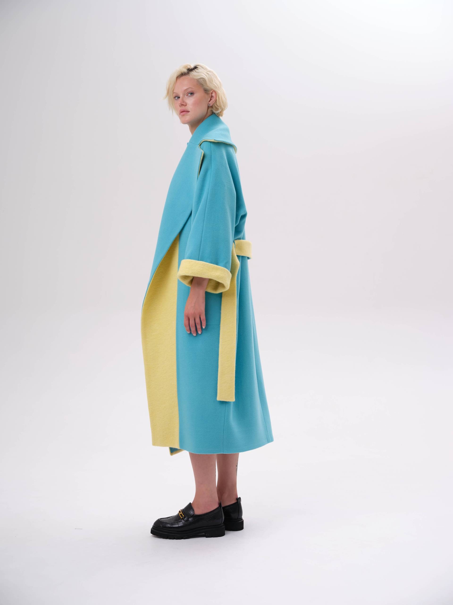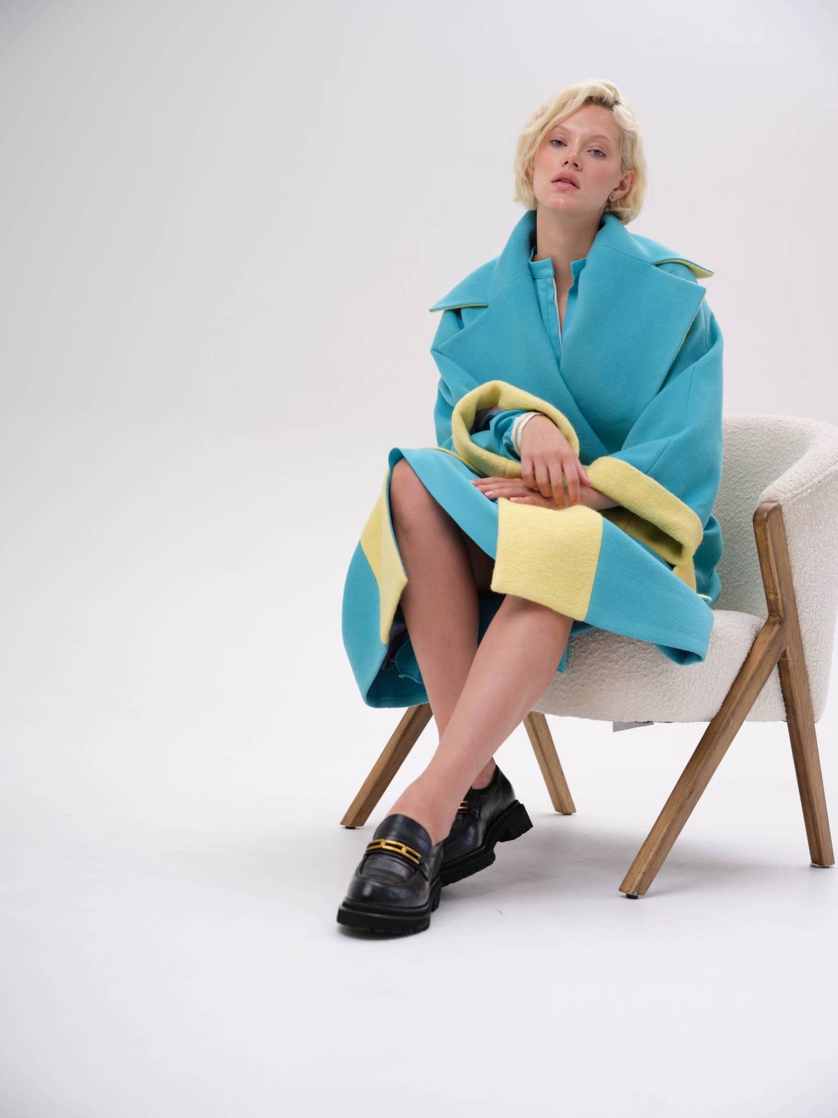 яркое пальто оверсайз со вставками