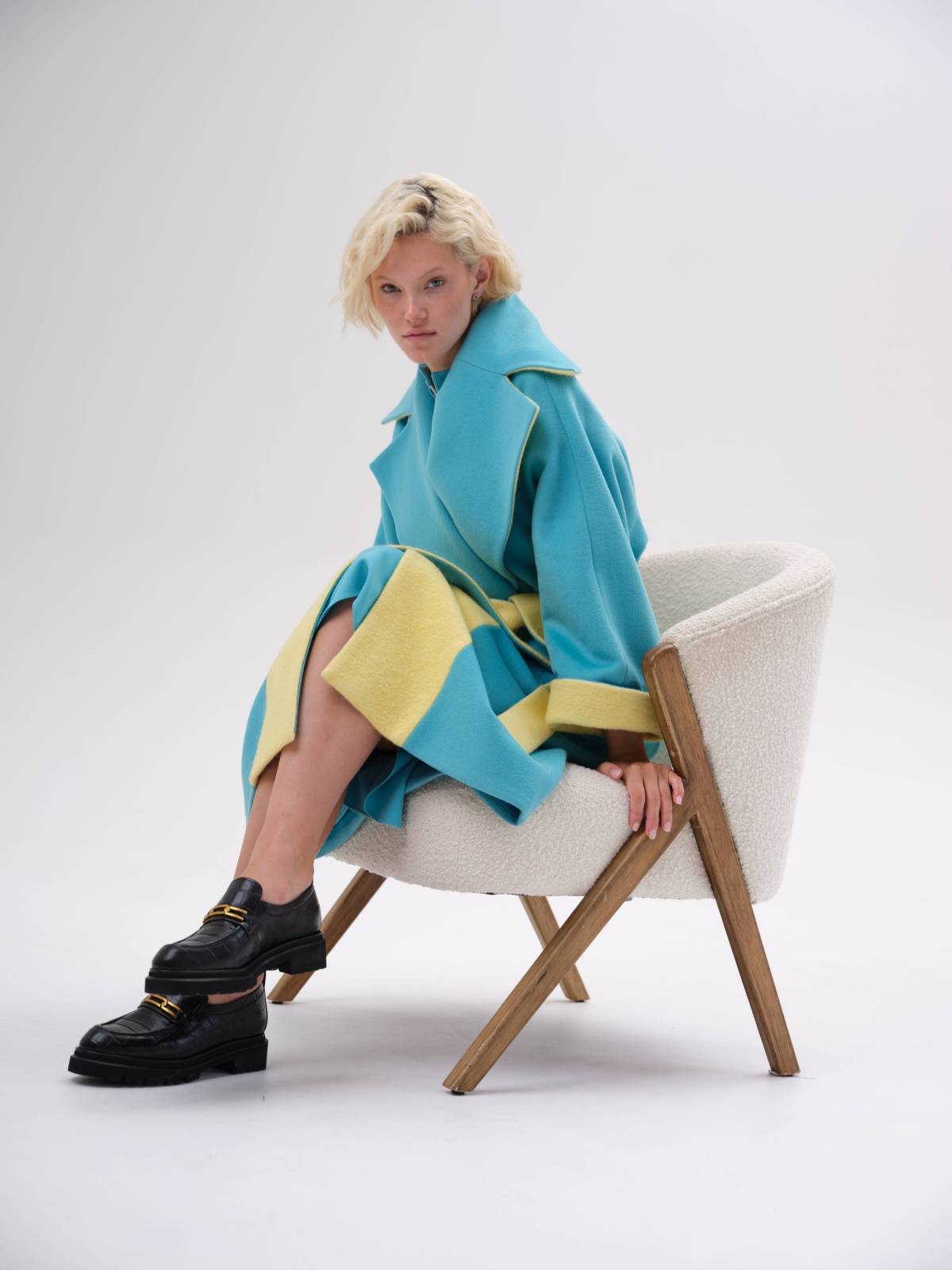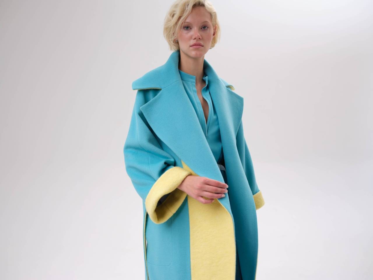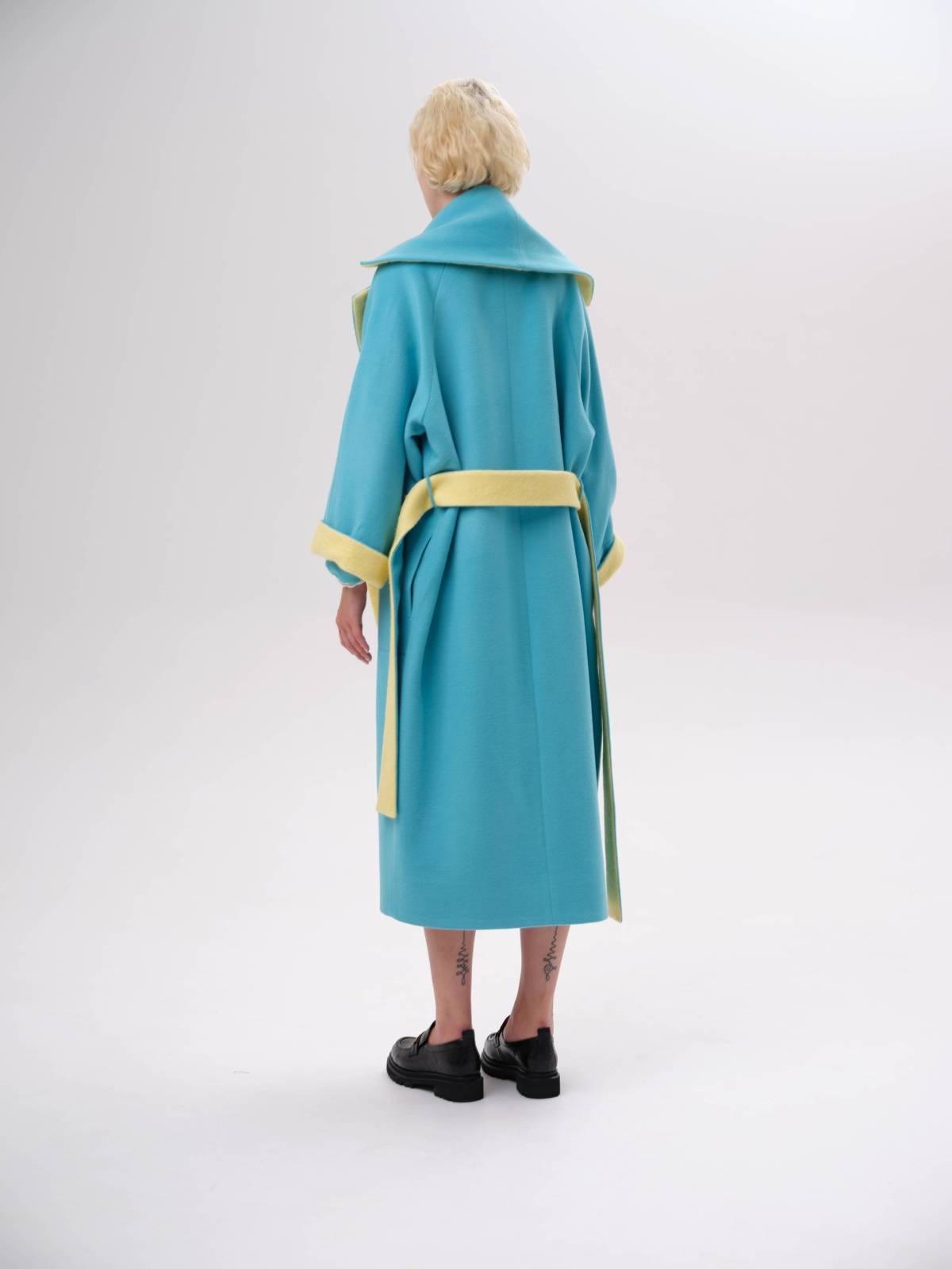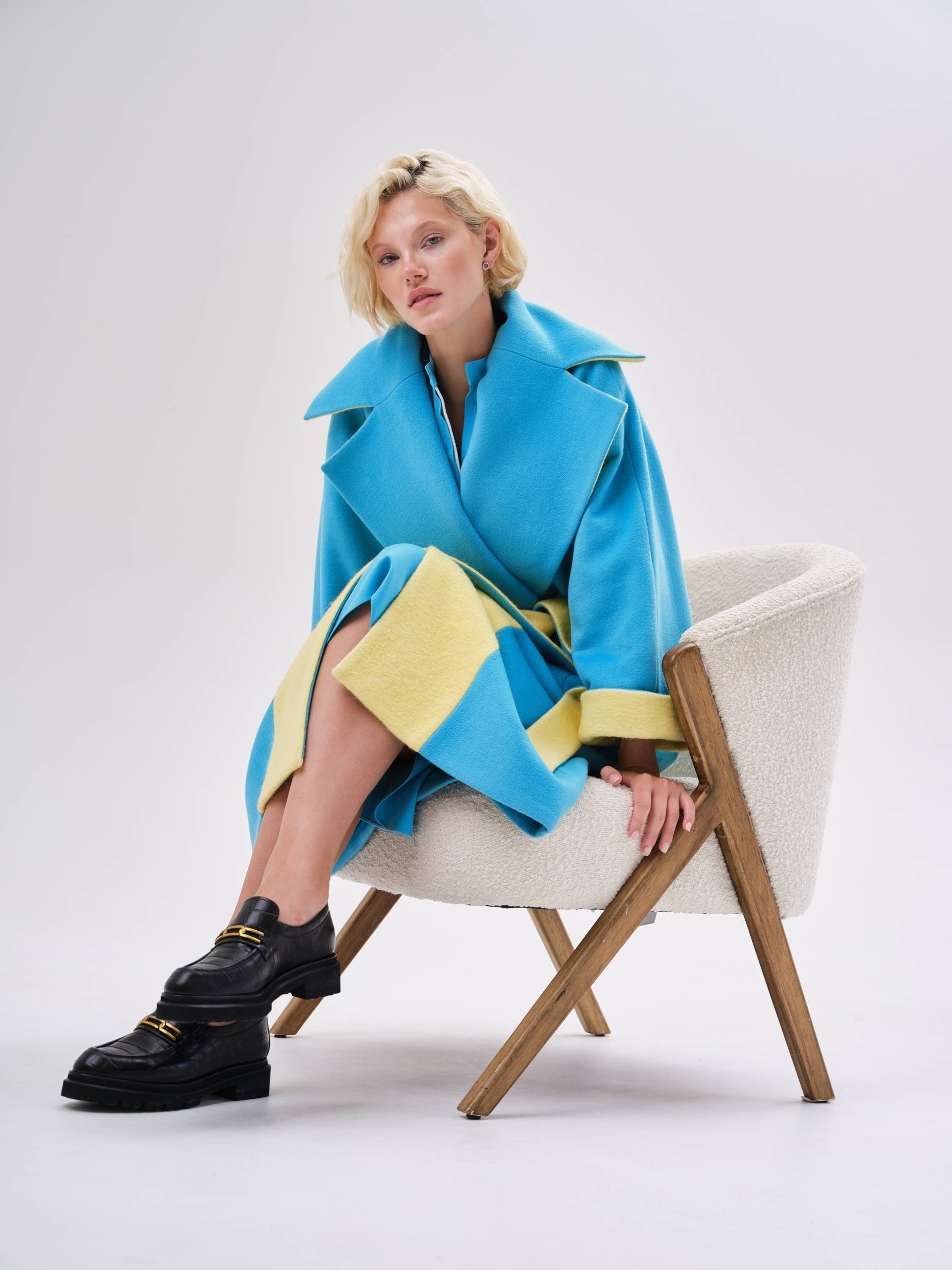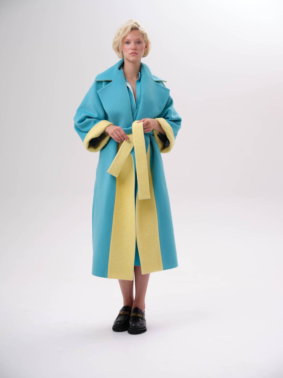 яркое пальто оверсайз со вставками