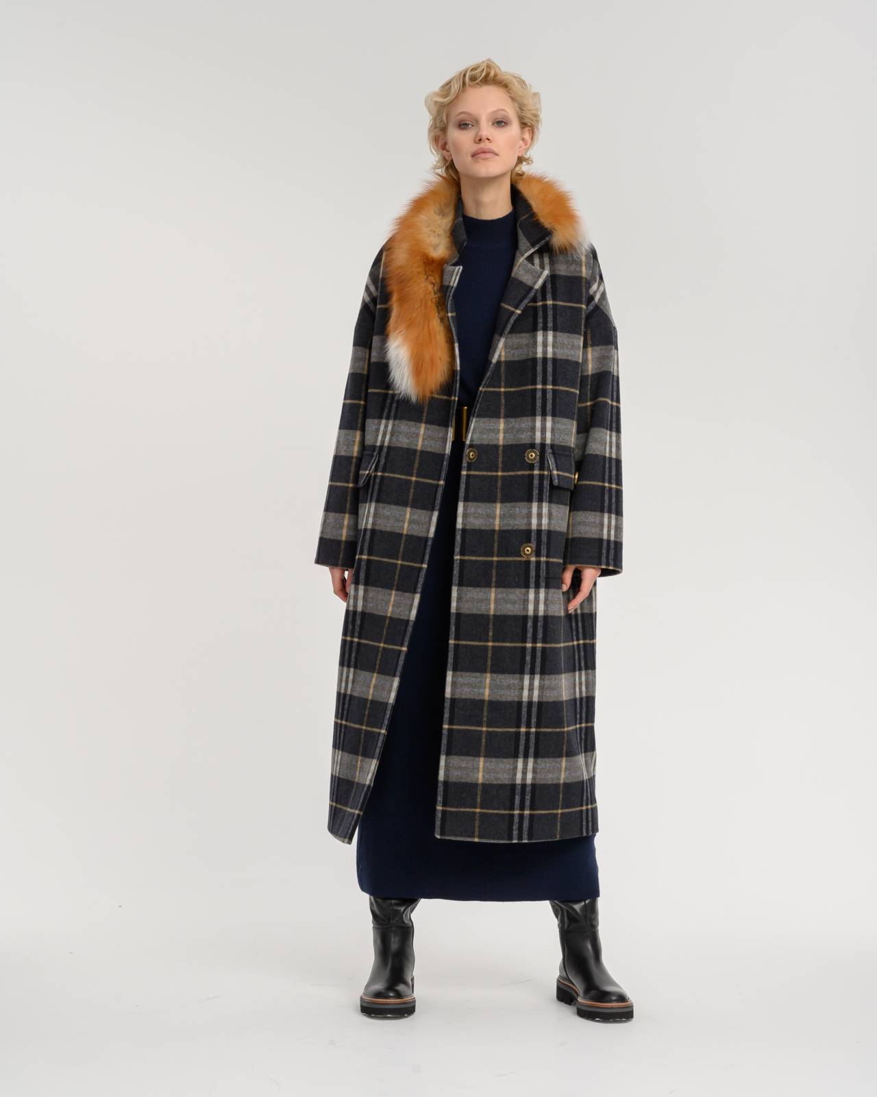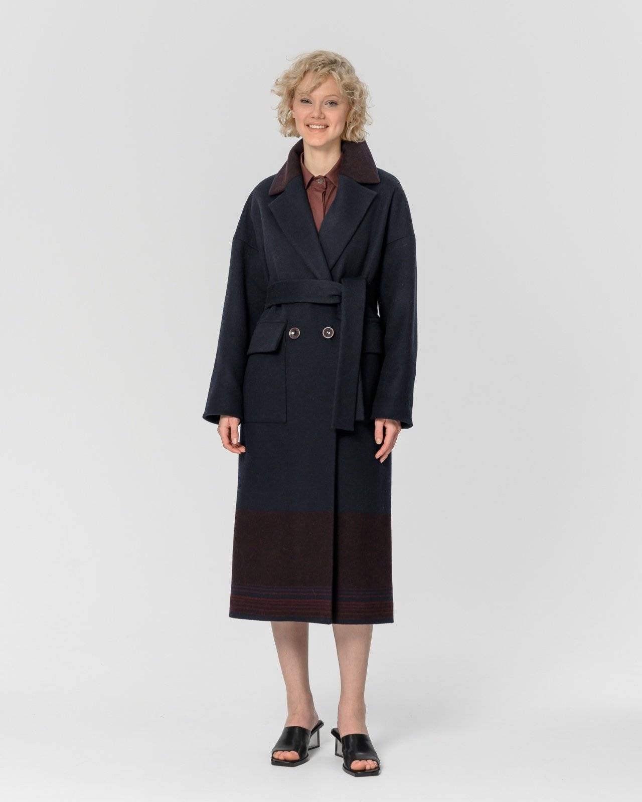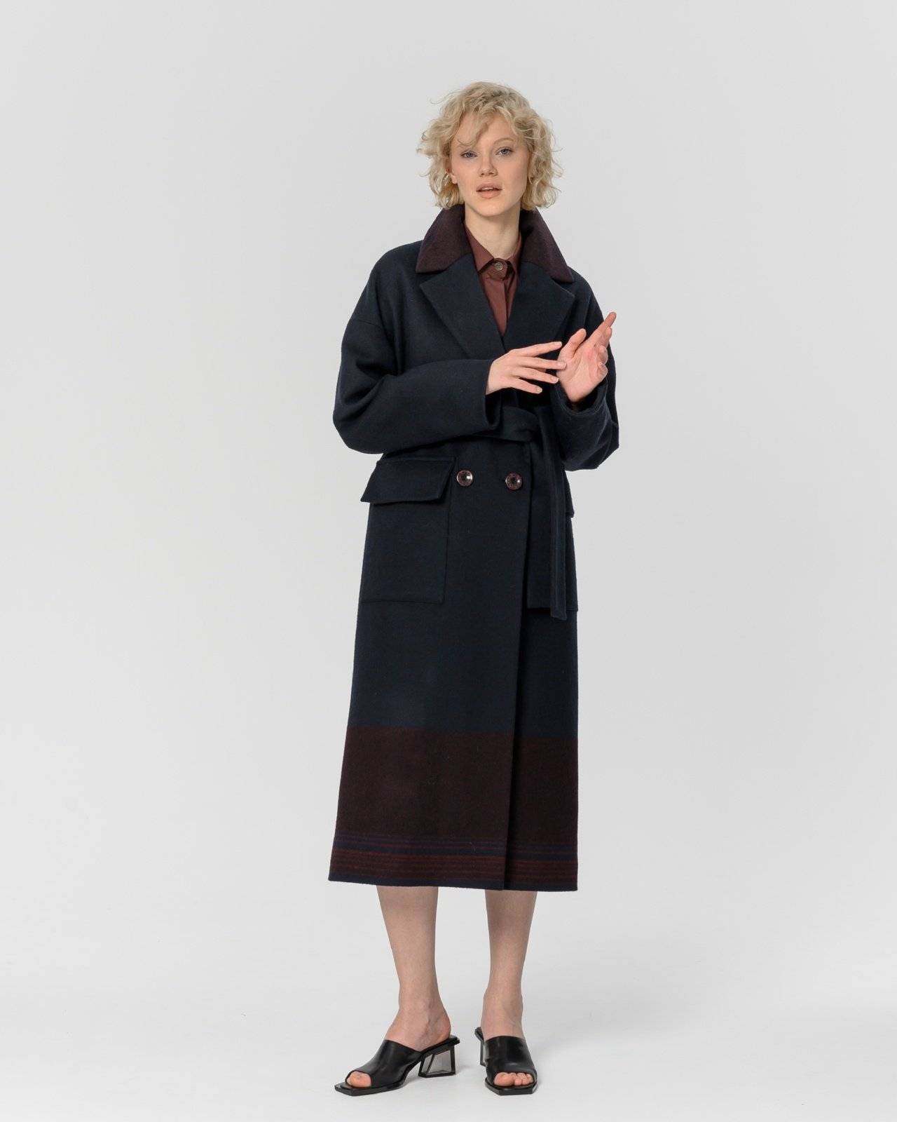двубортное пальто из натуральной шерсти