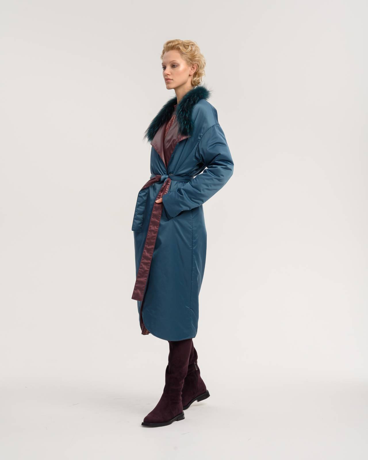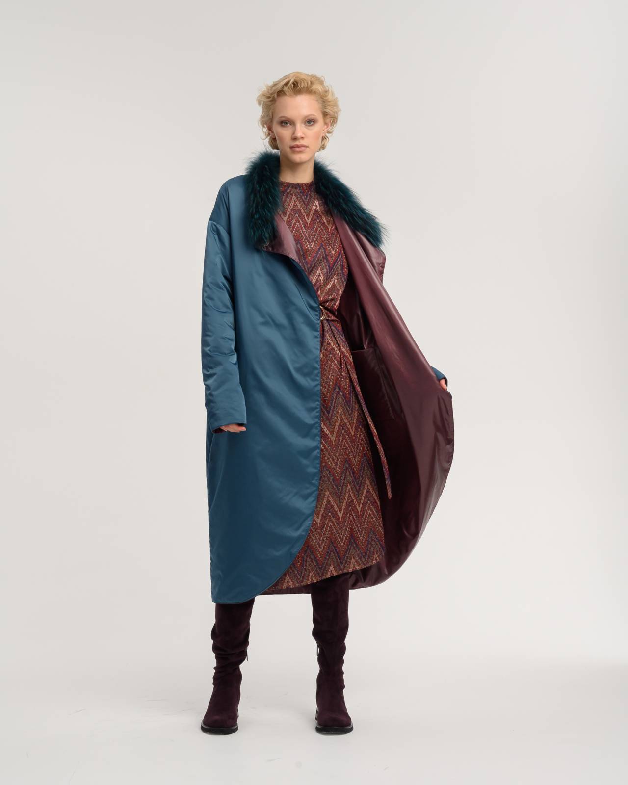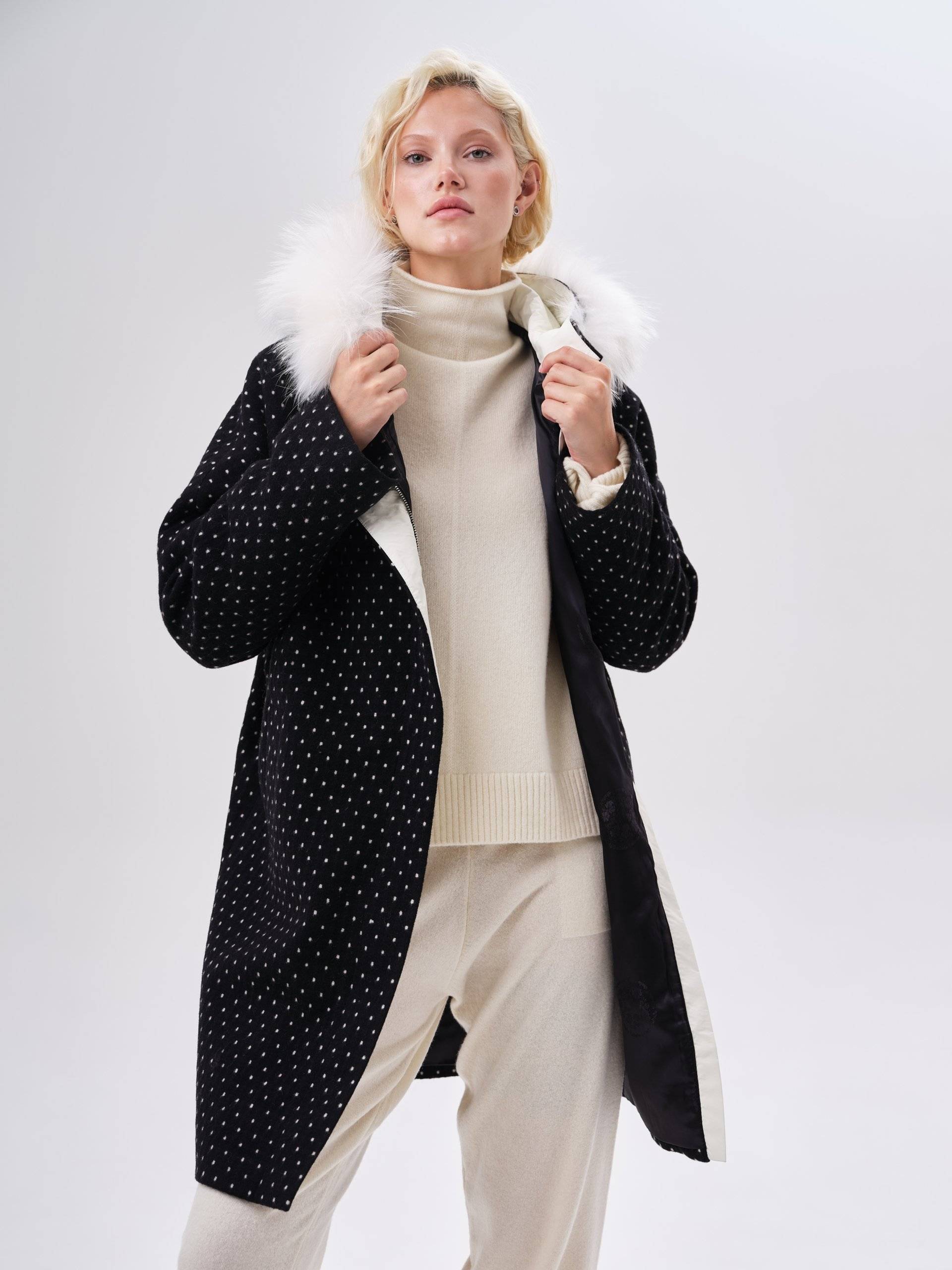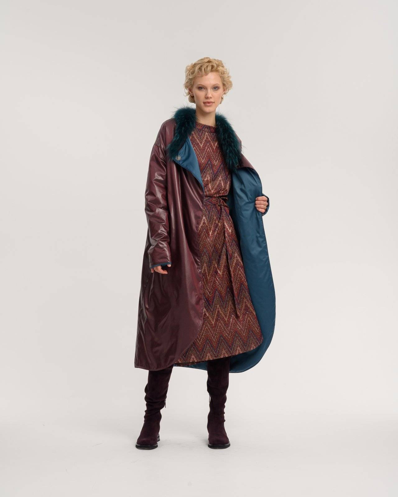 двустороннее пальто с меховым воротником