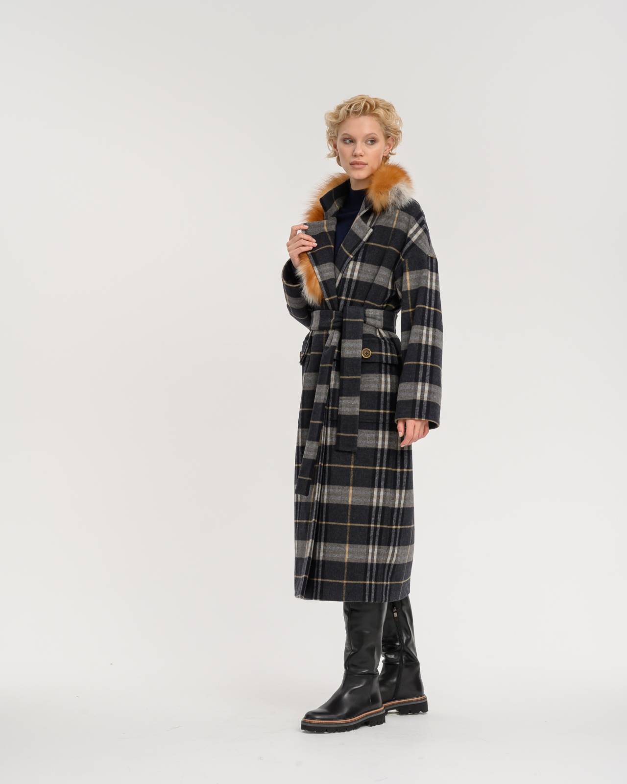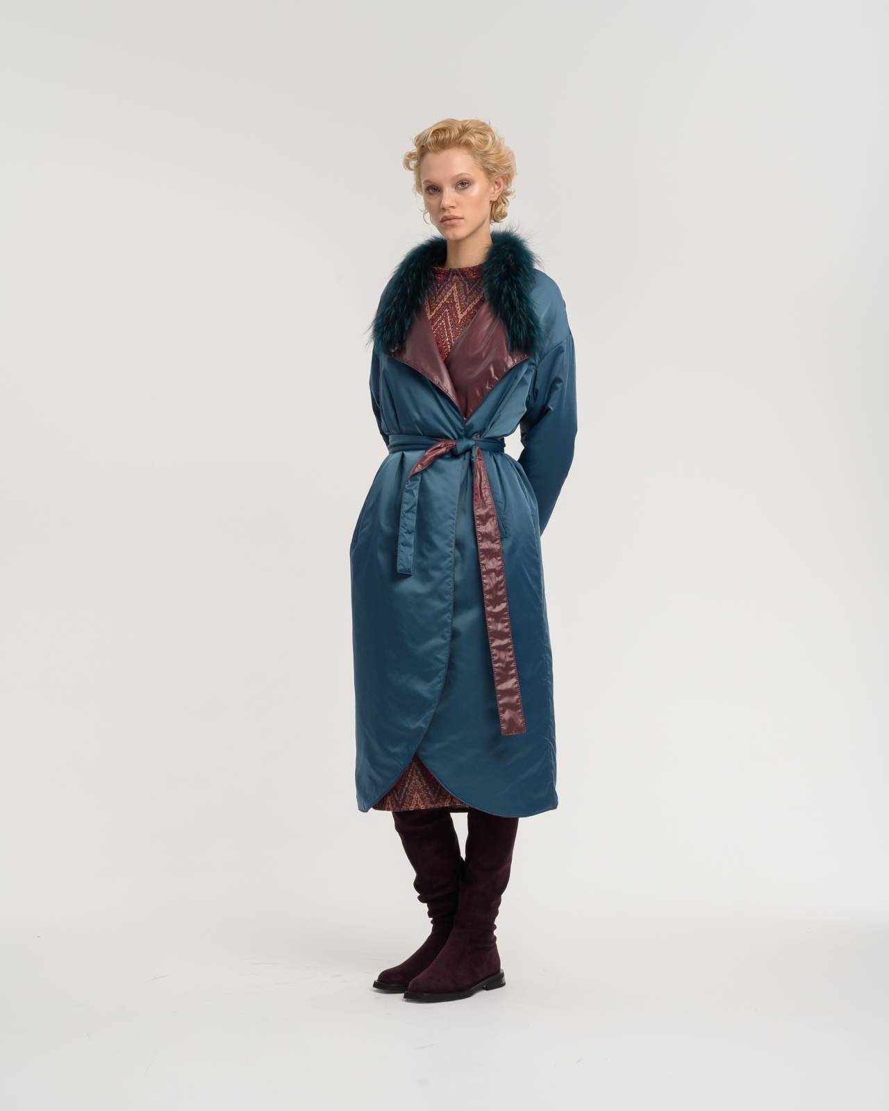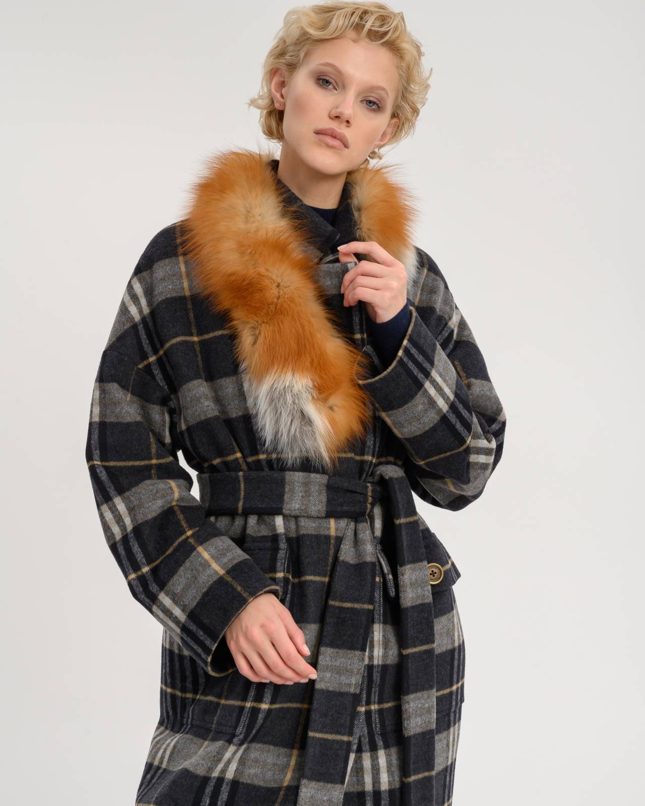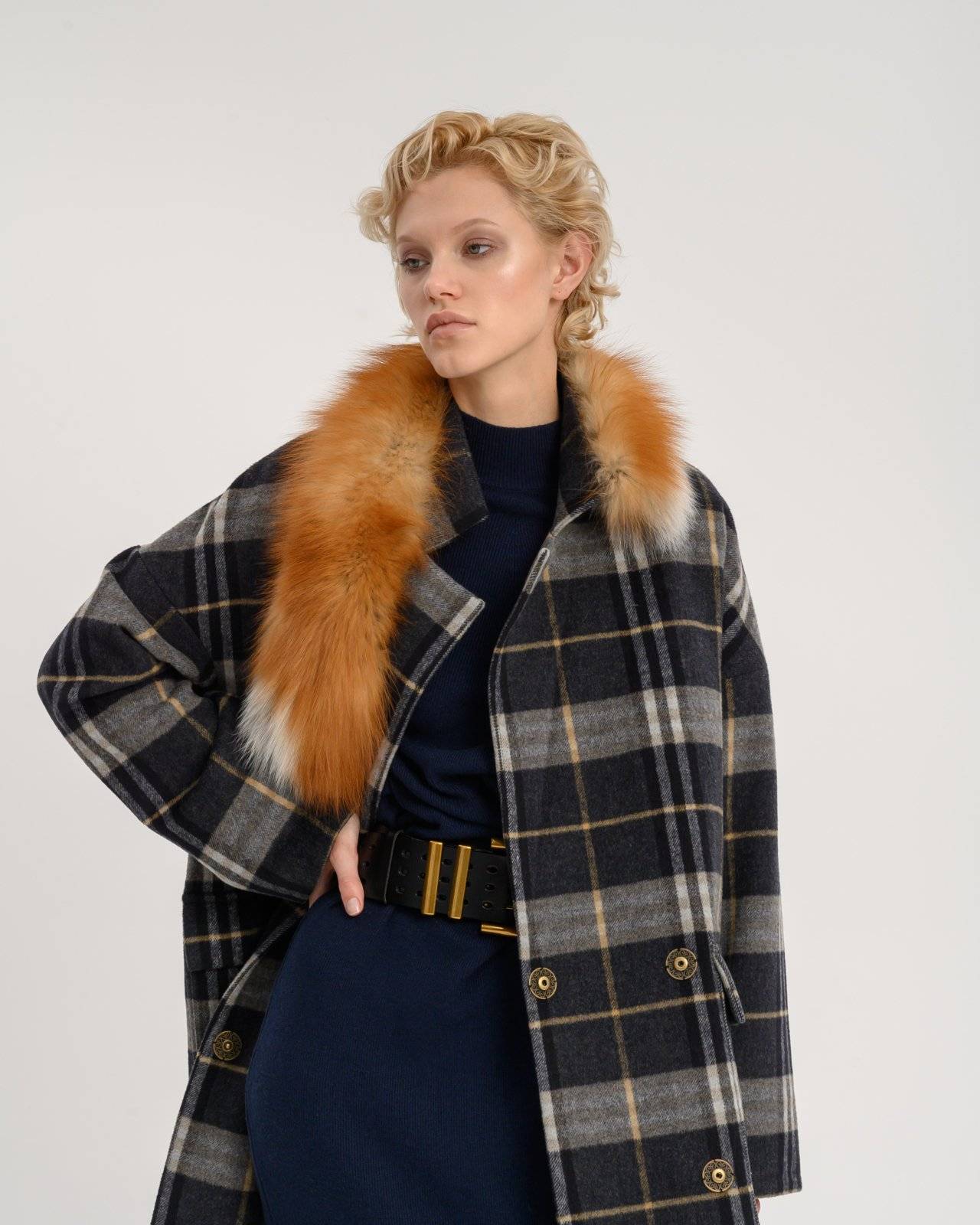 двустороннее пальто с меховым воротником