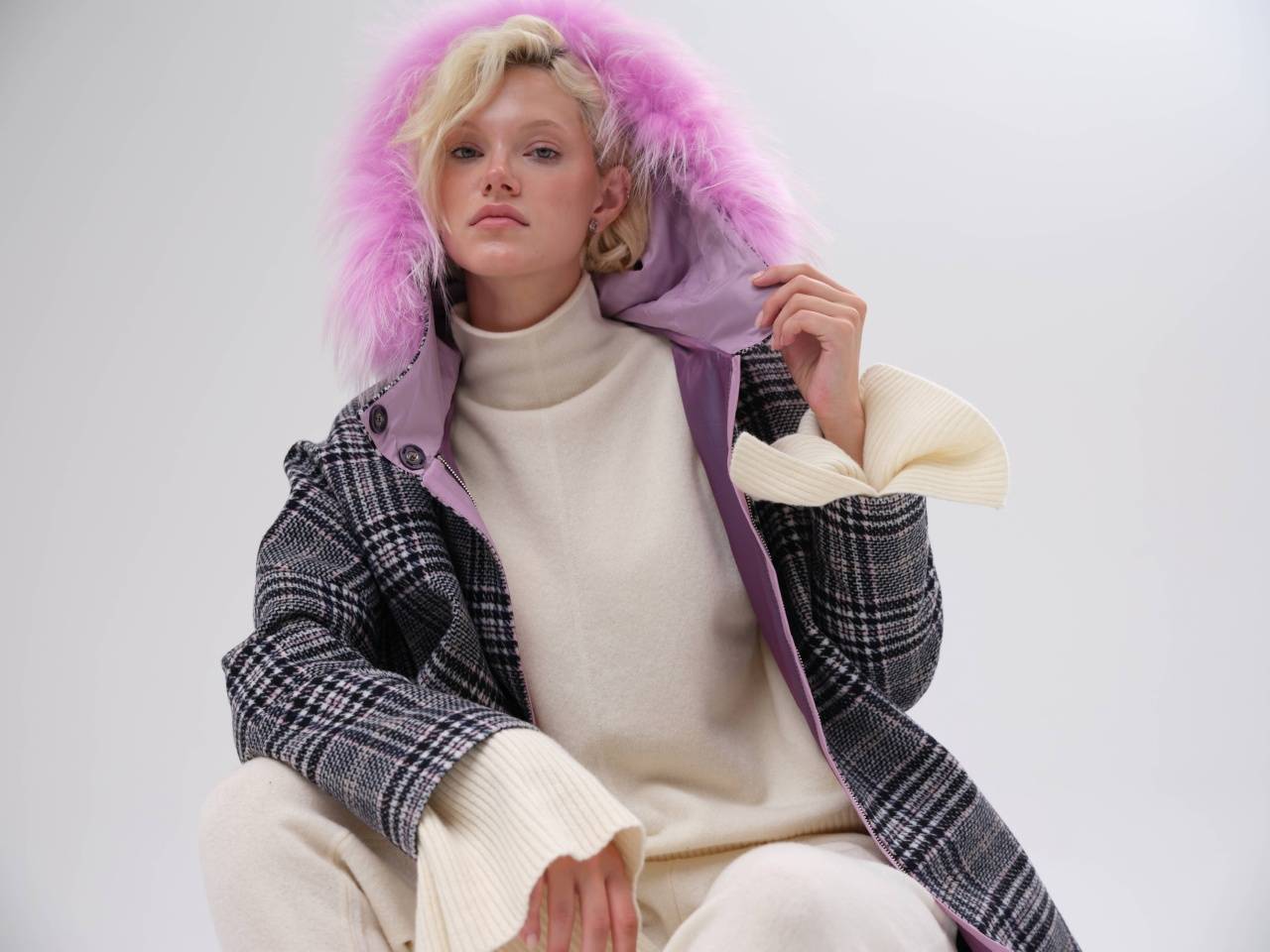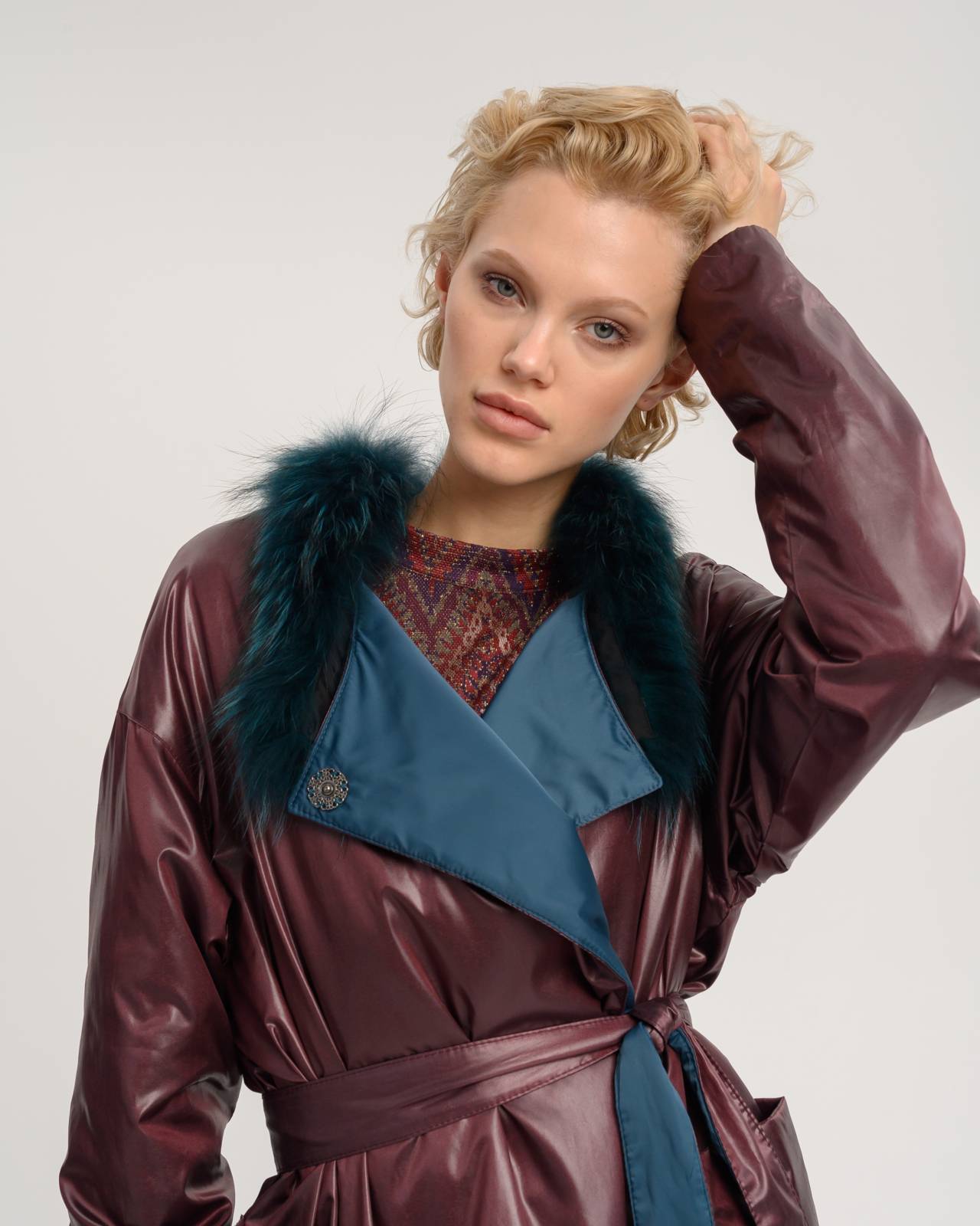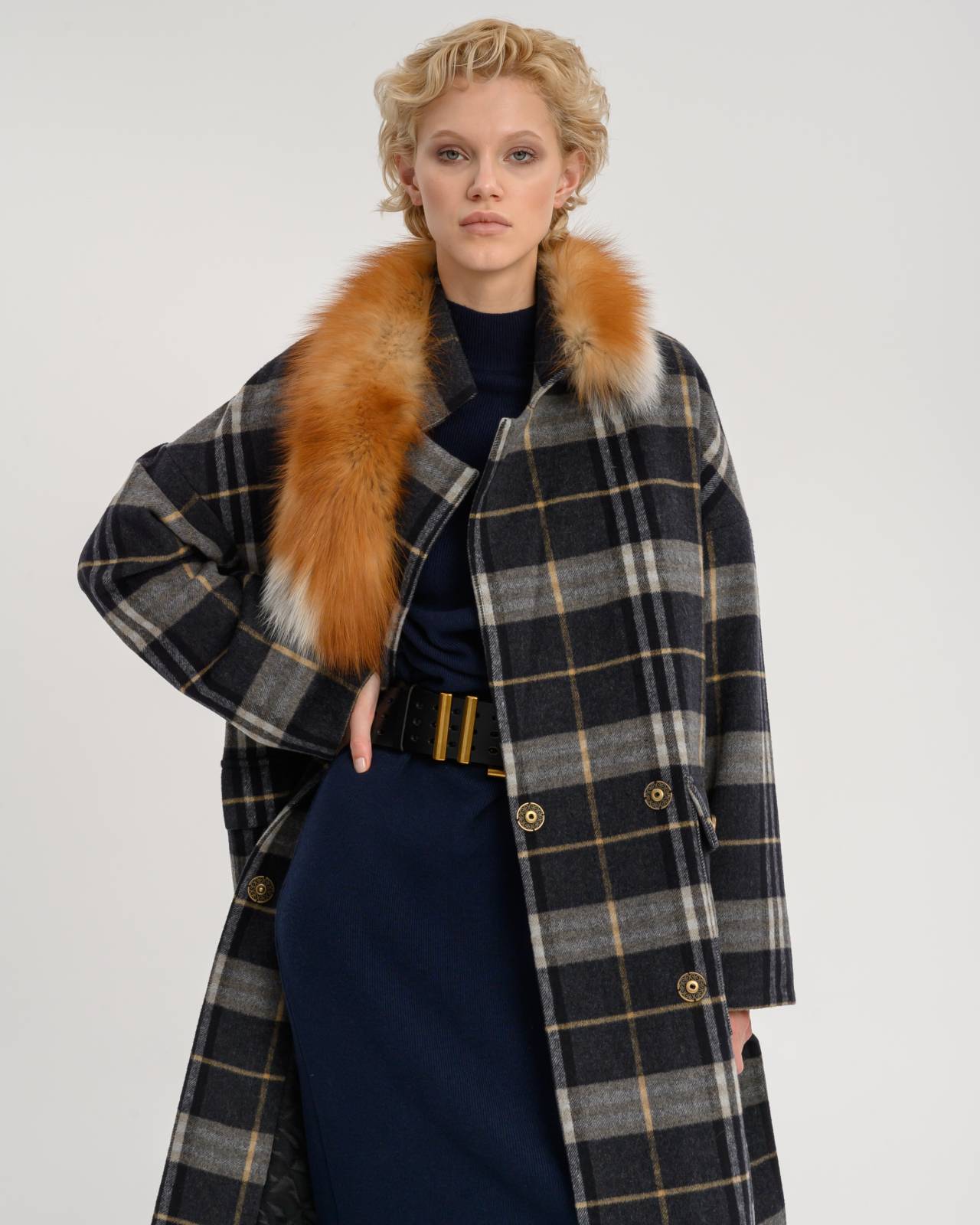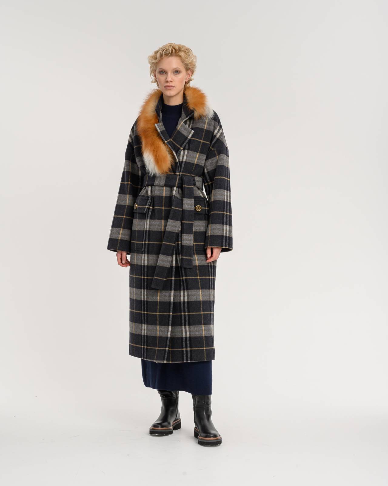 двустороннее пальто с меховым воротником