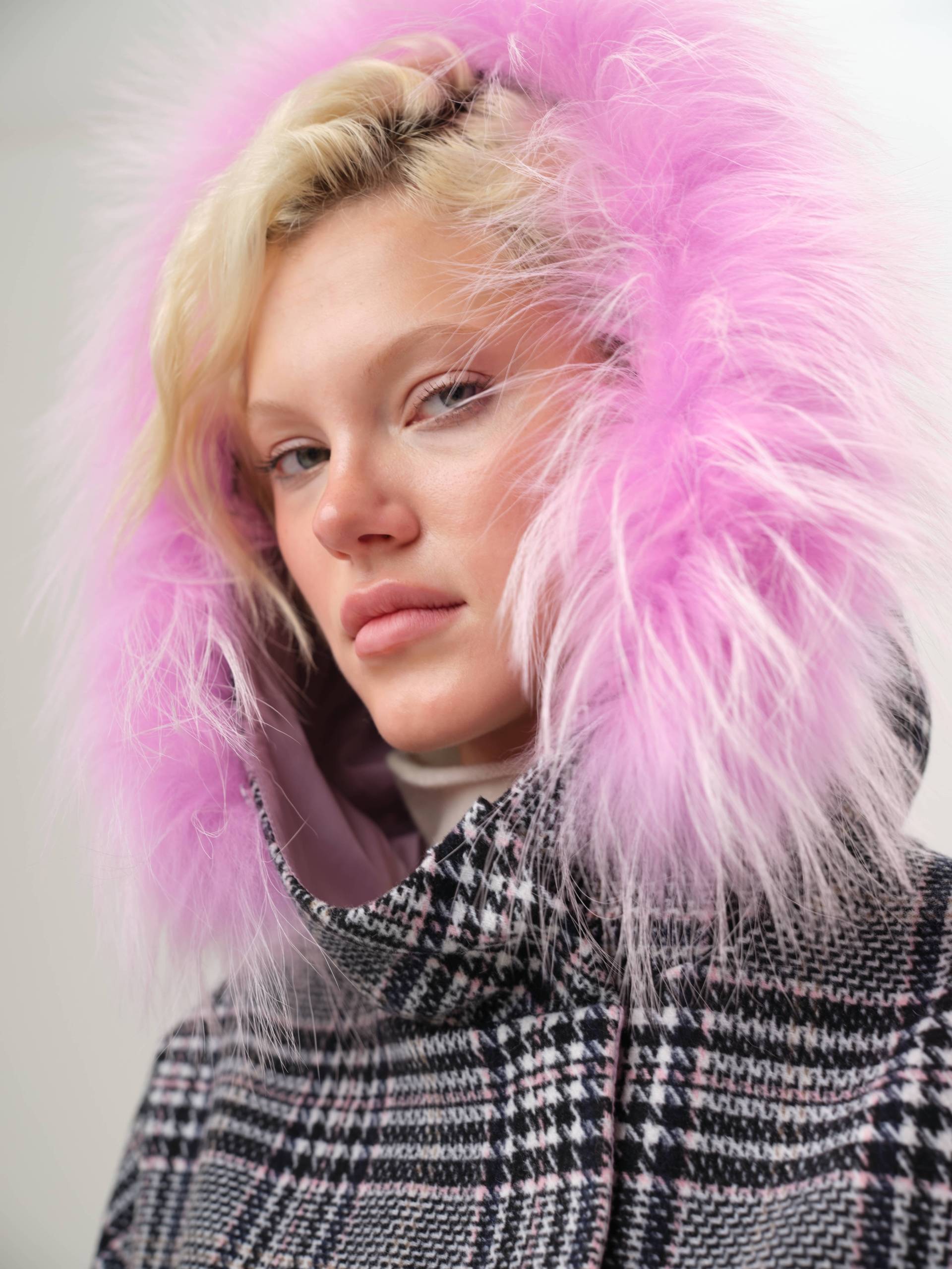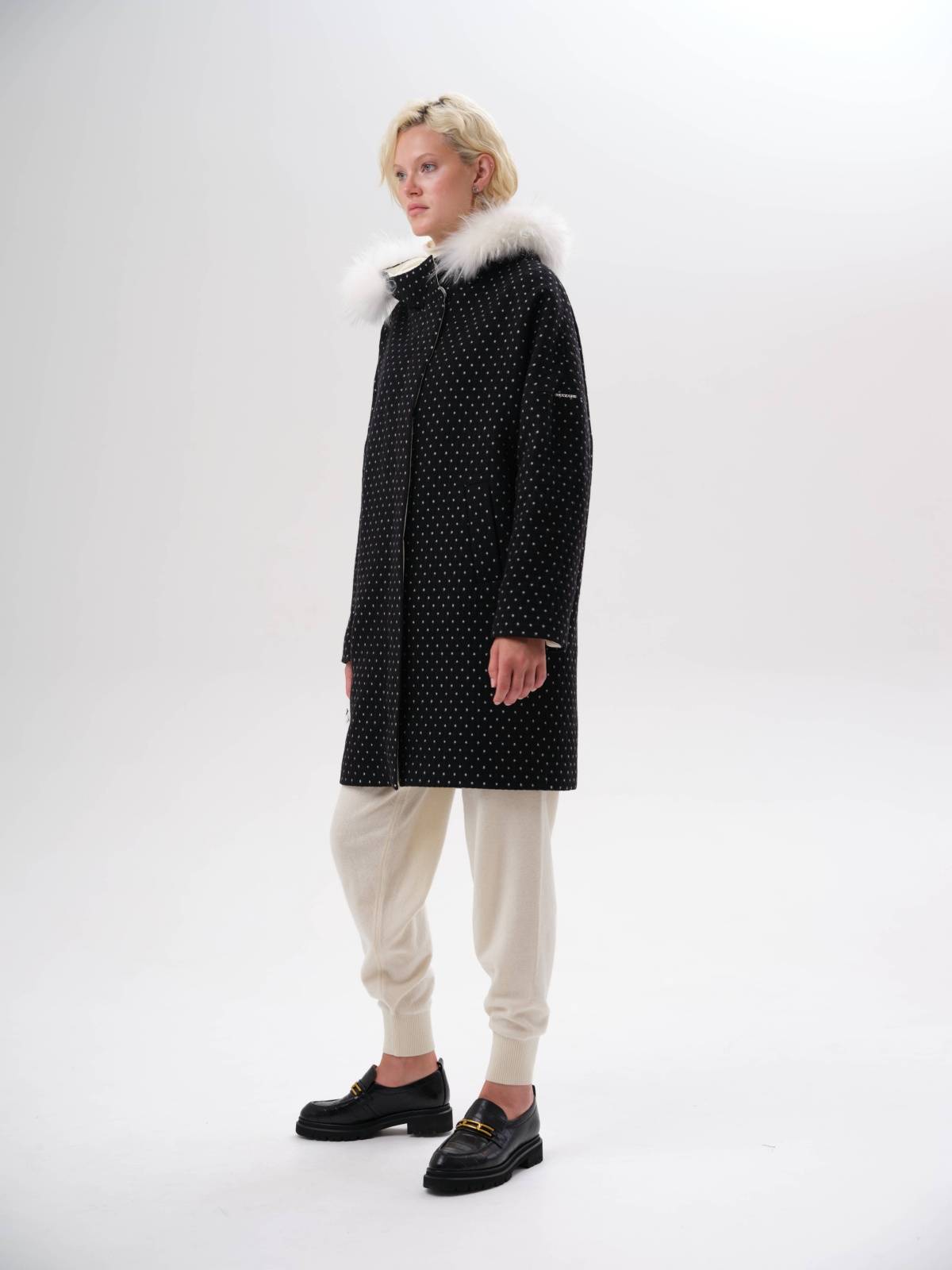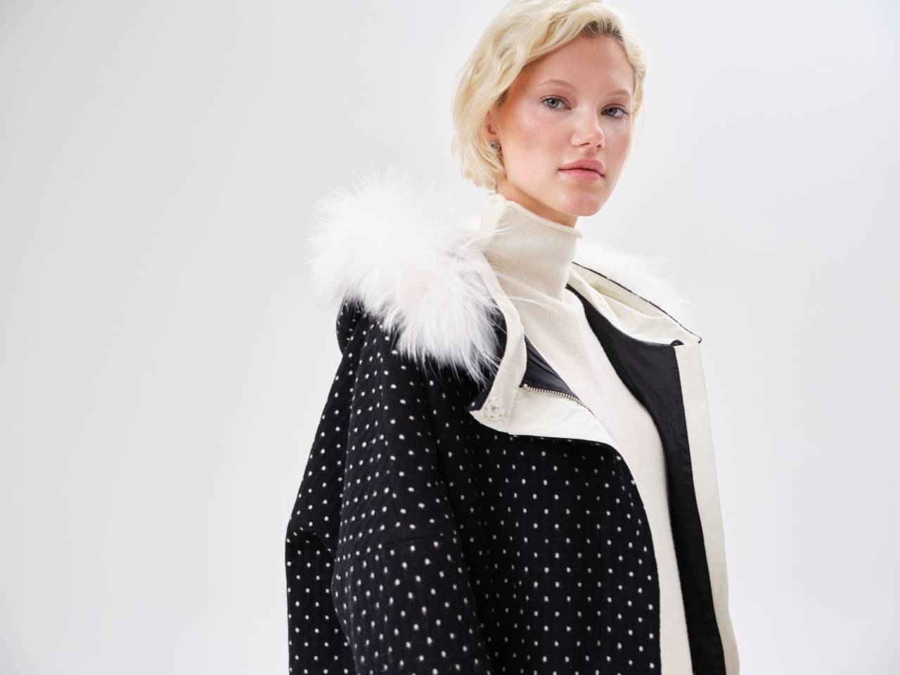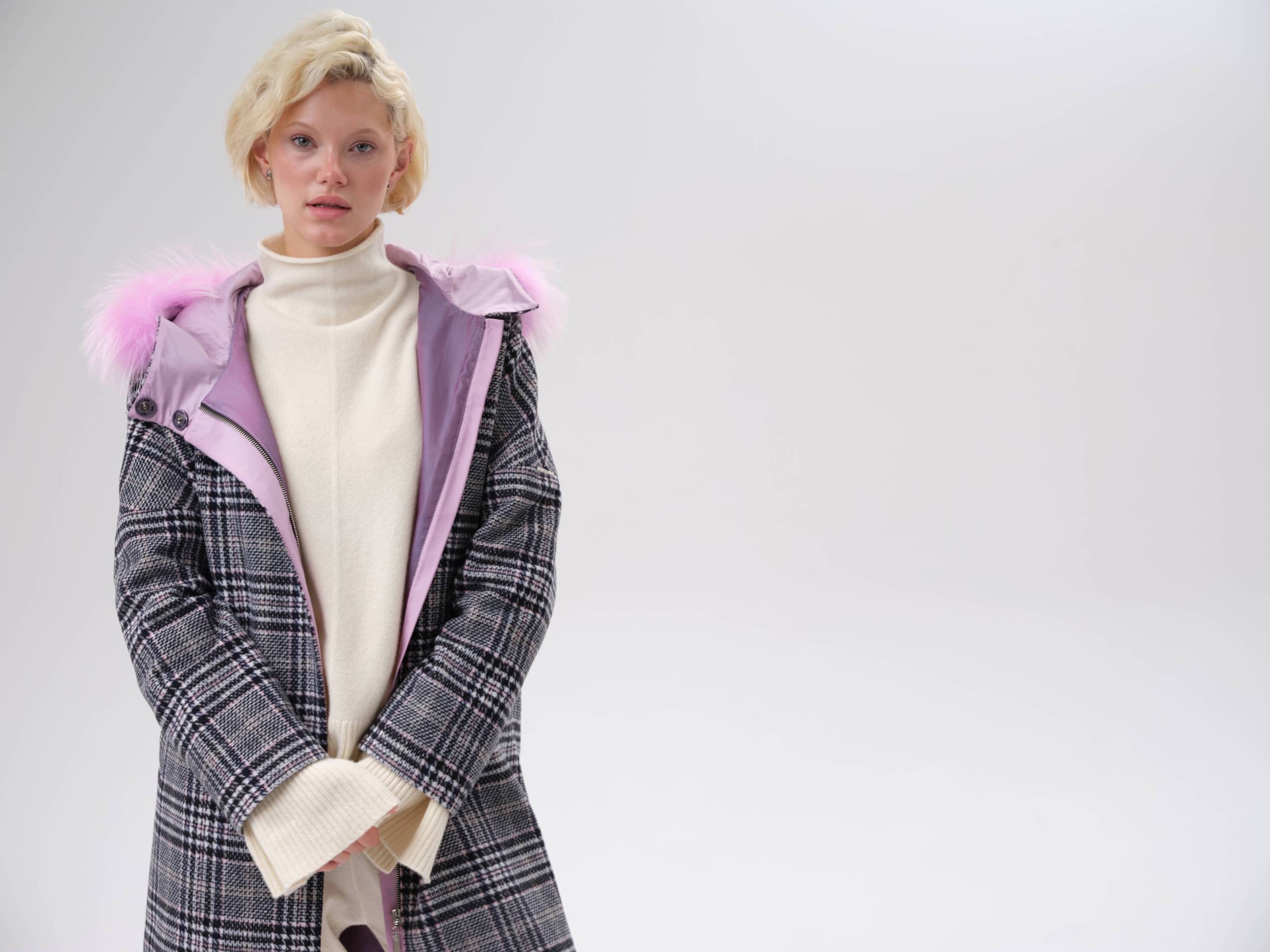 двустороннее пальто с меховым воротником