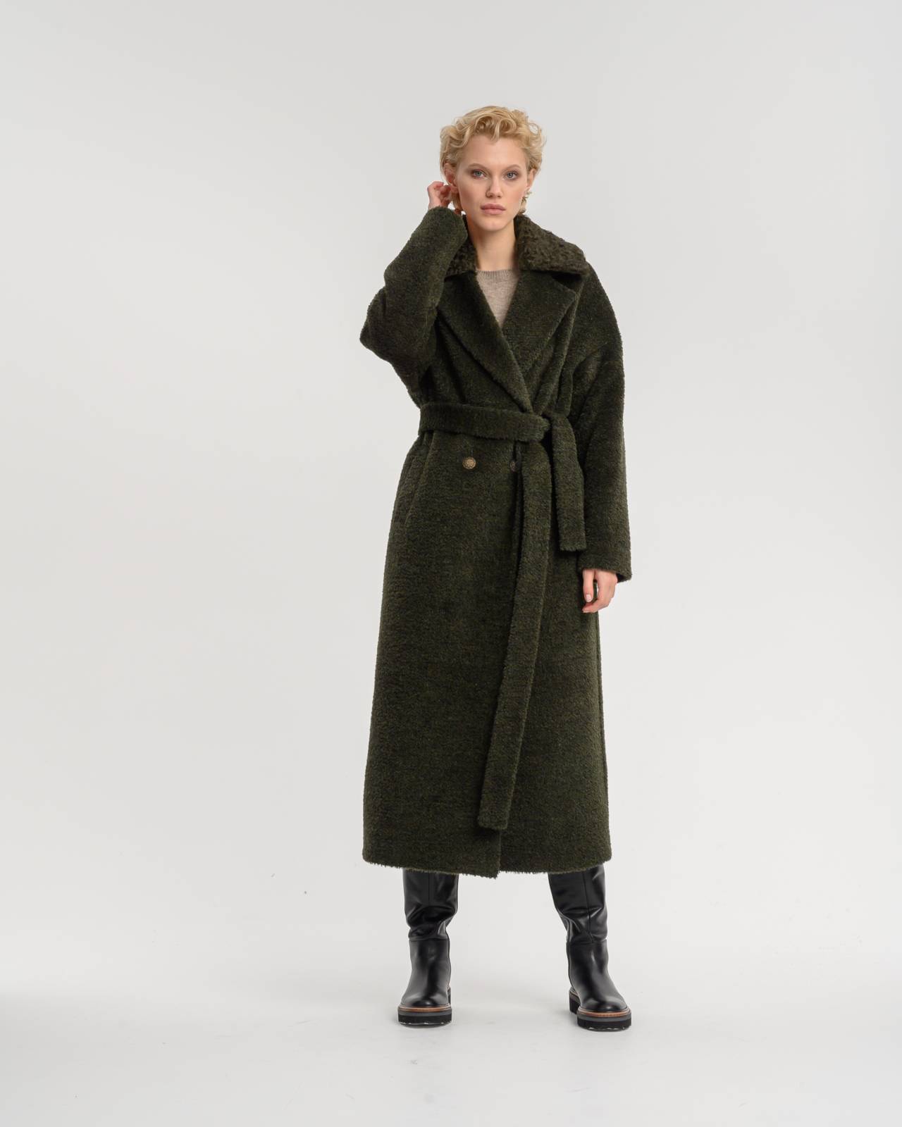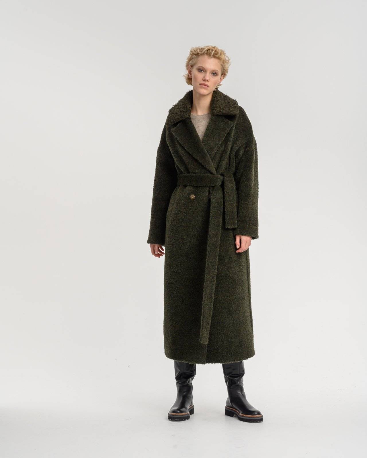 пальто макси из стопроцентной шерсти ягненка