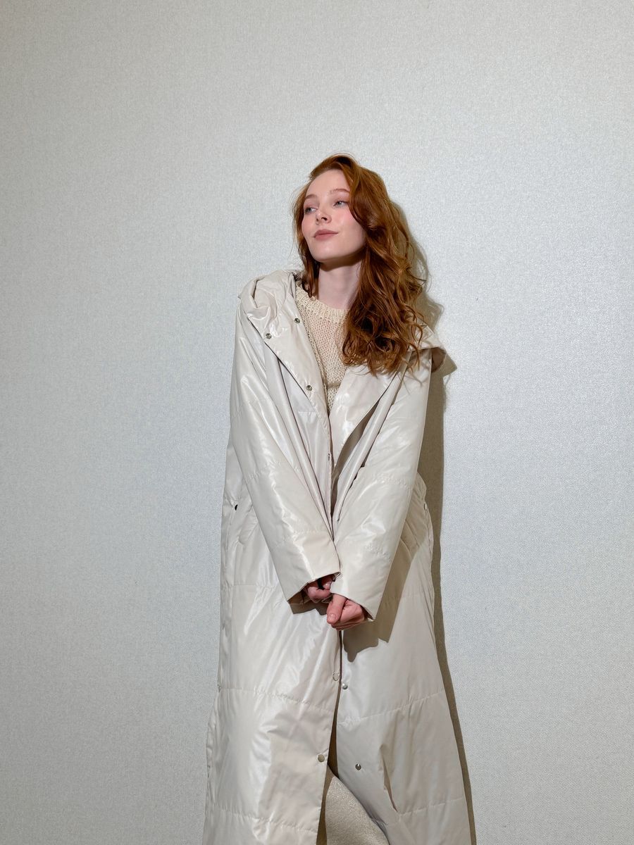 стеганое пальто макси с капюшоном