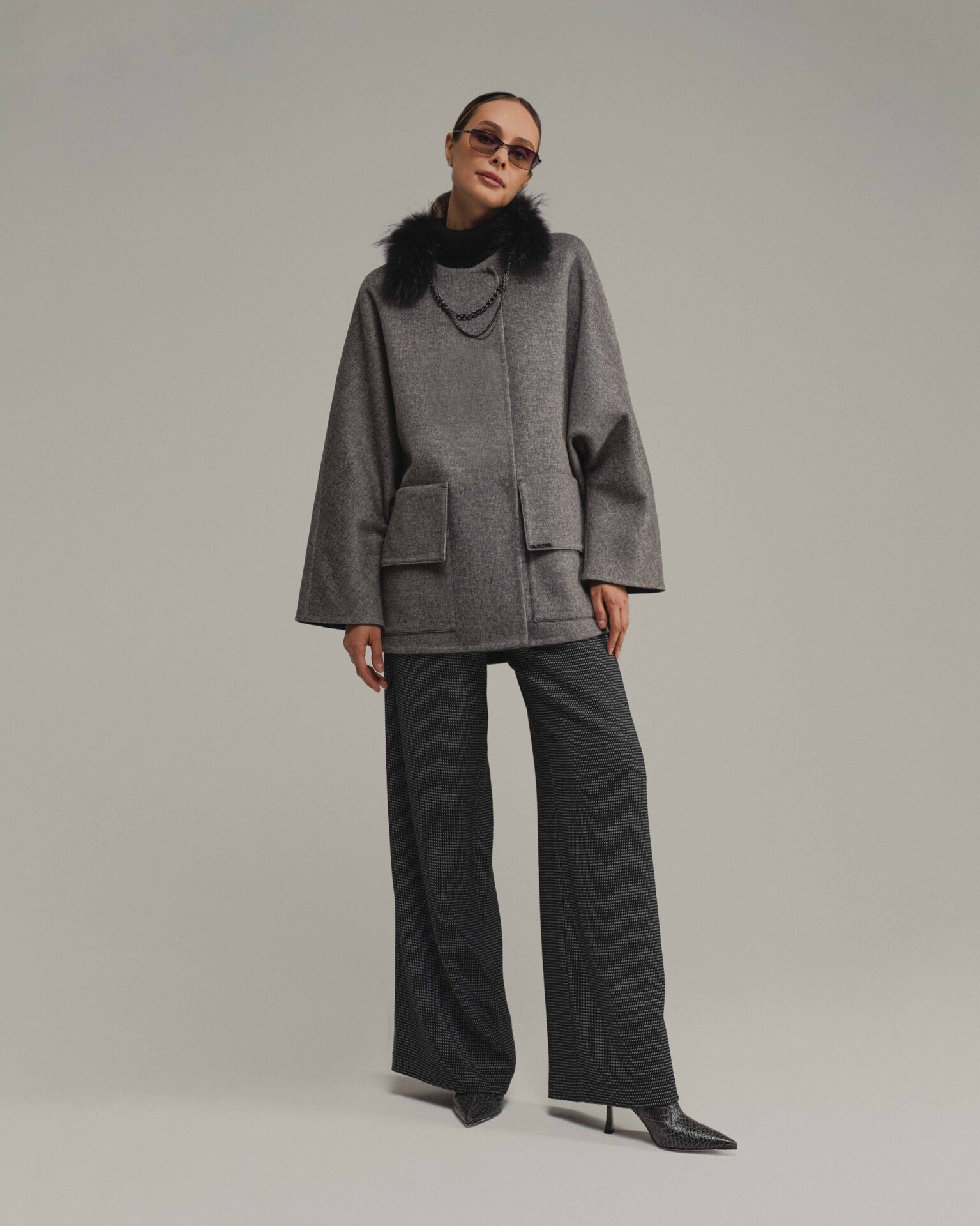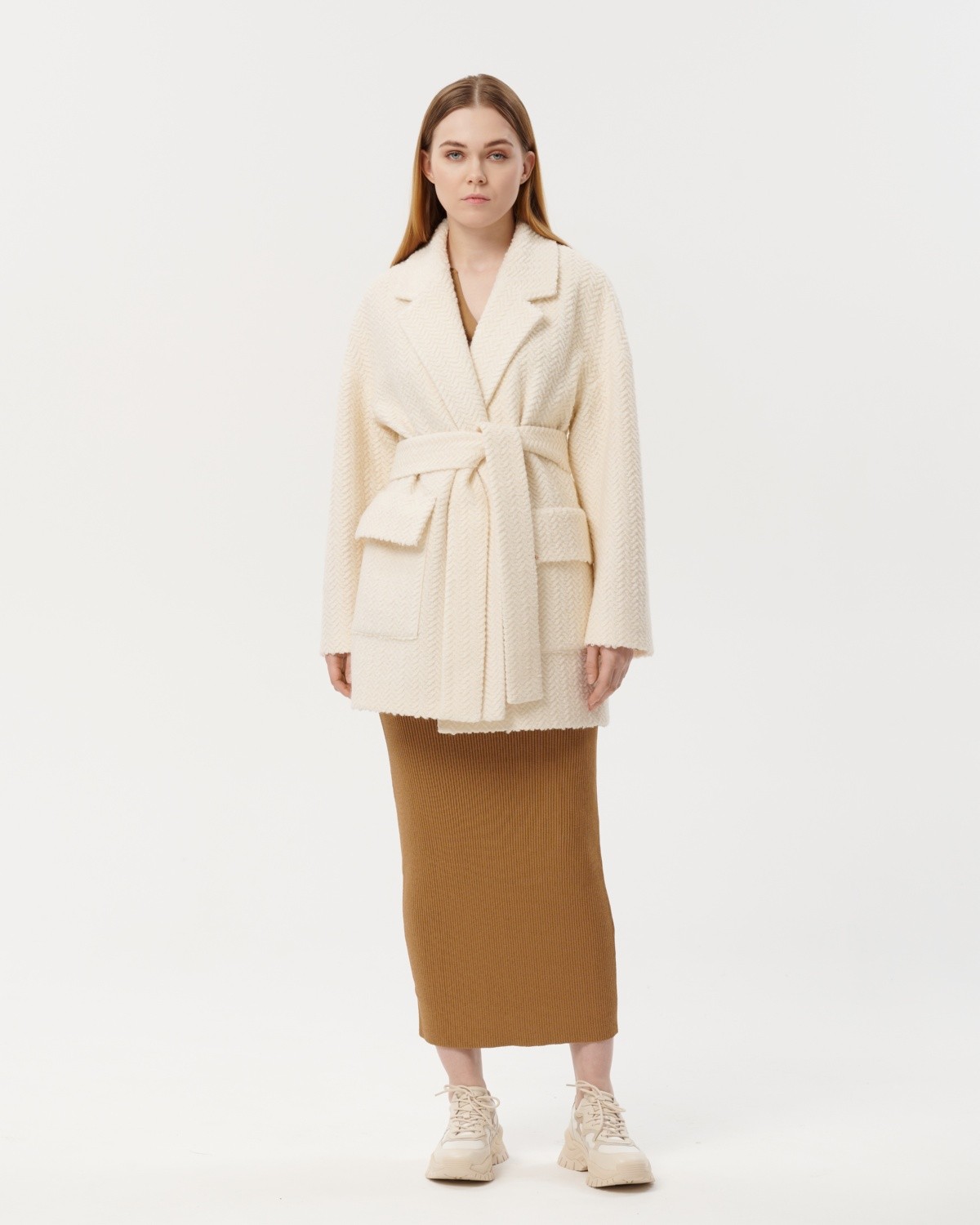 полупальто из фактурной шерсти