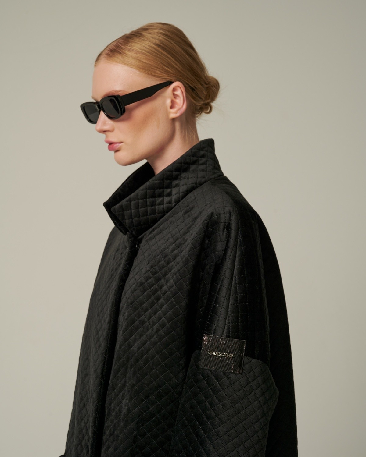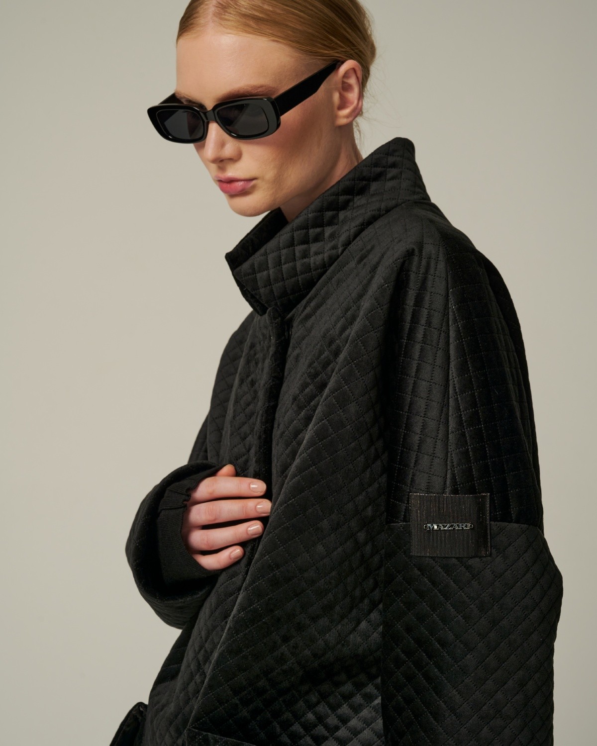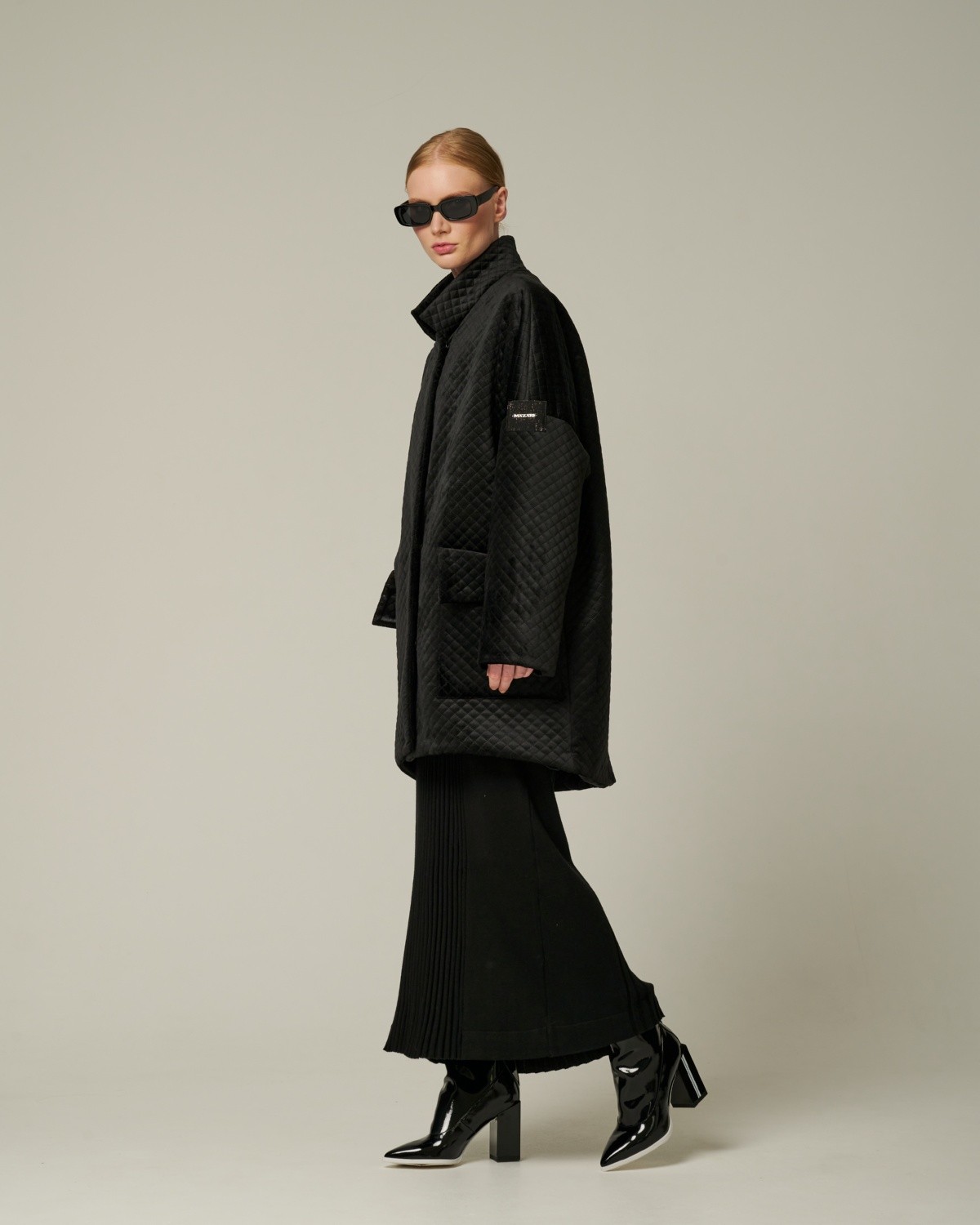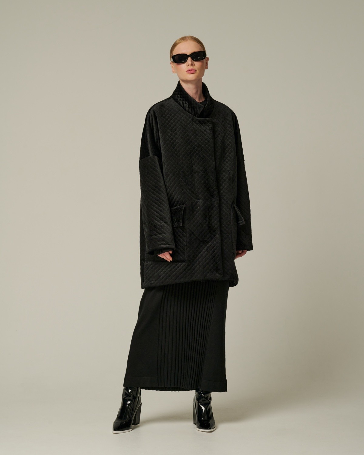 стеганое бархатное пальто